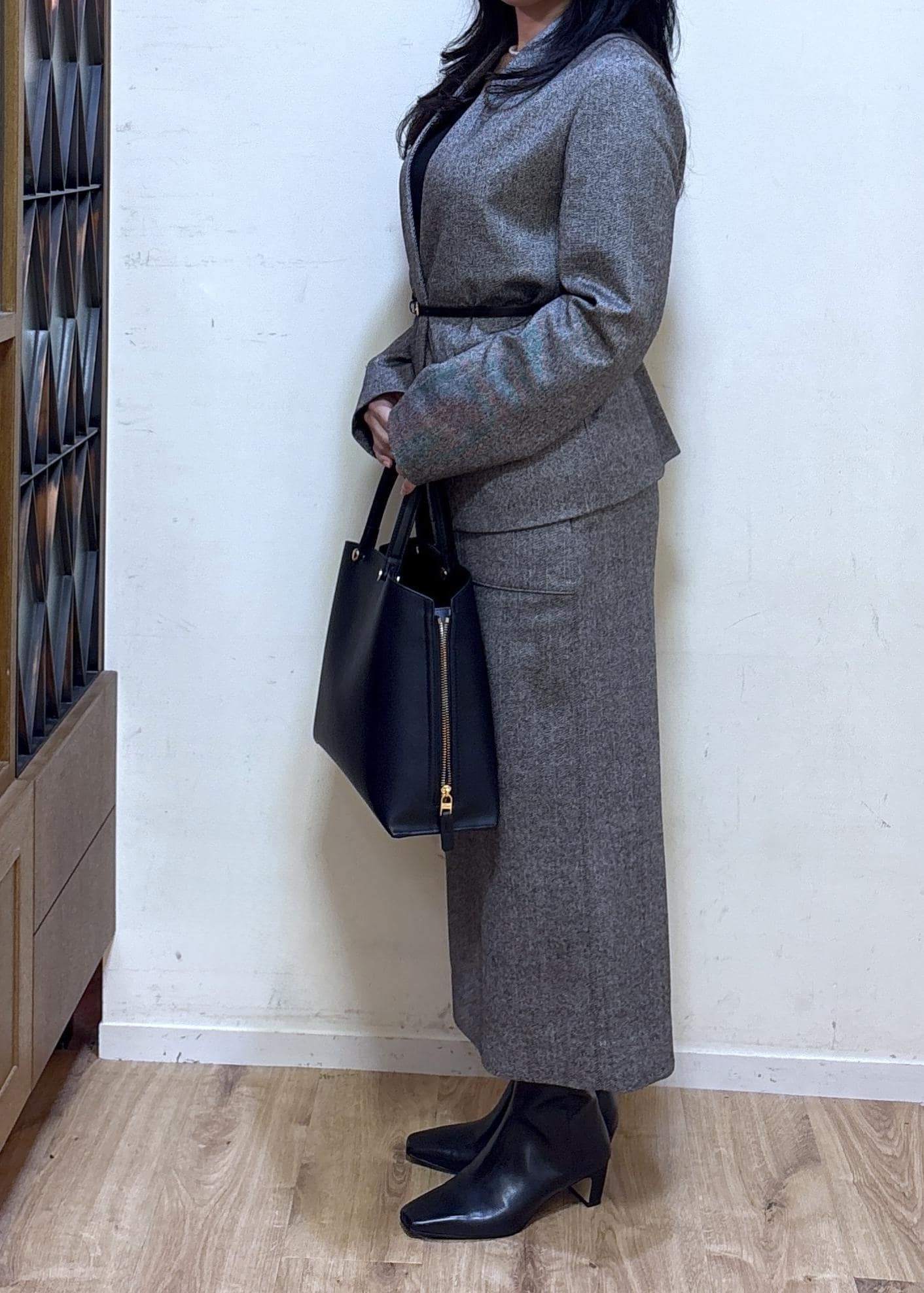 [美人スカート]ウールレーヨンポケット付きタイトスカート(ヘリンボーン/グレンチェック)/セットアップ対応