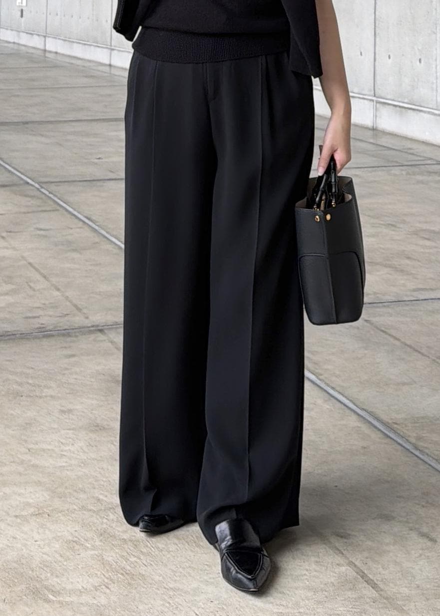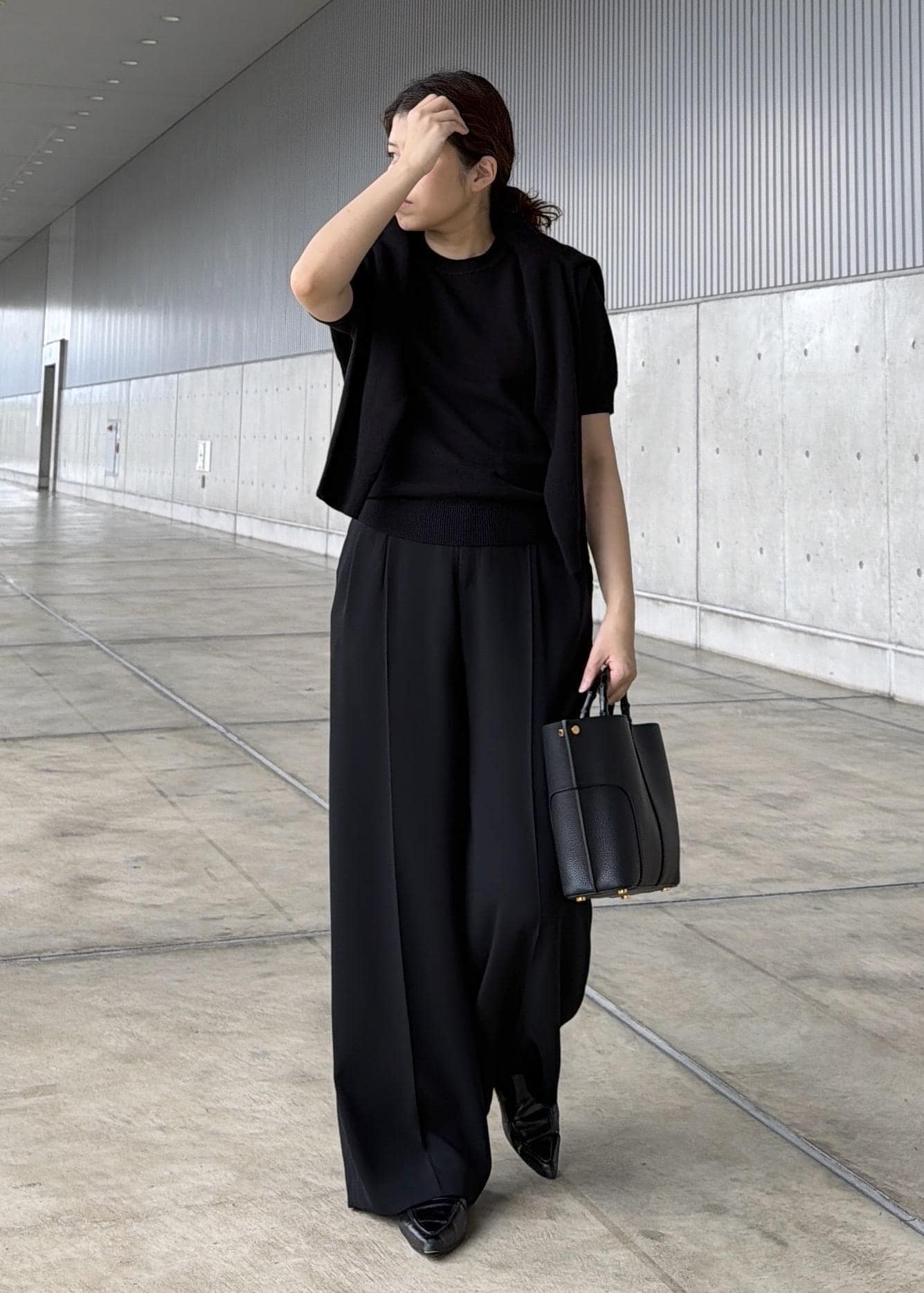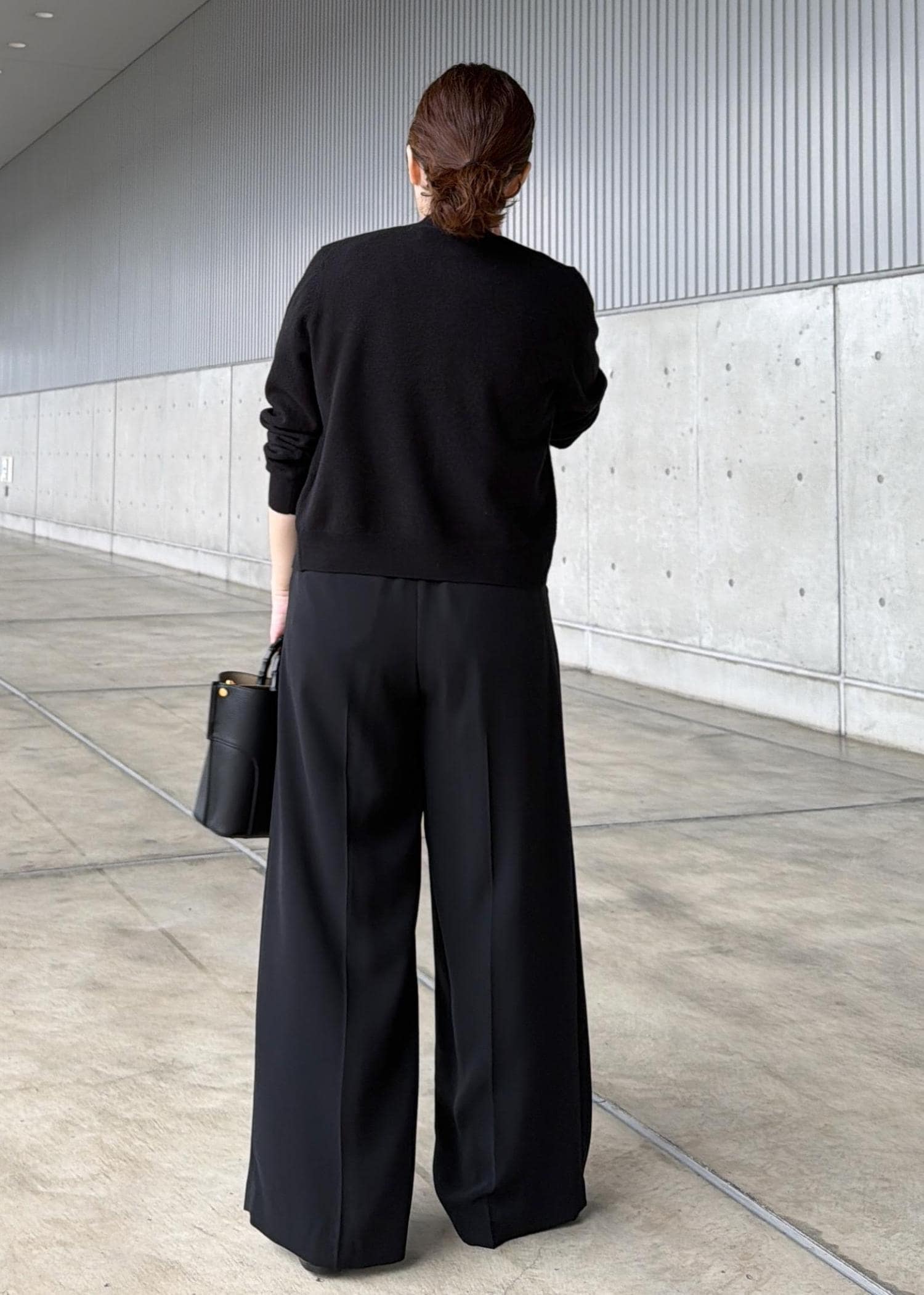 ROPÉ【洗える・カセット服・新色追加】バックサテンイージーワイドパンツ/お仕事・通勤・セットアップ対応ブラック / 38¥27,500レビュー身長161㎝で普段38サイズを着用。