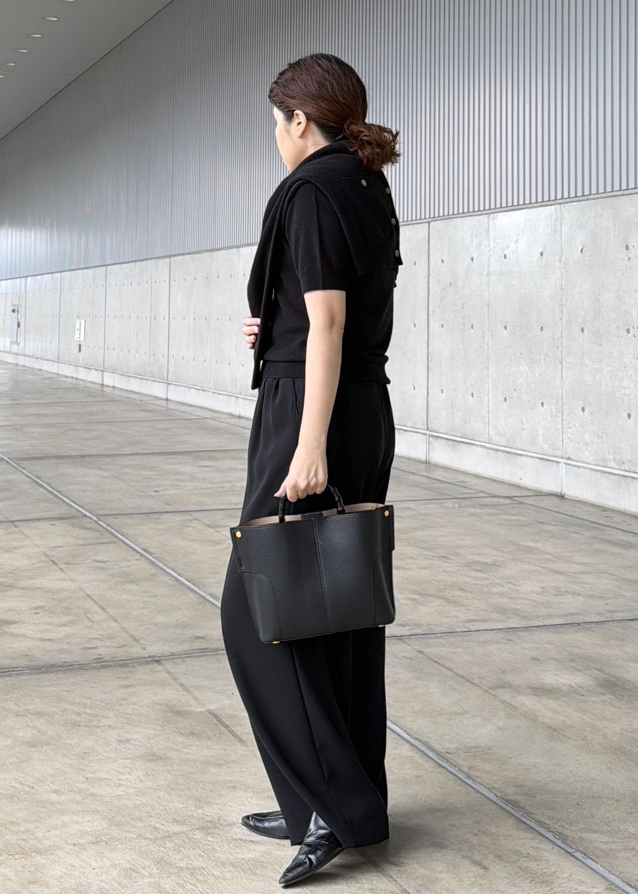 コンパクトですが長財布やポーチはしっかり入る程よい大きさで普段使いはもちろん、お仕事でも使えるきちんと感もある万能バッグです。