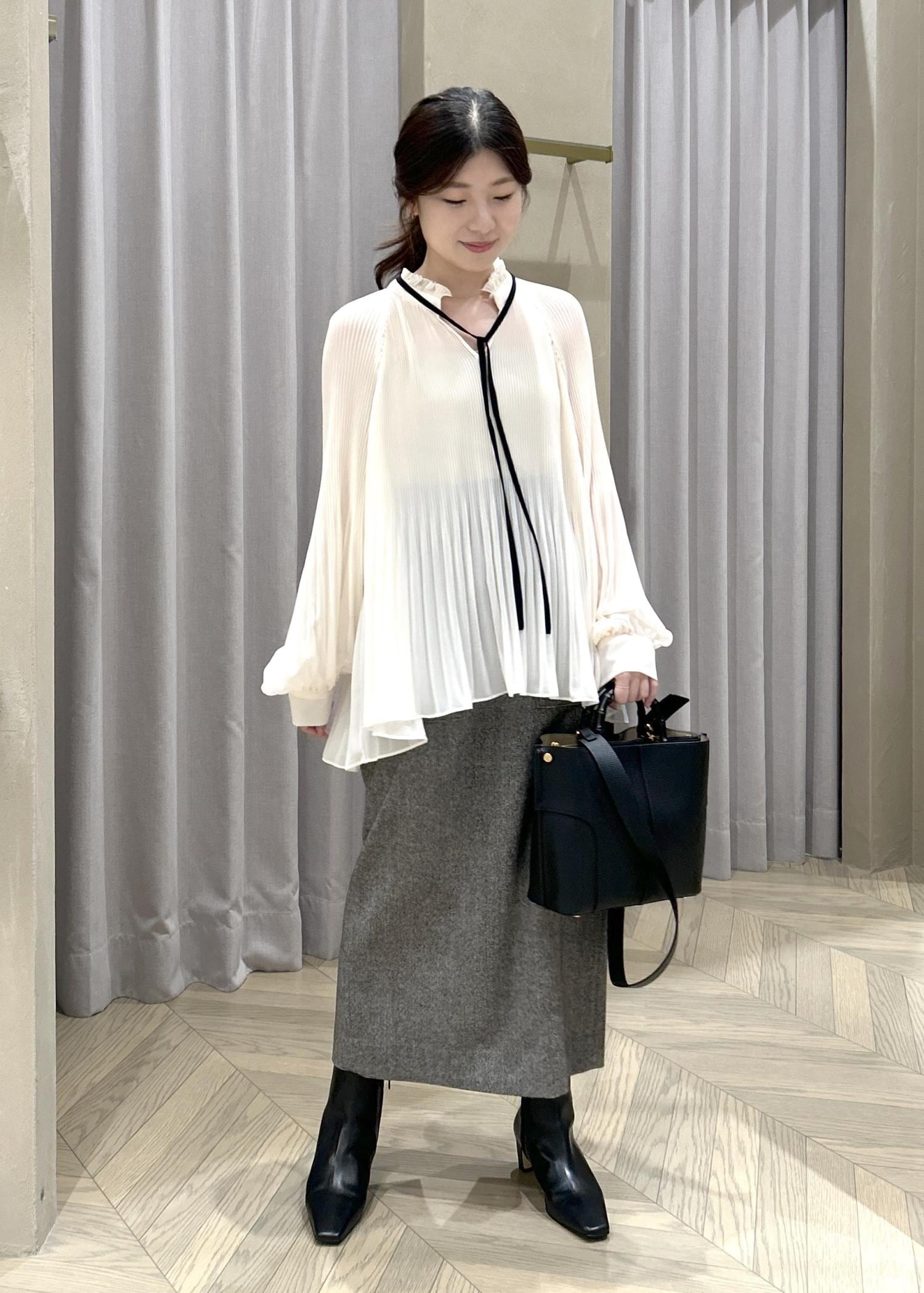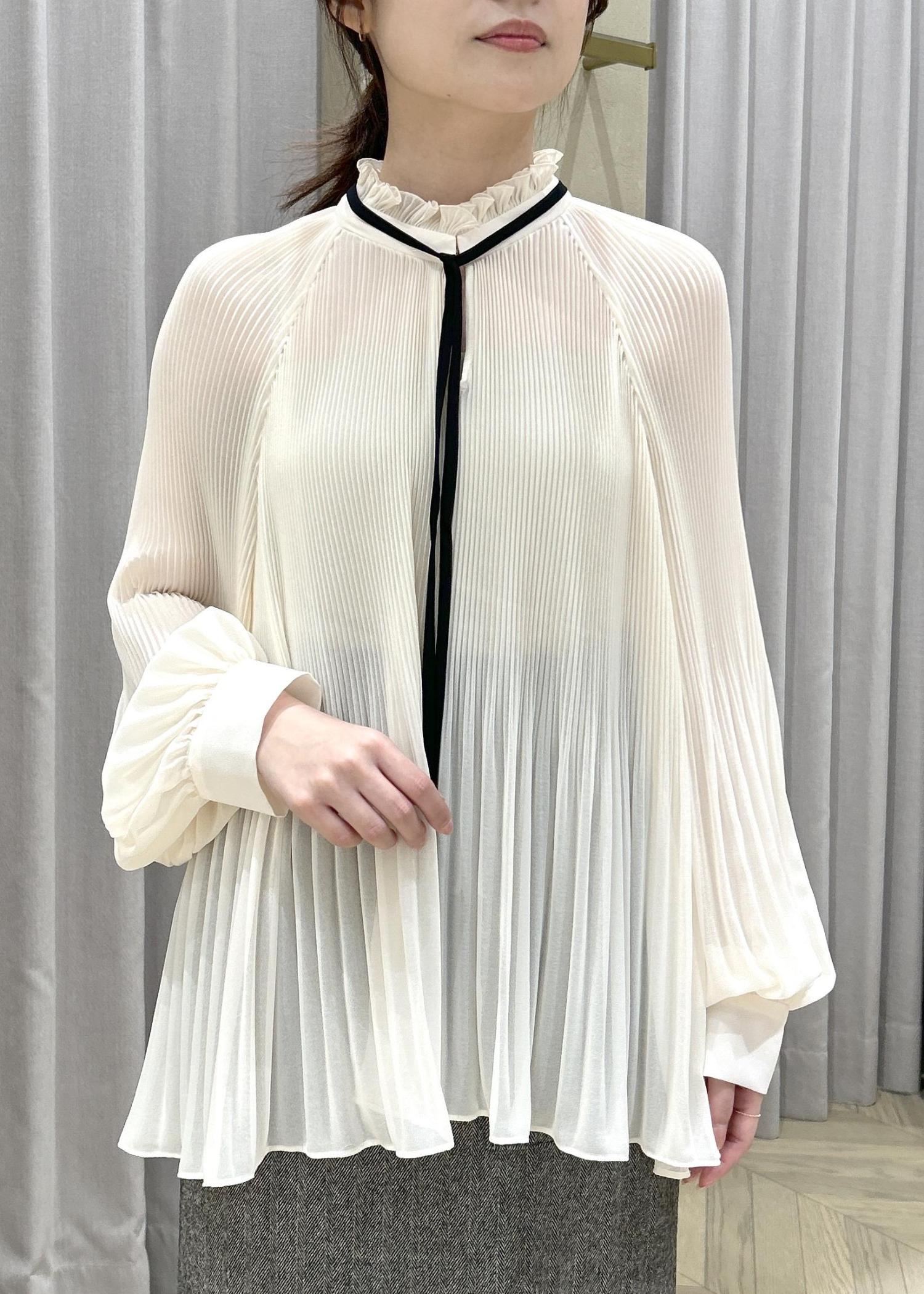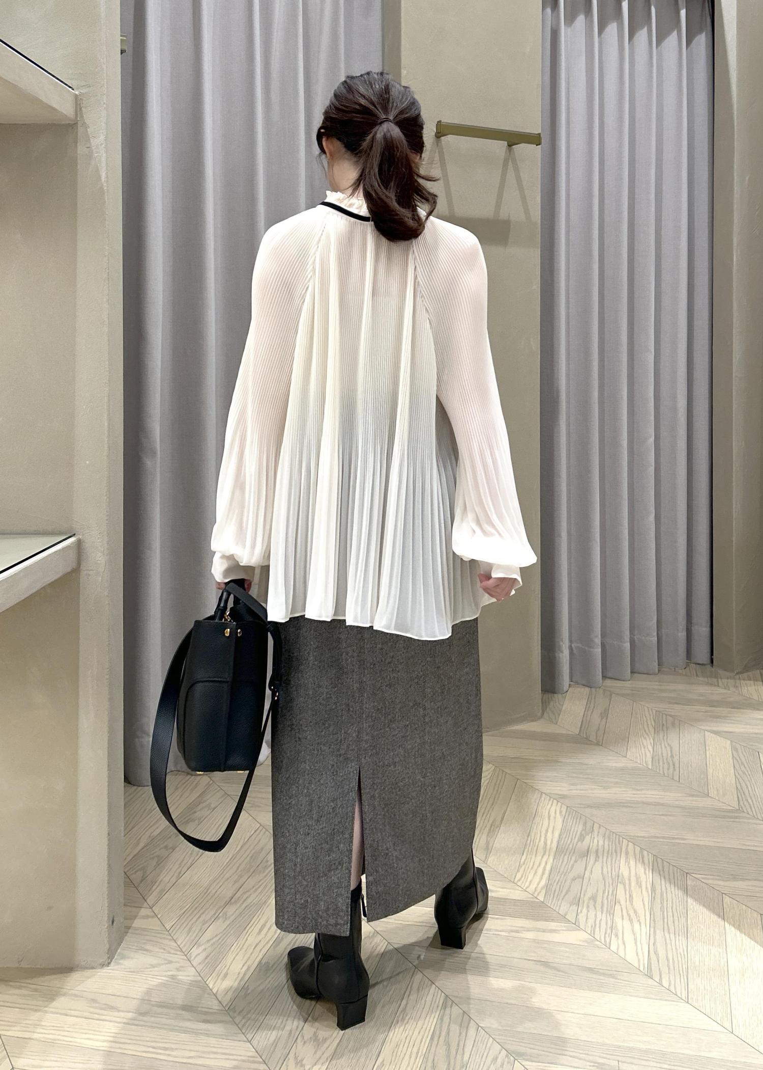 通勤にも授業参観やセレモニーにも使えるプリーツブラウスが、女性らしい華やかな印象を与えてくれます♡