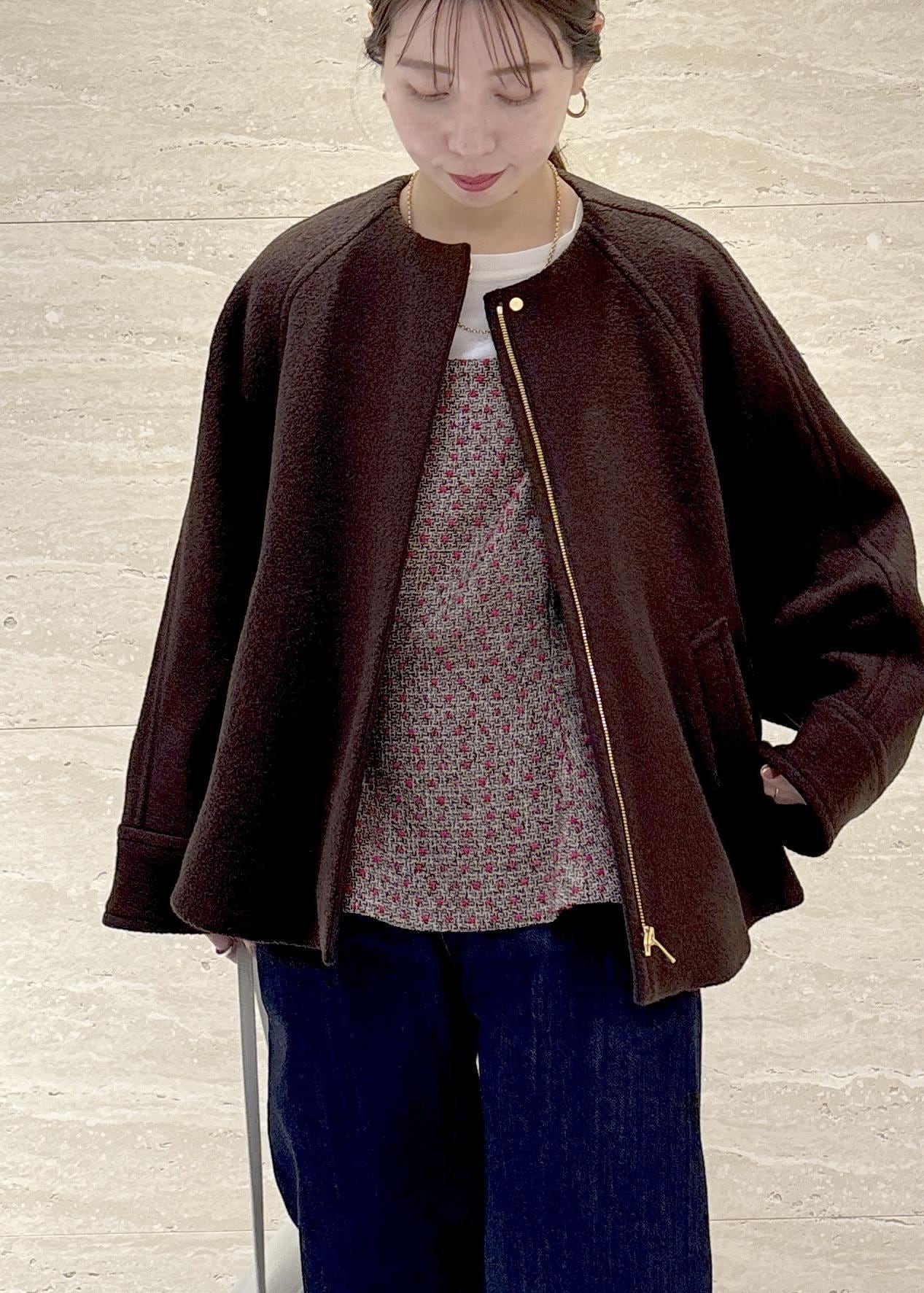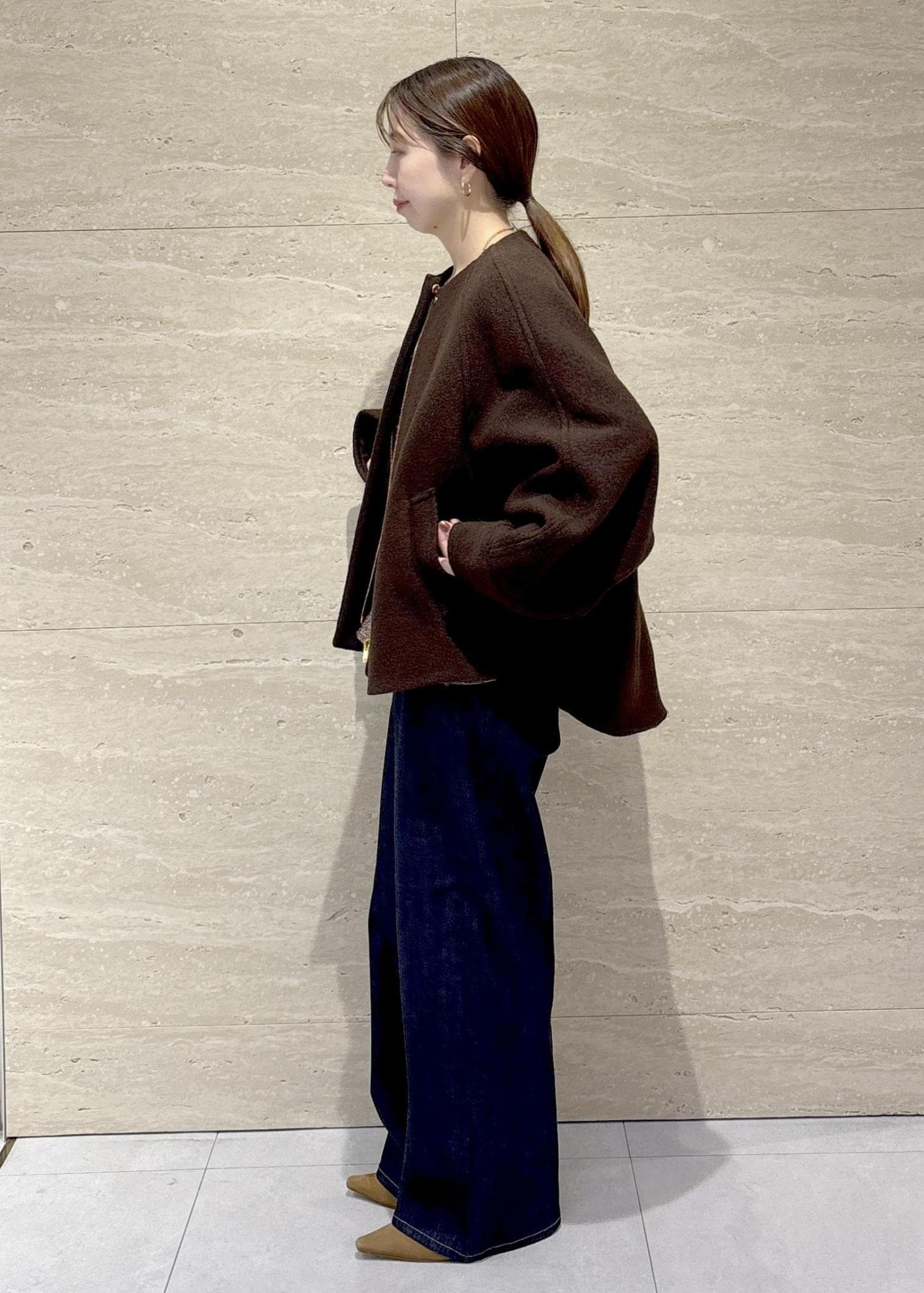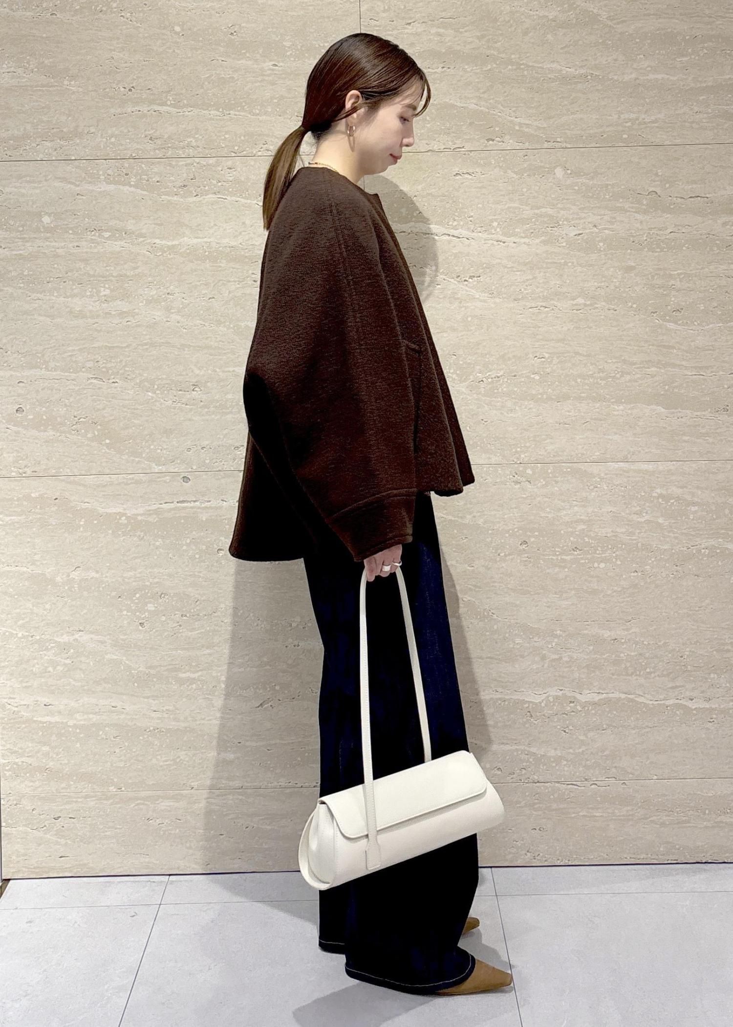 着丈も腰骨の位置くらいで長すぎないため、小柄な方にも着やすいデザインです。 -