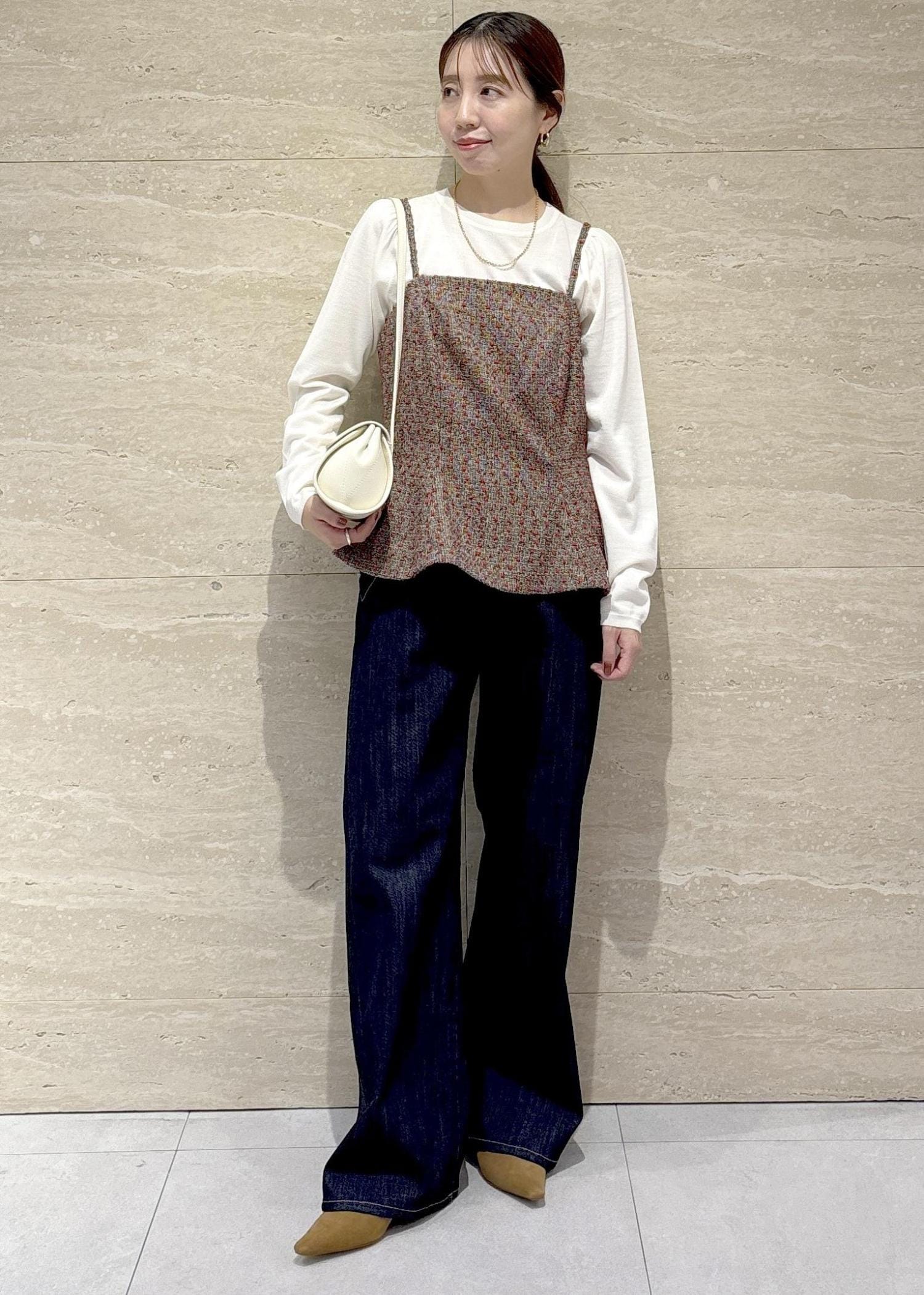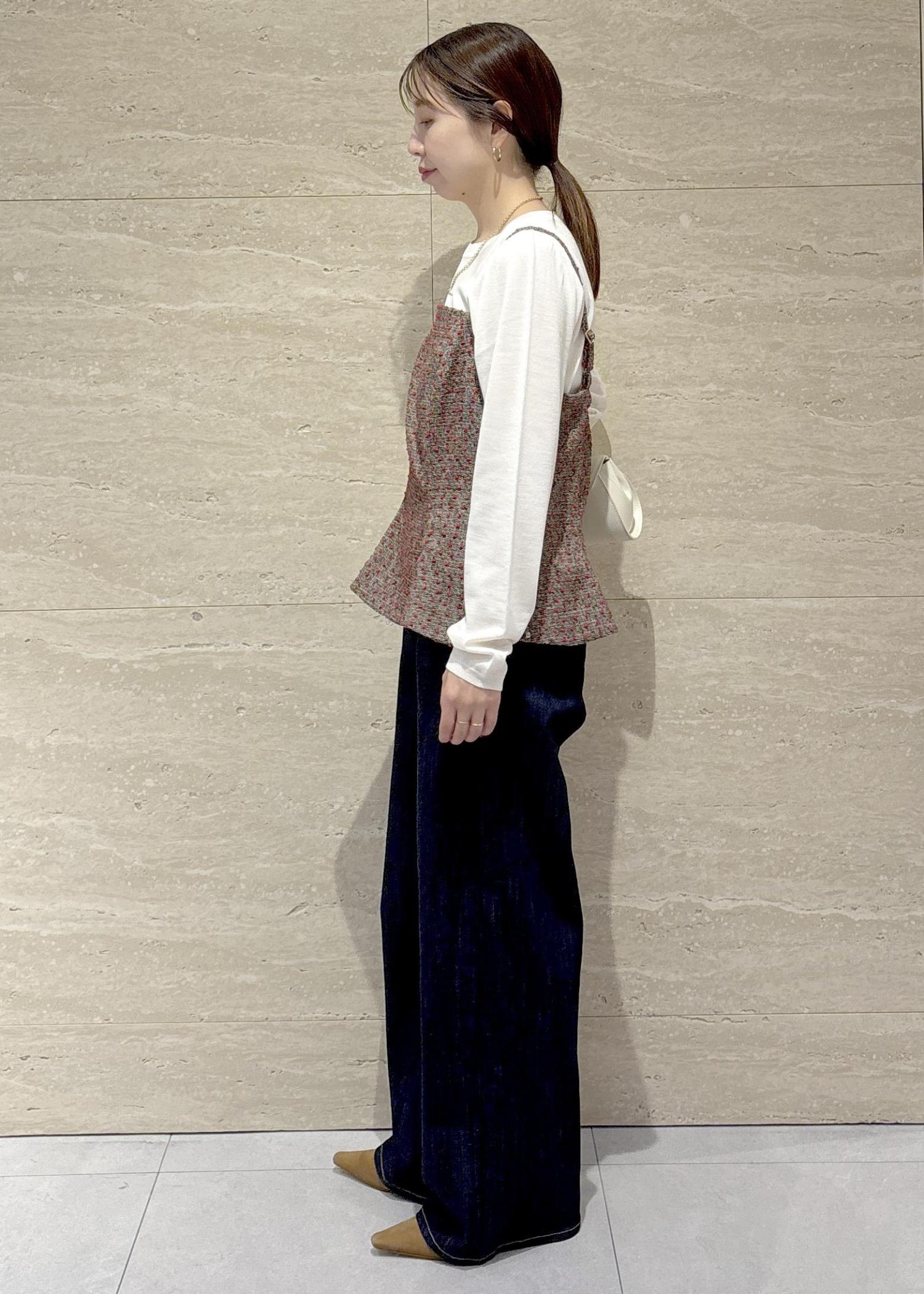 コートの中もMasaco Teranishi(マサコテラニシ)のビスチェキャミでぬかりなく可愛いアイテムをプラスしました。