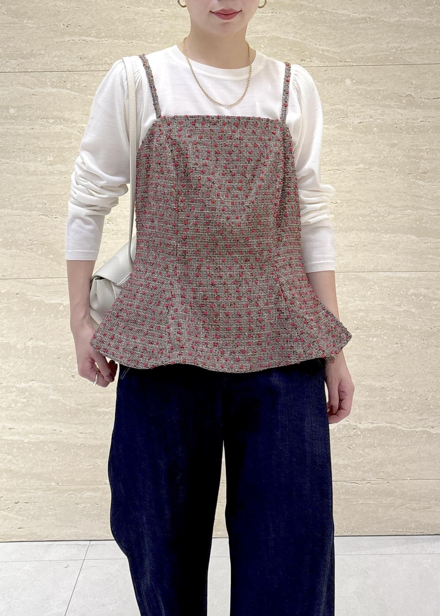 ROPÉ SELECT【Masaco Teranishi(マサコテラニシ)】PAWPAW TWEED CAMISOLE|キャミソールダークブラウン / F¥29,700レビュー赤のドット柄のようなツイードがとても可愛いキャミソールです。