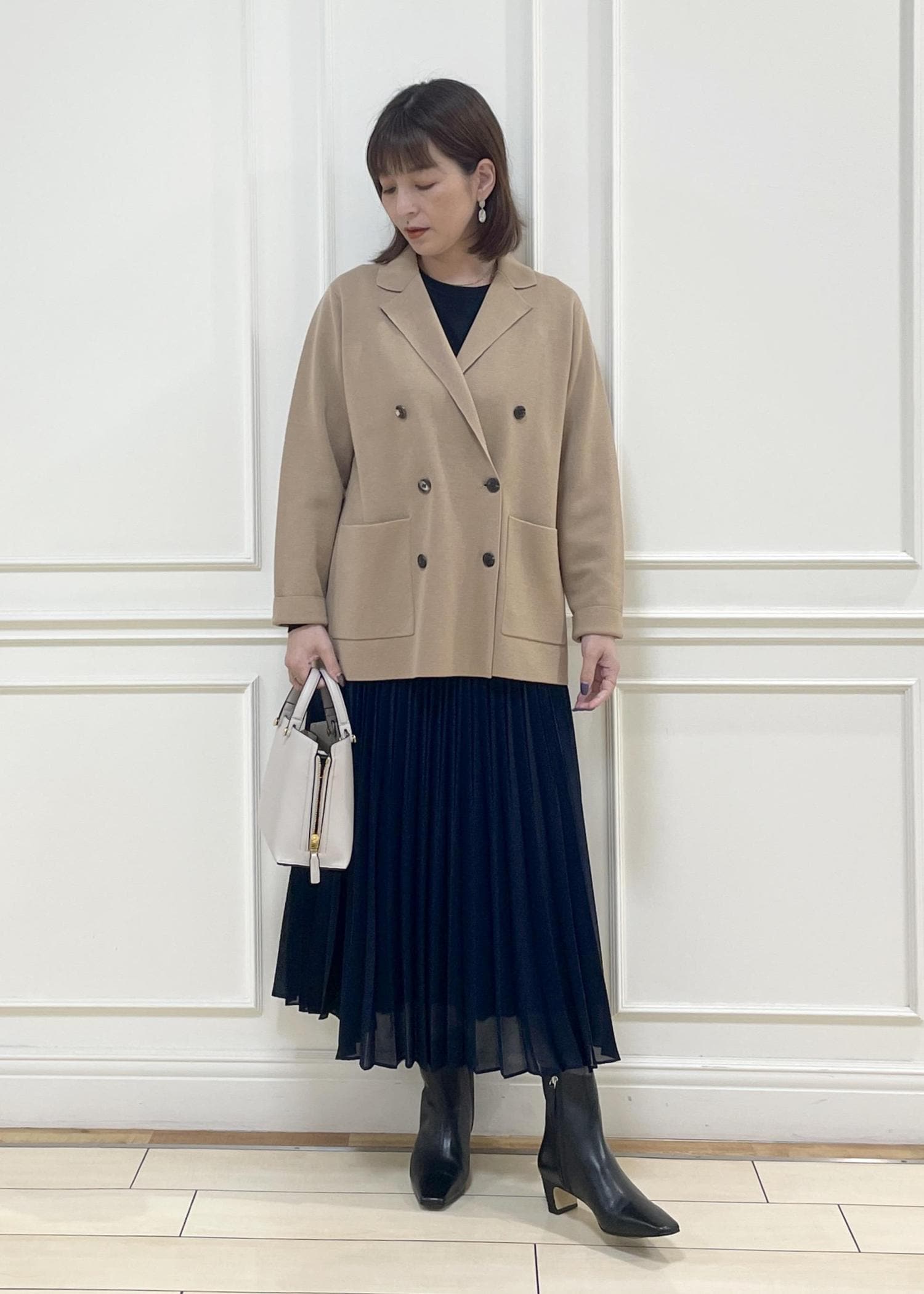 ROPÉミラノリブ ニットダブルジャケット/イージーケアベージュ / 38¥29,260レビュー38size着用。
