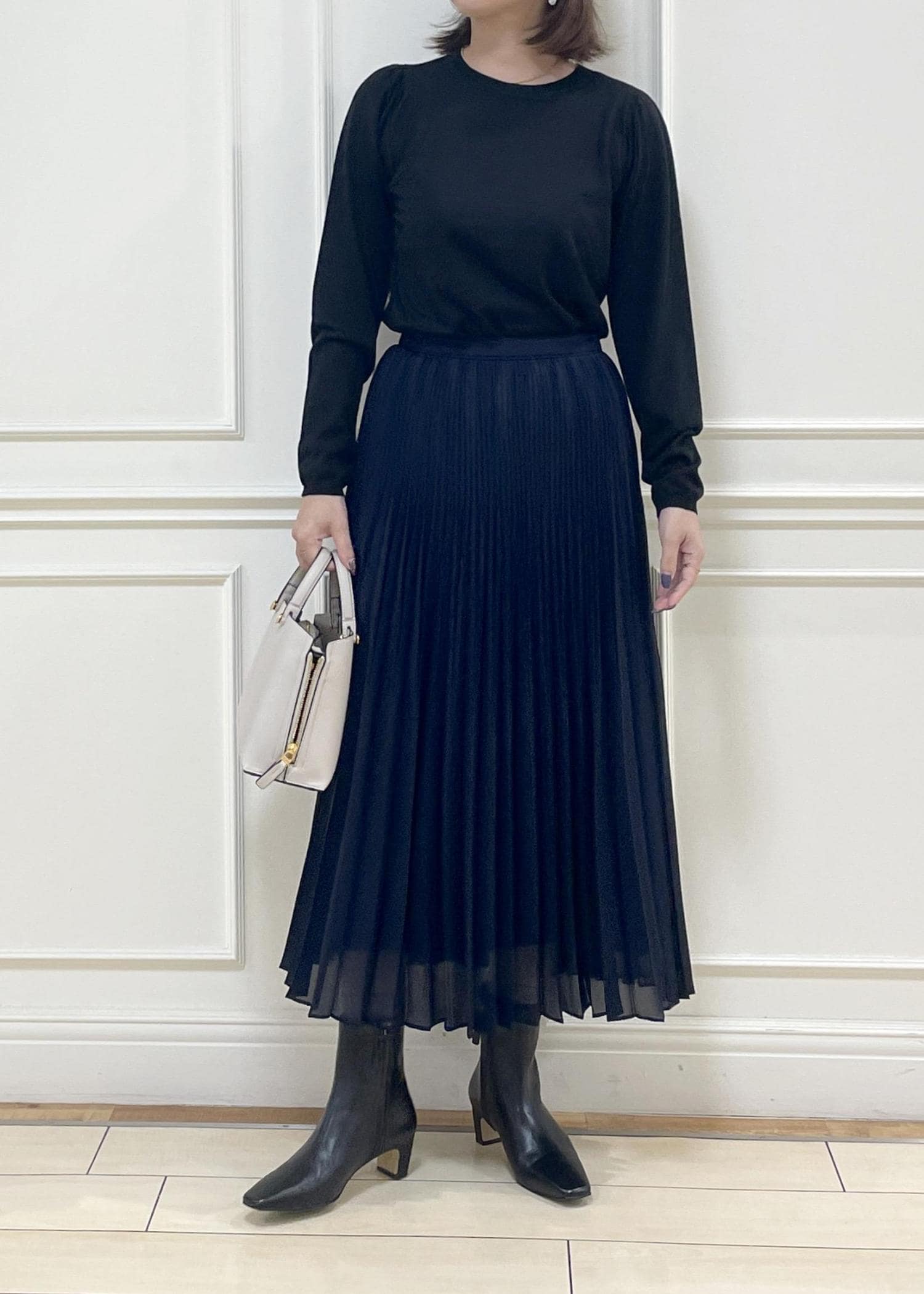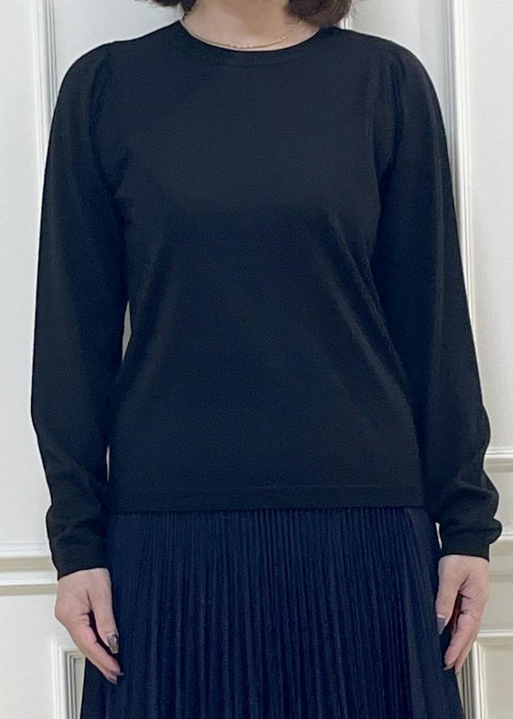 ROPÉ袖ギャザークルーネックニットプルオーバー/イージーケアブラック / F¥19,800レビューフリーサイズ着用。
