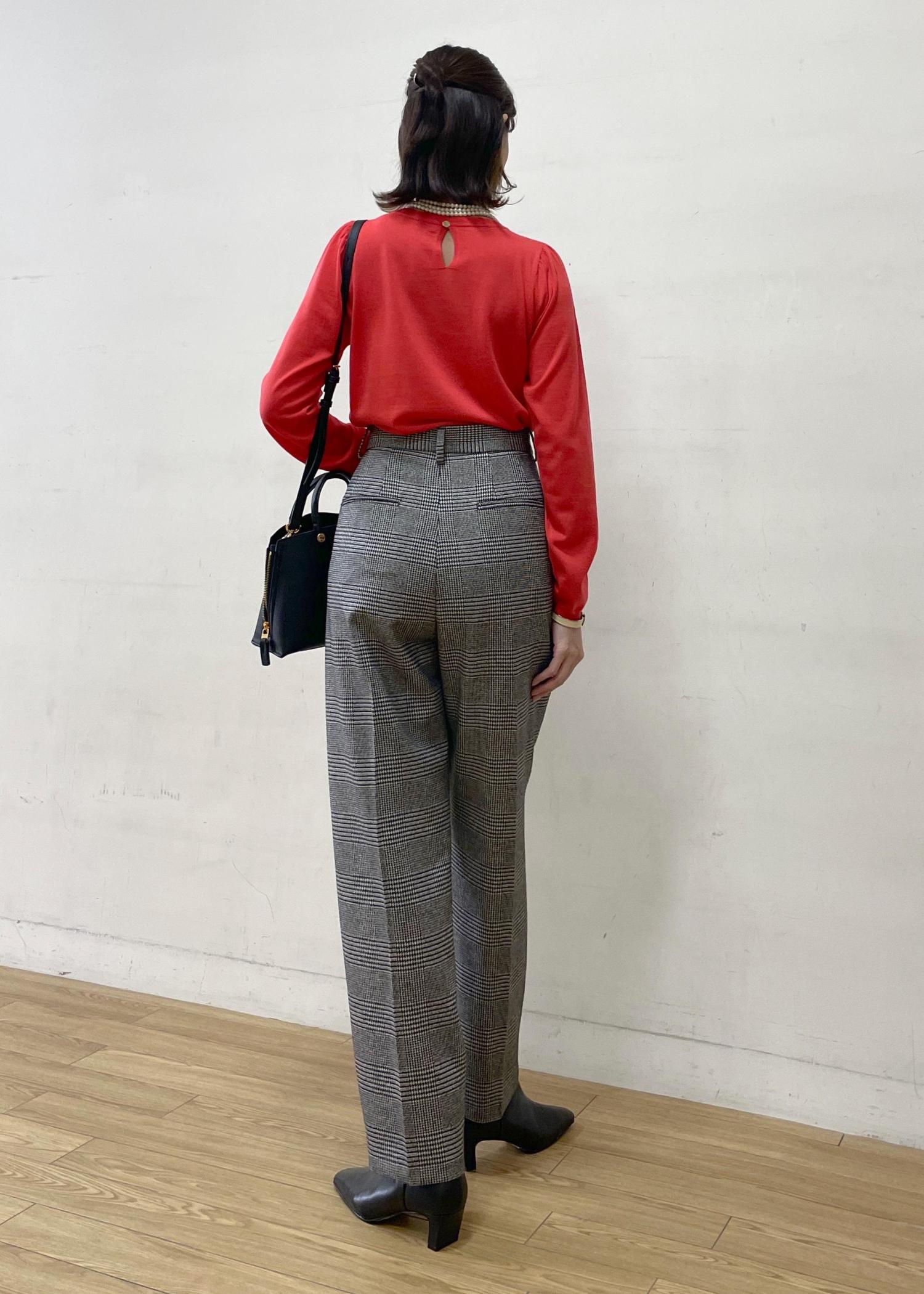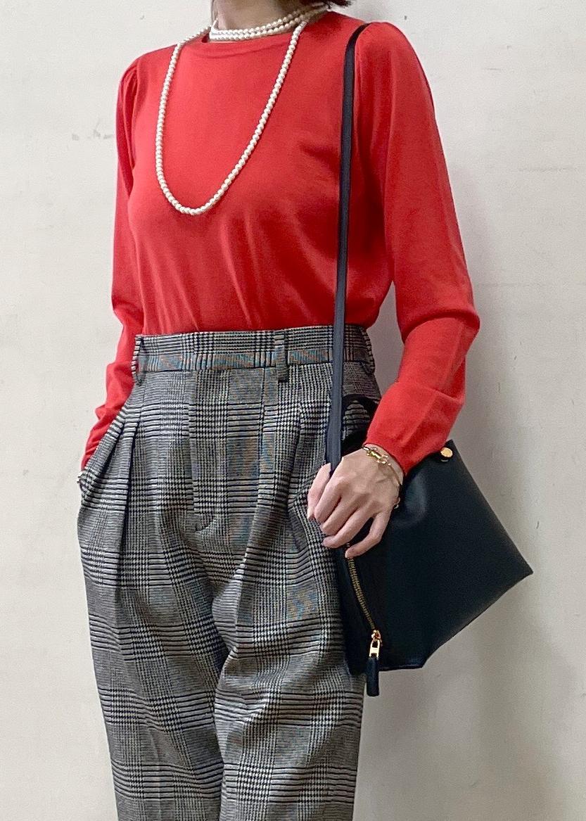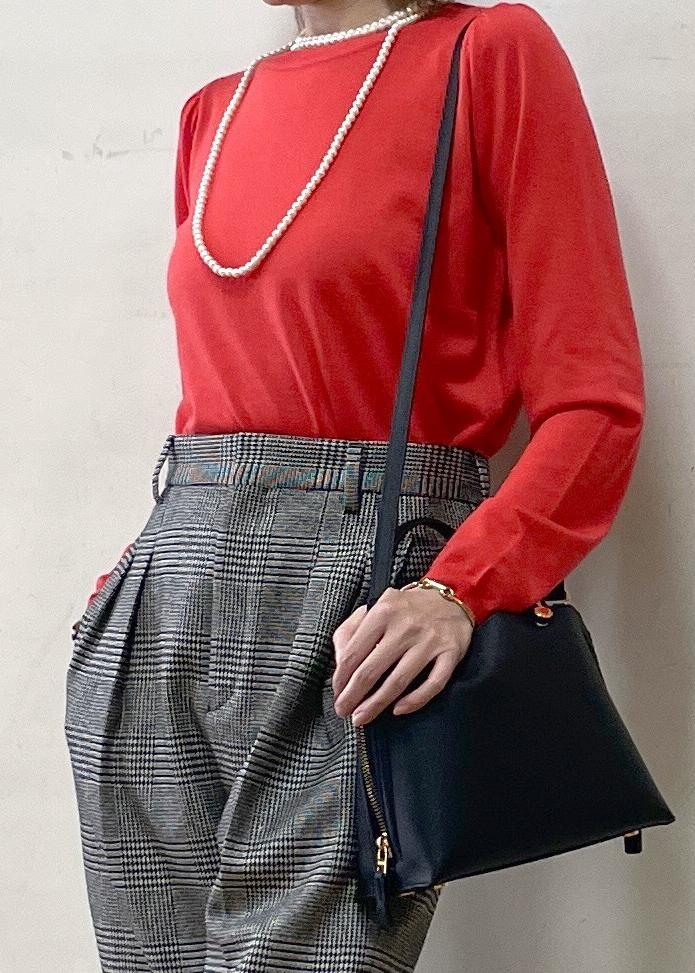1枚着としてもジャケットやコートのインナーとしても綺麗なレッドが見栄えするトップスです。 -