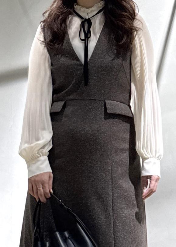 秋から冬へインナーをカットソー、ブラウス、ニットと調整しながら長く楽しめそしてコーデに悩まないので便利! -