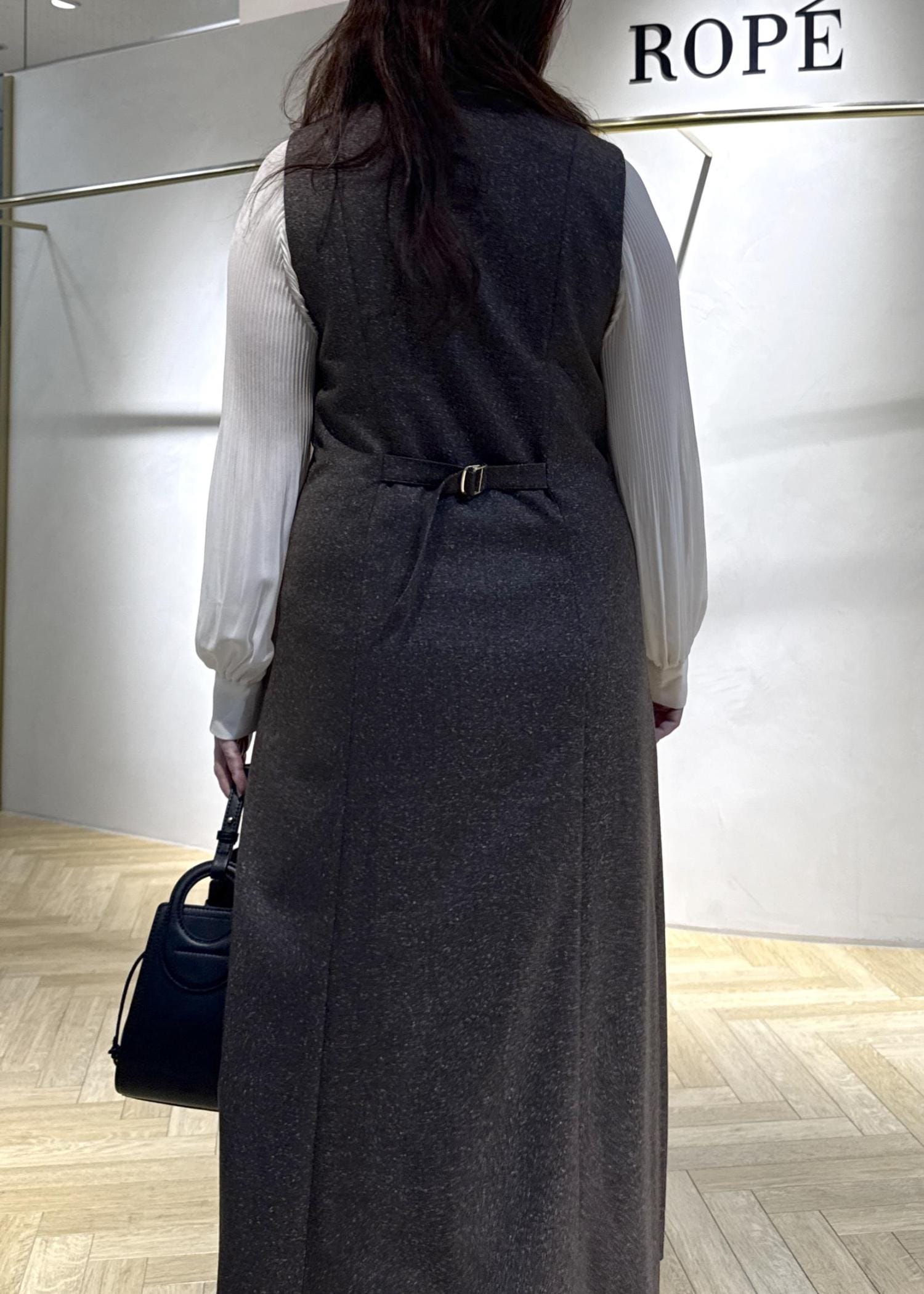ROPÉスノーツイードジャンパースカート/イージーケアブラウン / F¥30,800レビューストレッチ性は無いもののピッタリせず、窮屈では無いですが私は油断するとお腹周りが少し気になるなという感じでした。特にお腹、腰あたりは大幅なゆとりはなくスッキリ目なサイズ感だなと着用してみて思いました。