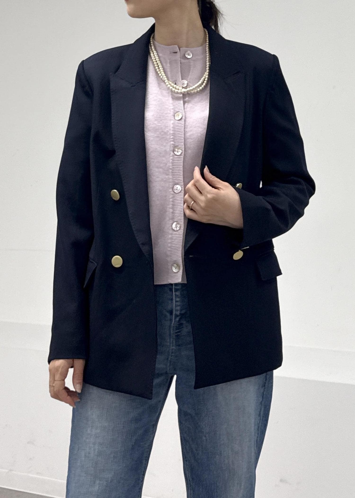 ROPÉストレッチ金ボタンブレザージャケットネイビー / 38¥52,800レビュー身長別160cm、38サイズ着用。