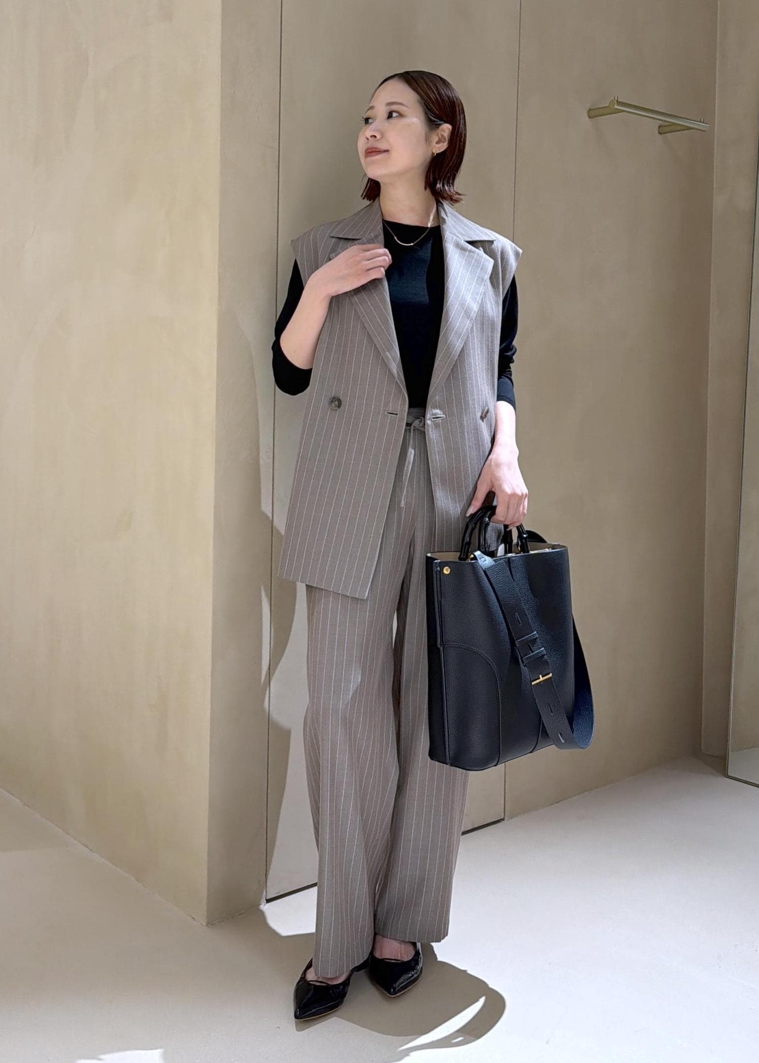 ジレのセットアップなのでインナー次第でシーズン問わず着ることができちゃいます!