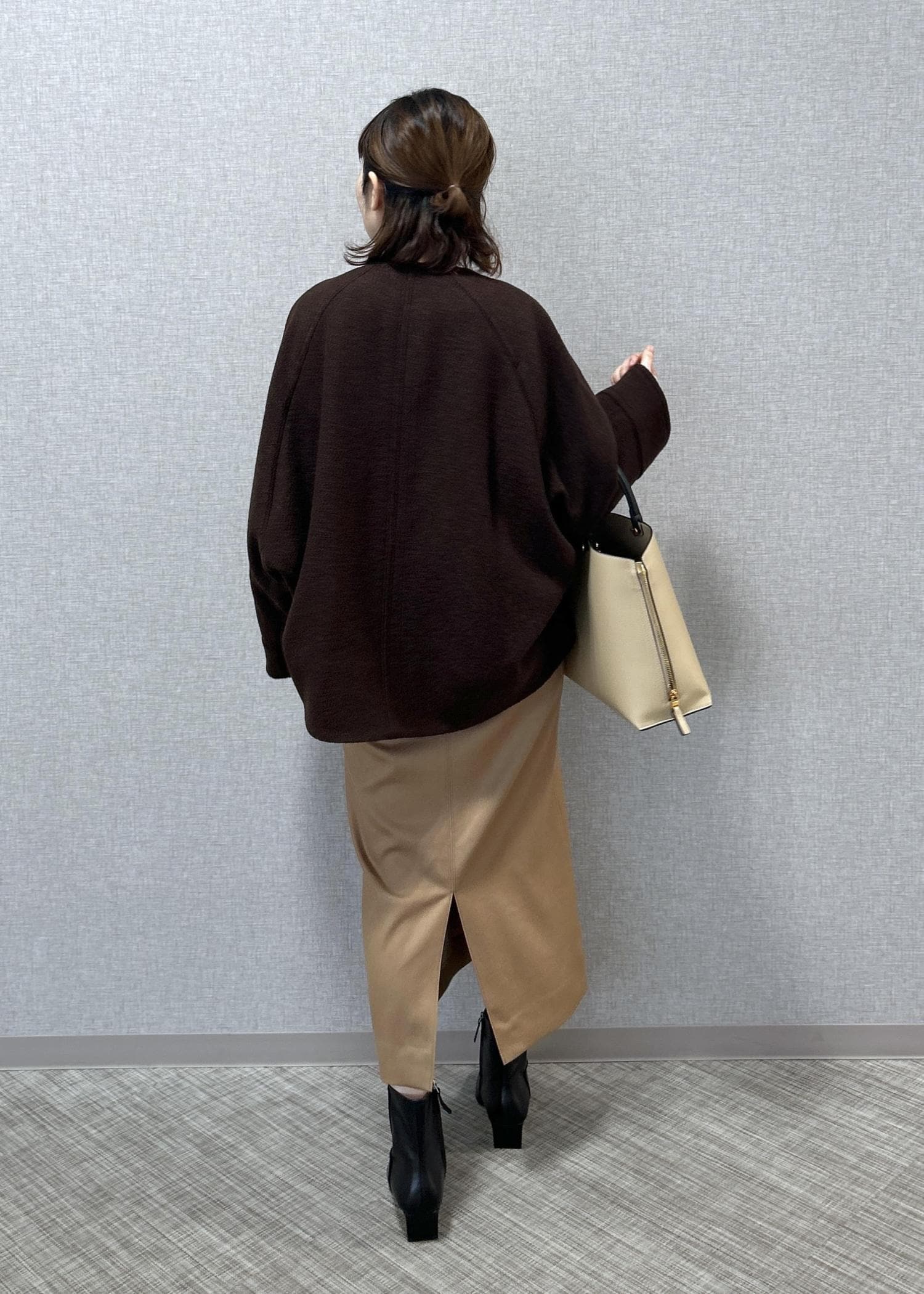 ROPÉ圧縮ウールコクーンショート丈コート/Bellandi(ベランディ)ダークブラウン / 36¥58,300レビュー後ろ側の丈感はヒップが隠れる長さです。