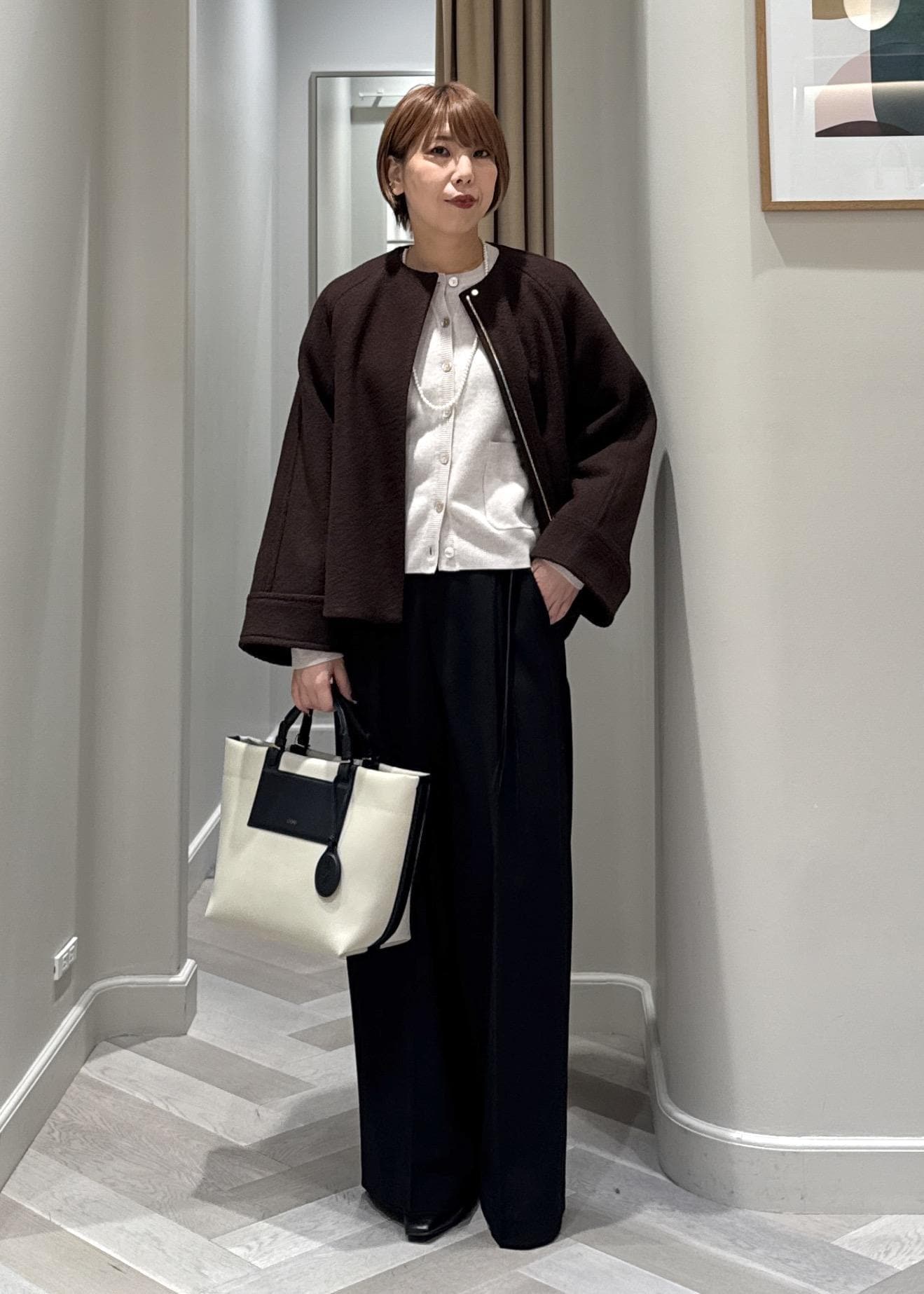 圧縮ウールの素材でカジュアルになりすぎずに綺麗めなコーディネートにも◎