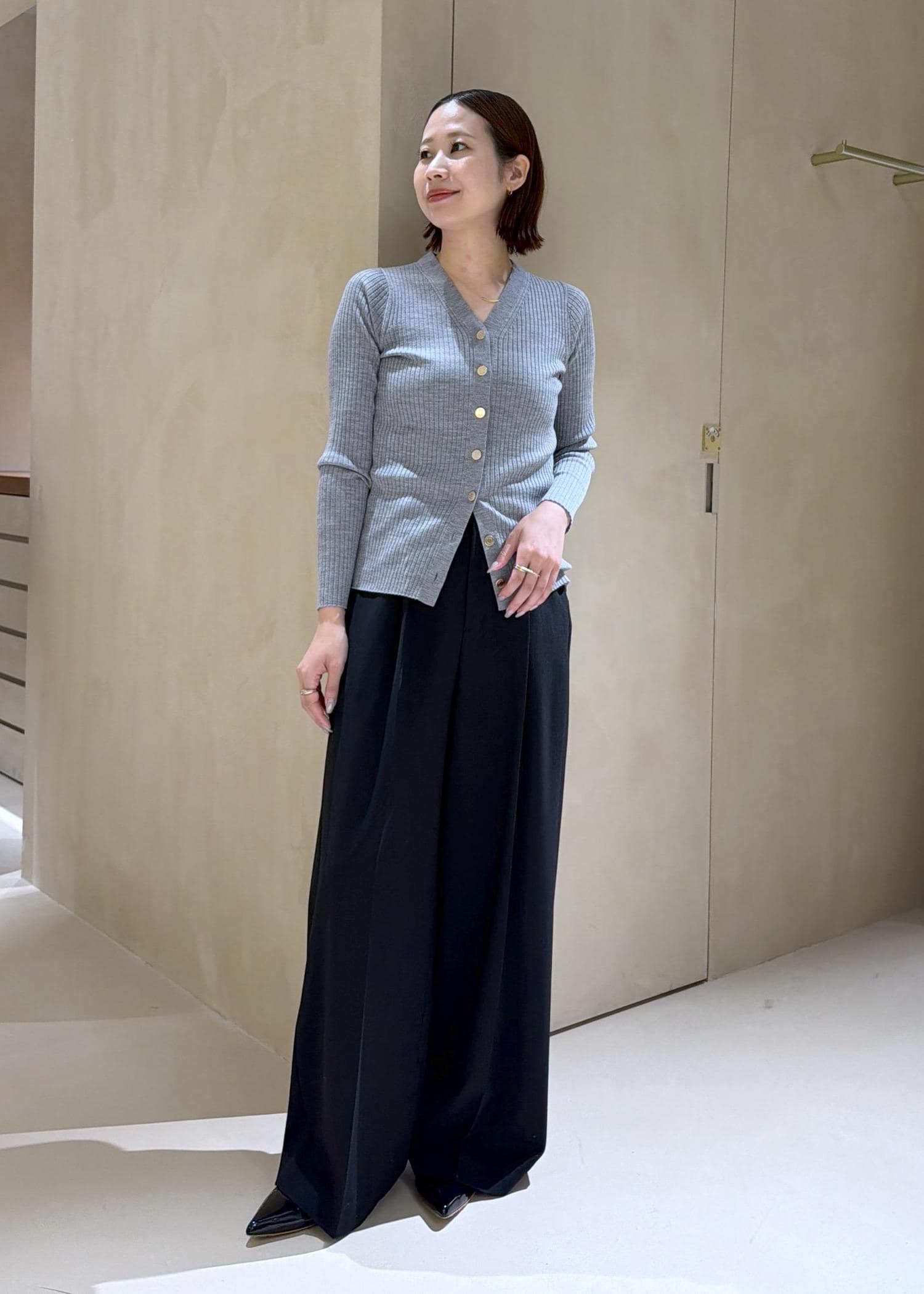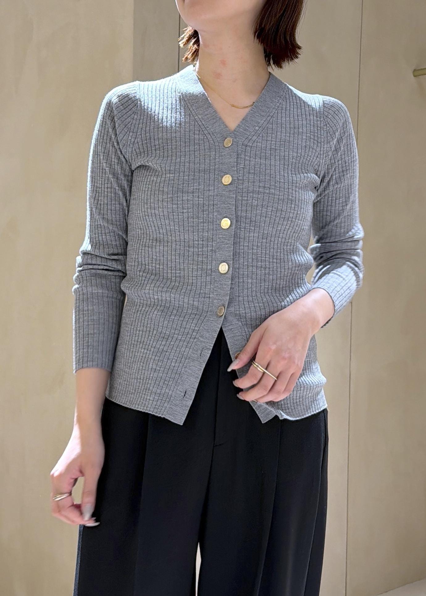 カーディガンですが1枚着としてもおすすめです。Vネックなので顔周りもスッキリ見えゴールドボタンが華やかさをプラスしてくれます。 -