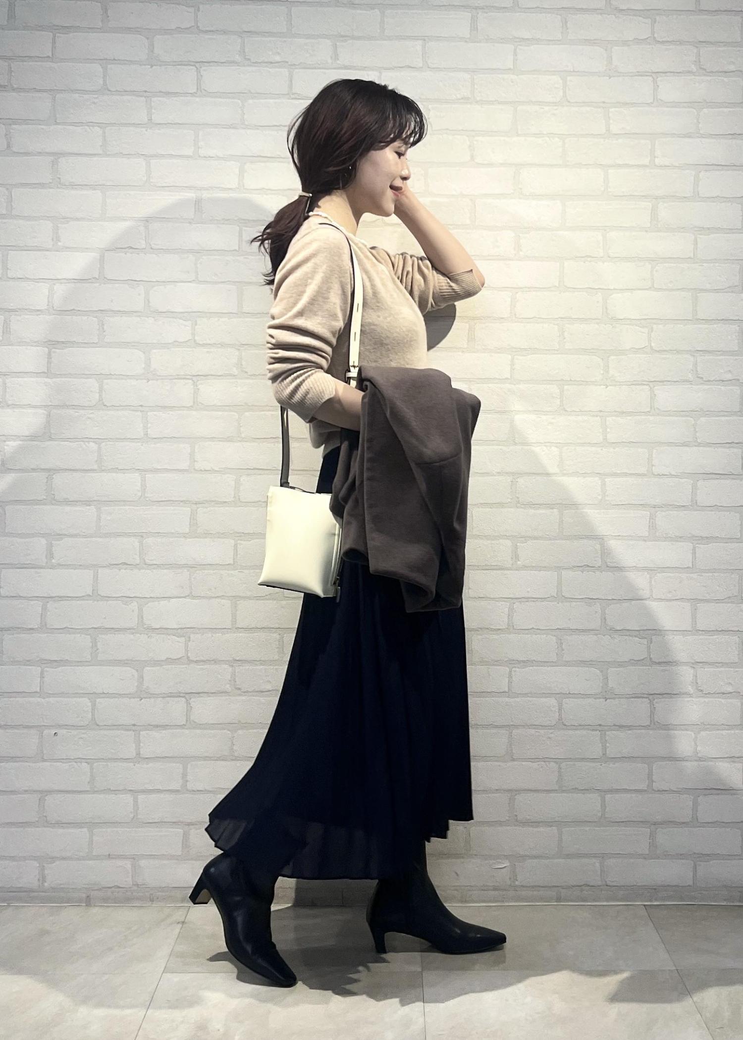 足首は全て覆うくらいの高さまであり、ミモレ丈くらいのスカートがバランス良く着ていただけます◎