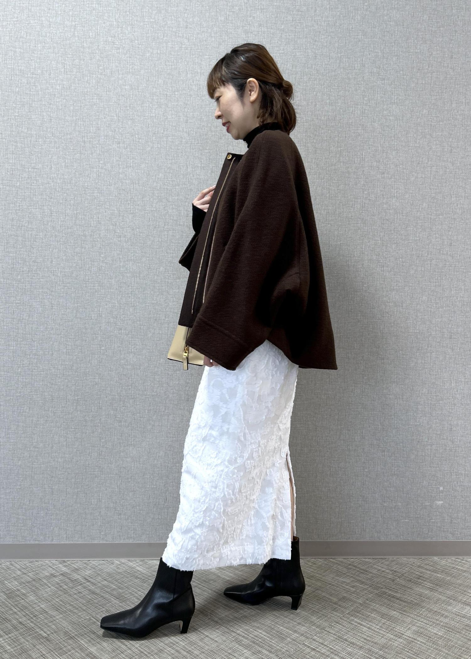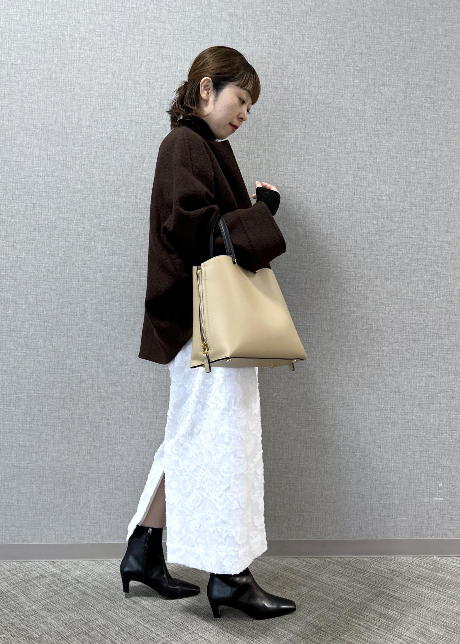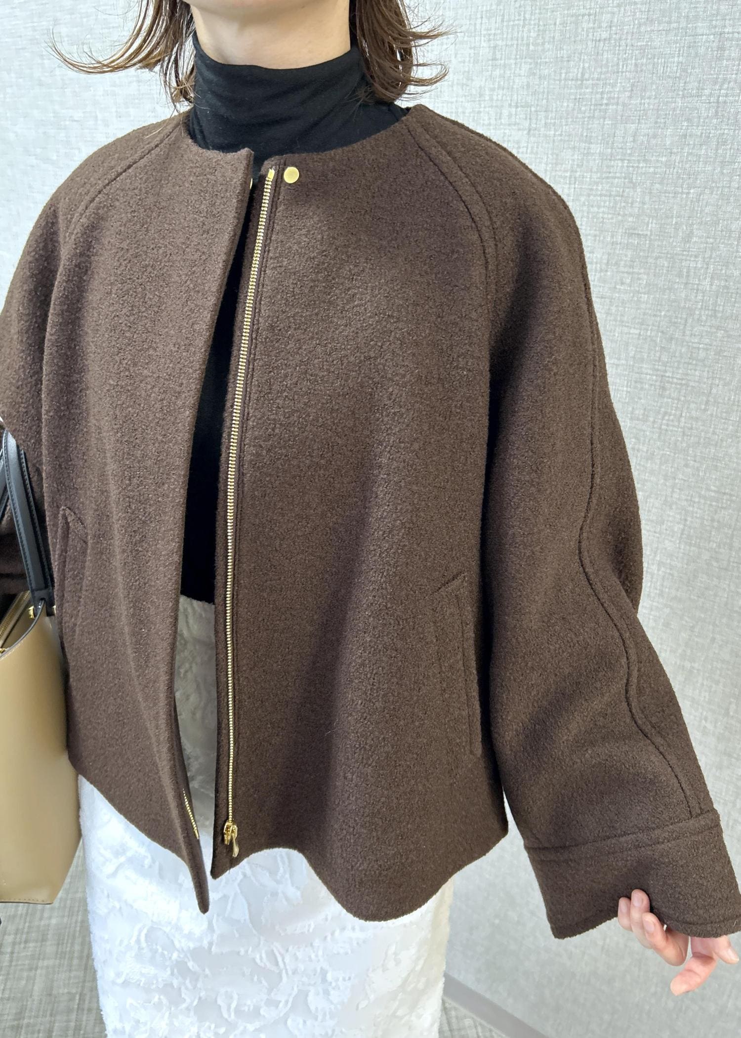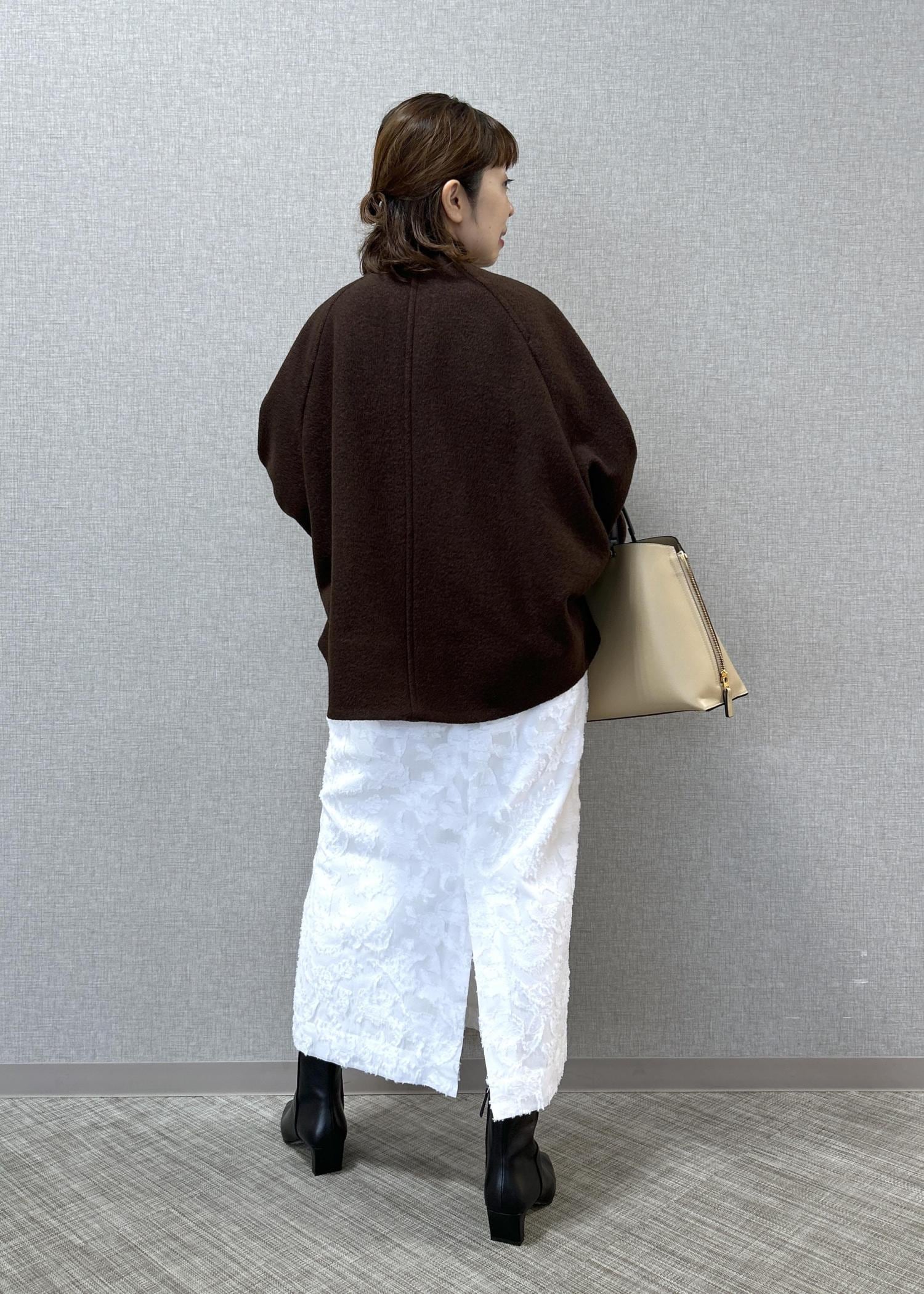 ROPÉ圧縮ウールコクーンショート丈コート/Bellandi(ベランディ)ダークブラウン / 36¥58,300レビュー後ろ側の丈感はヒップが隠れる長さです。