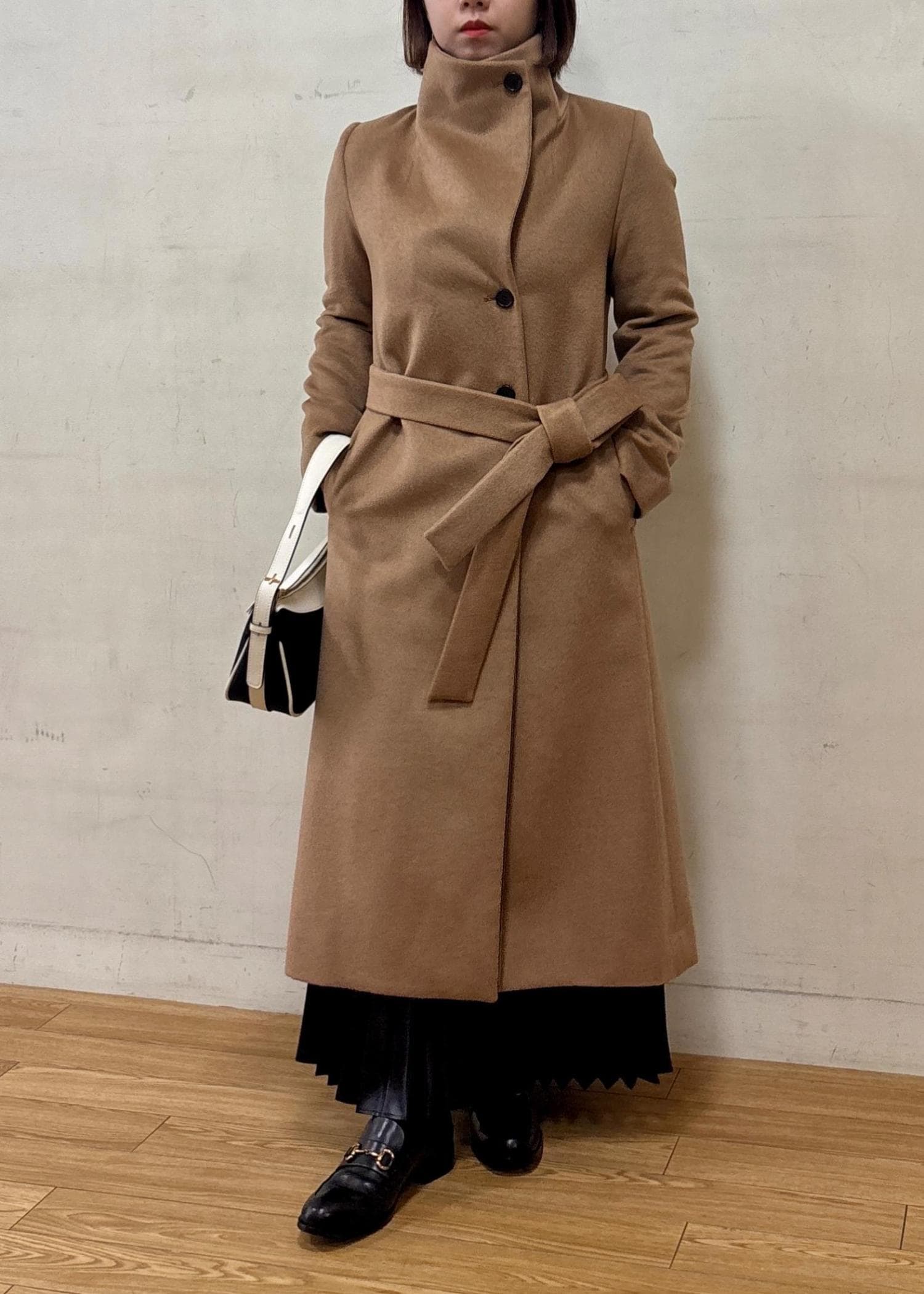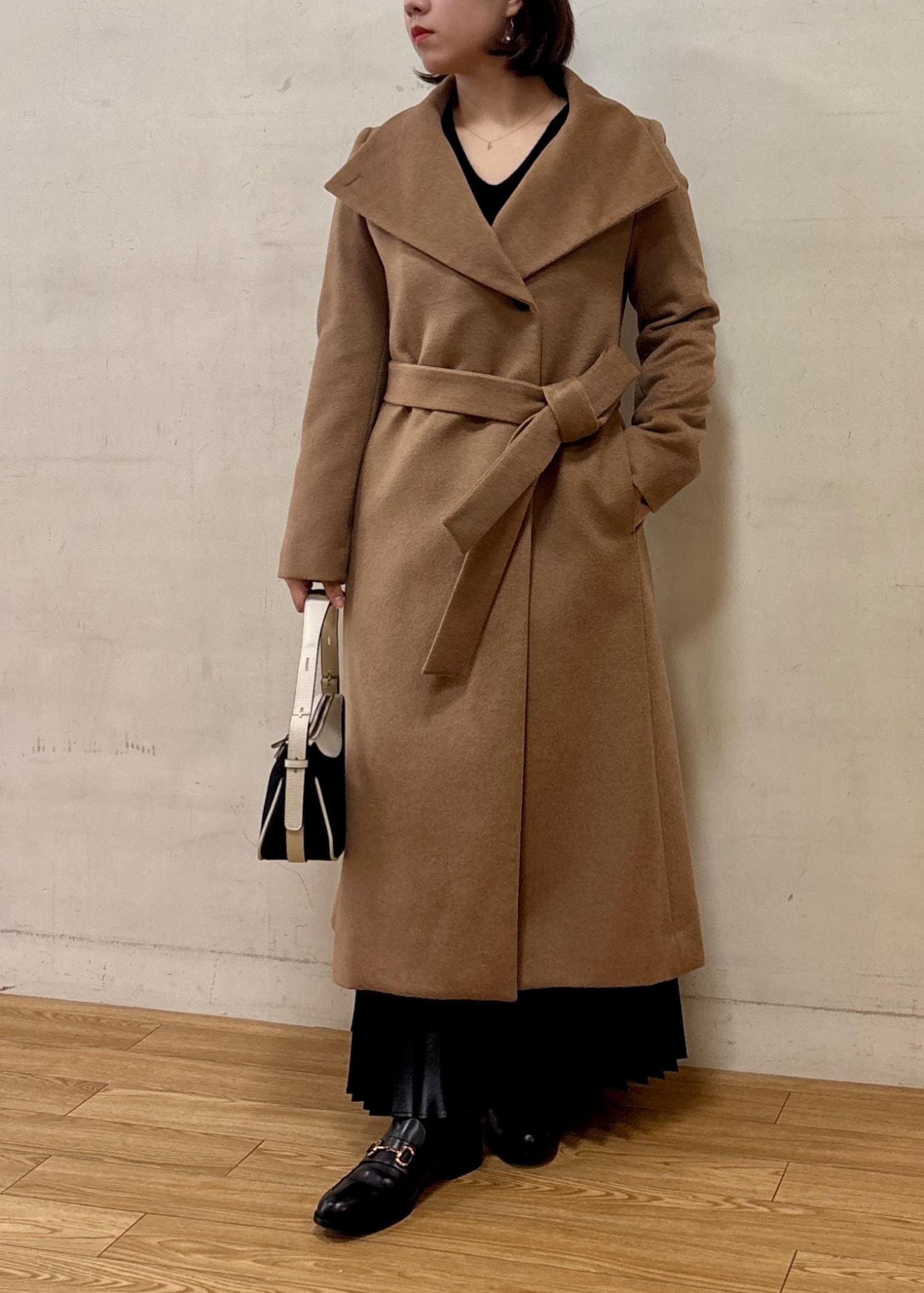 プレミアムカシミアロングコート サイズ比較34着用