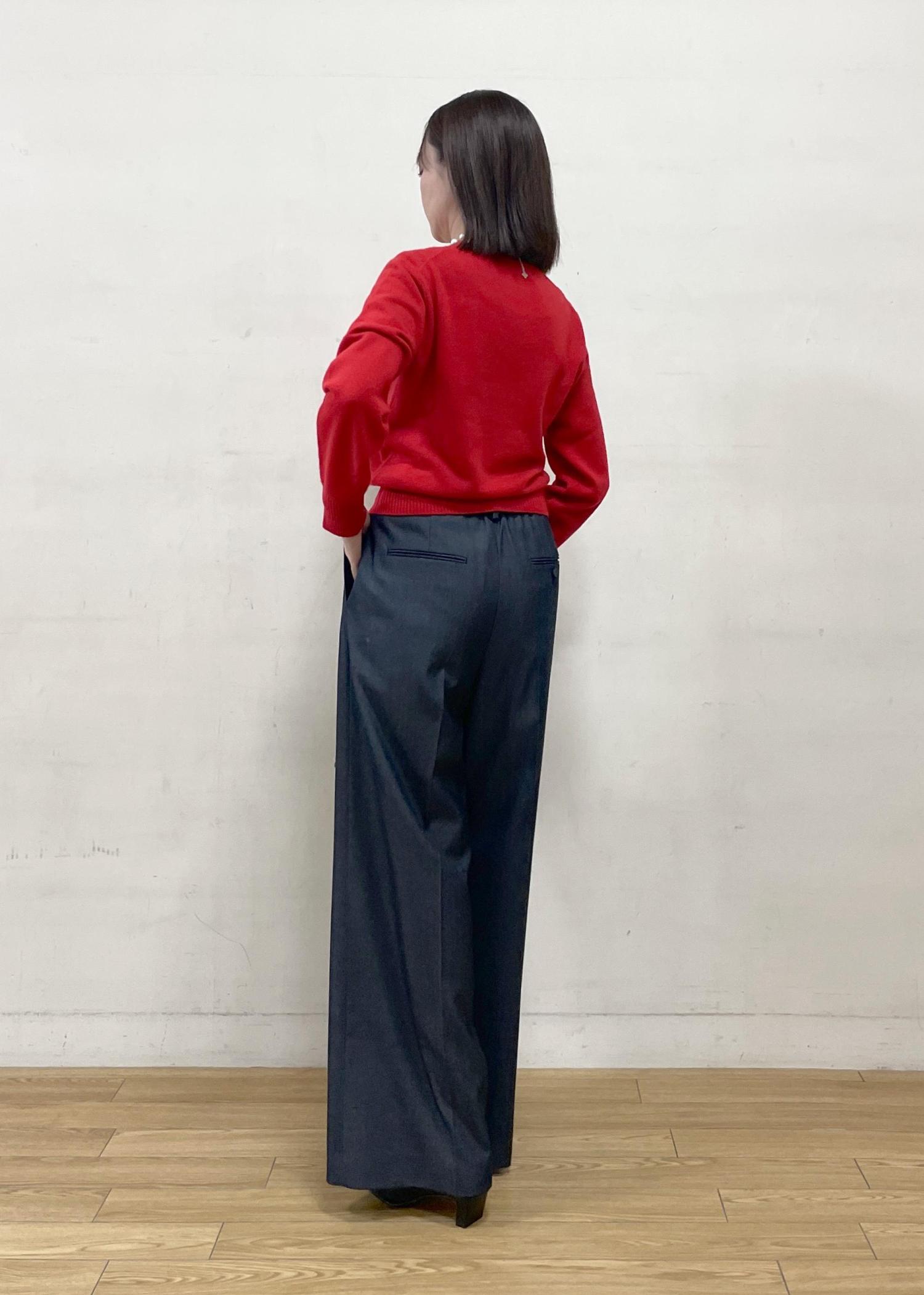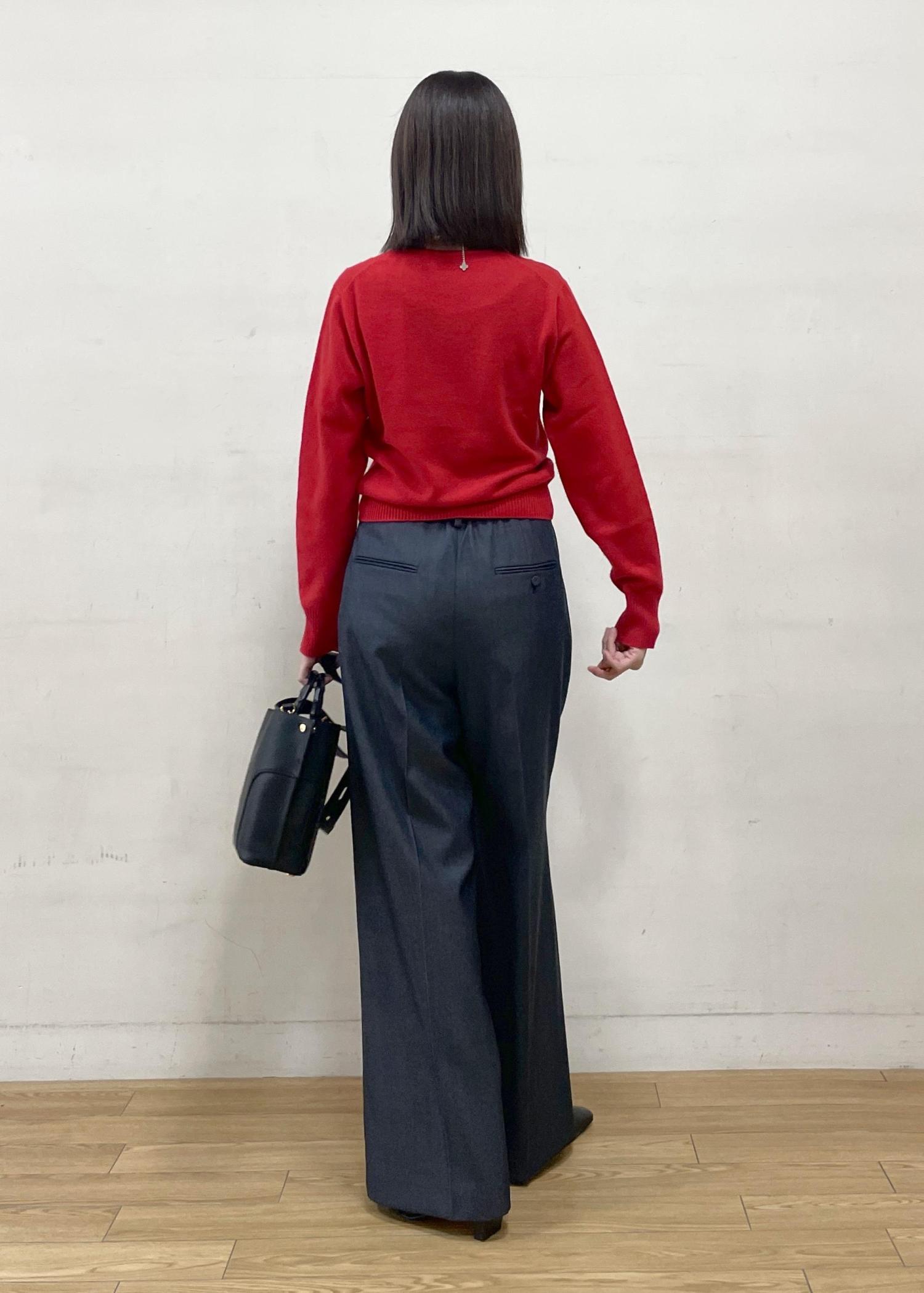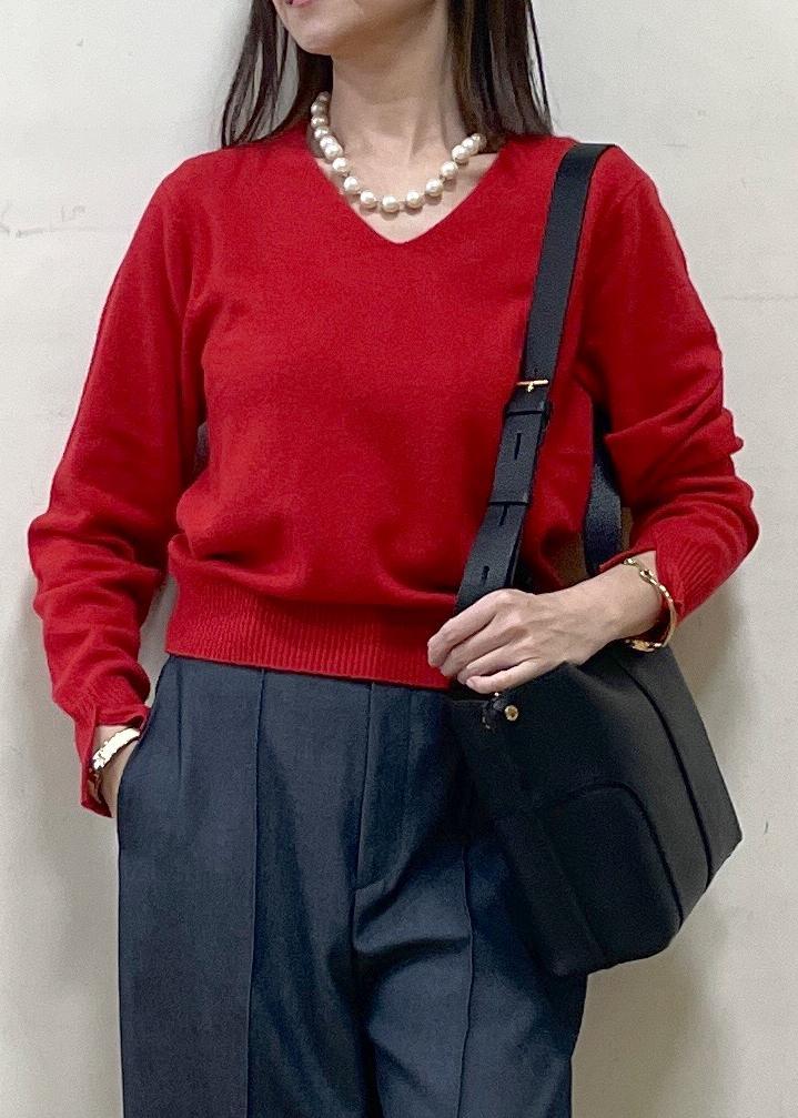 NEW!ROPÉカシミヤVネックニットプルオーバーレッド / F¥25,300レビュー着丈が今年らしくショート丈でとてもコンパクトな印象です。中厚手なのでジャケットのインナーとしても着やすく、パンツ、スカートスタイルのどちらにもバランスよく合わせやすいトップスです。