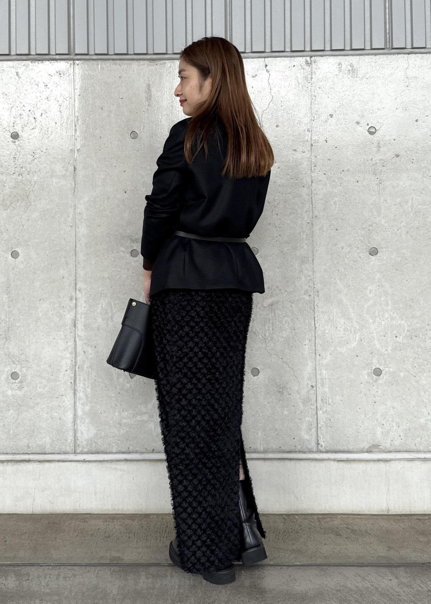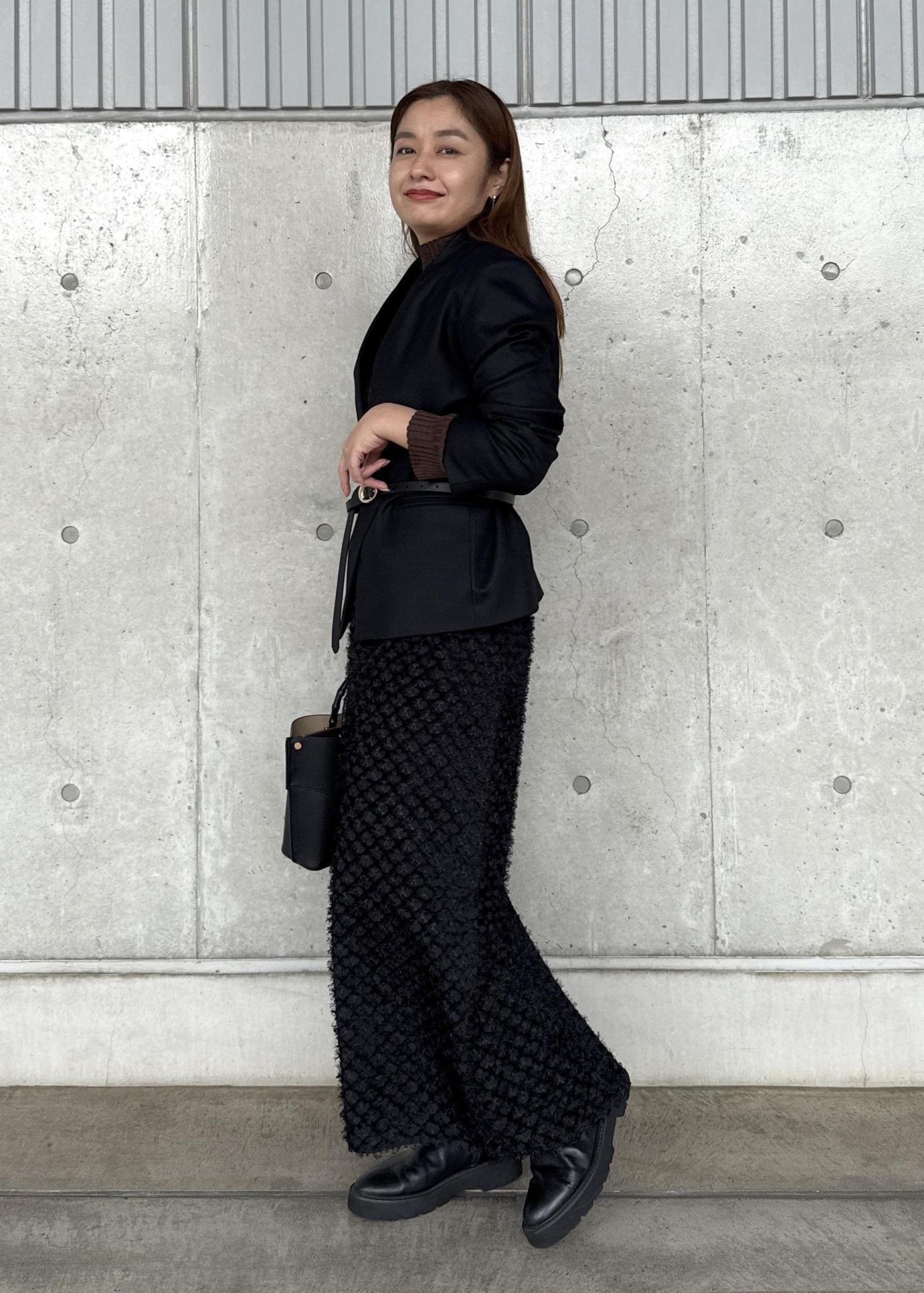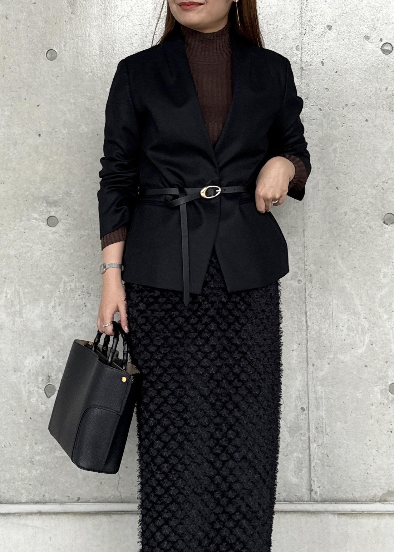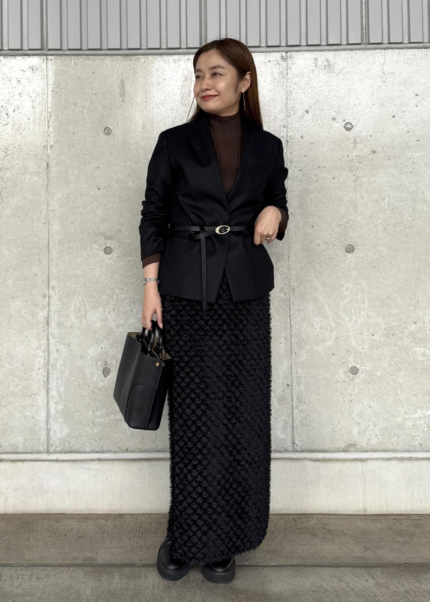 こちらのジャケットはロペで定番のポケット付きタイトスカートが同素材でご用意がありますので、セットアップでお召しいただけます。 -
