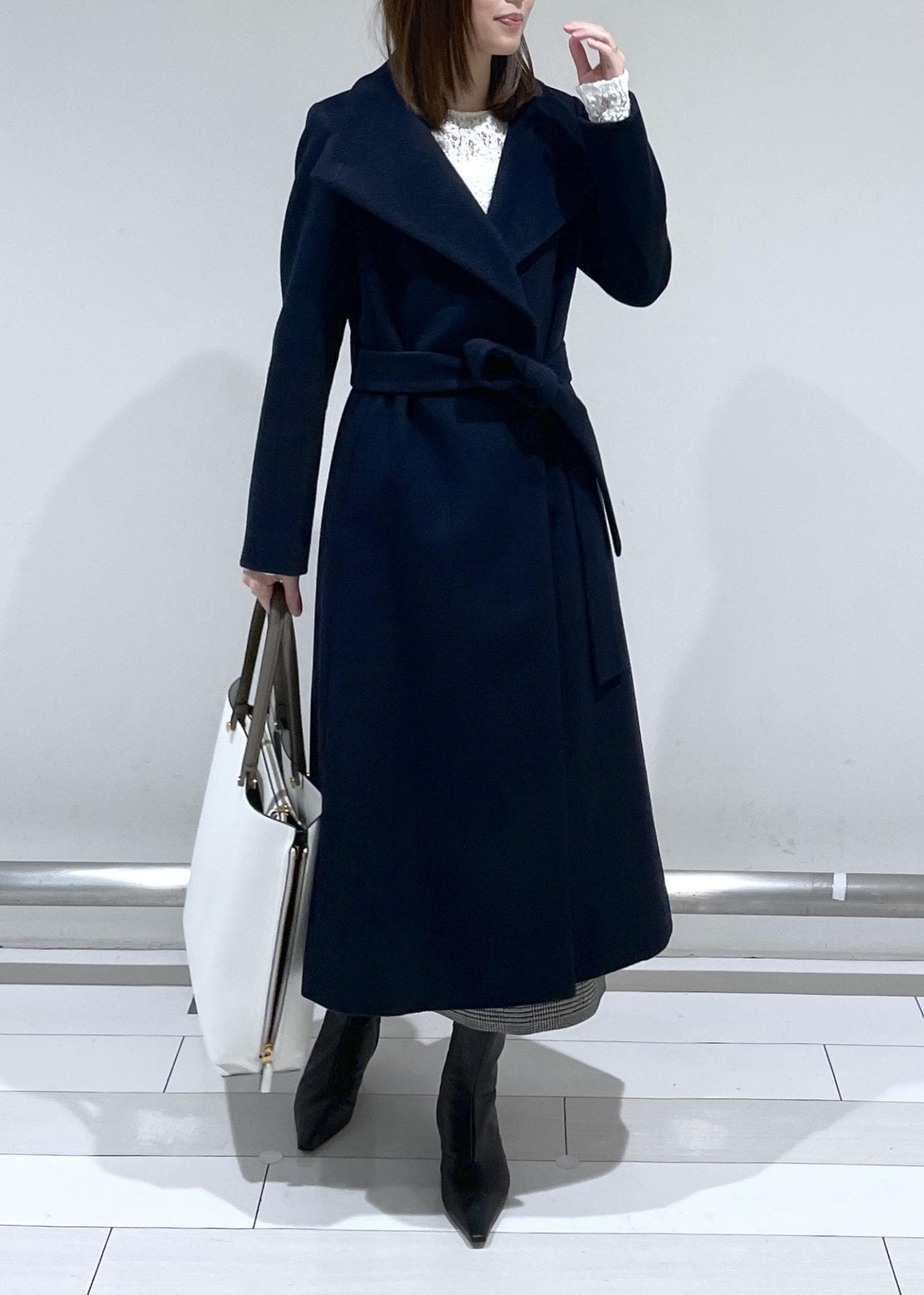 ROPÉ【2025秋冬】【moi salon et rope別注】プレミアムカシミヤ ロングコートネイビー / 36¥88,000レビューロペ定番プレミアムカシミヤコートのmoi salon et ropé別注デザイン。