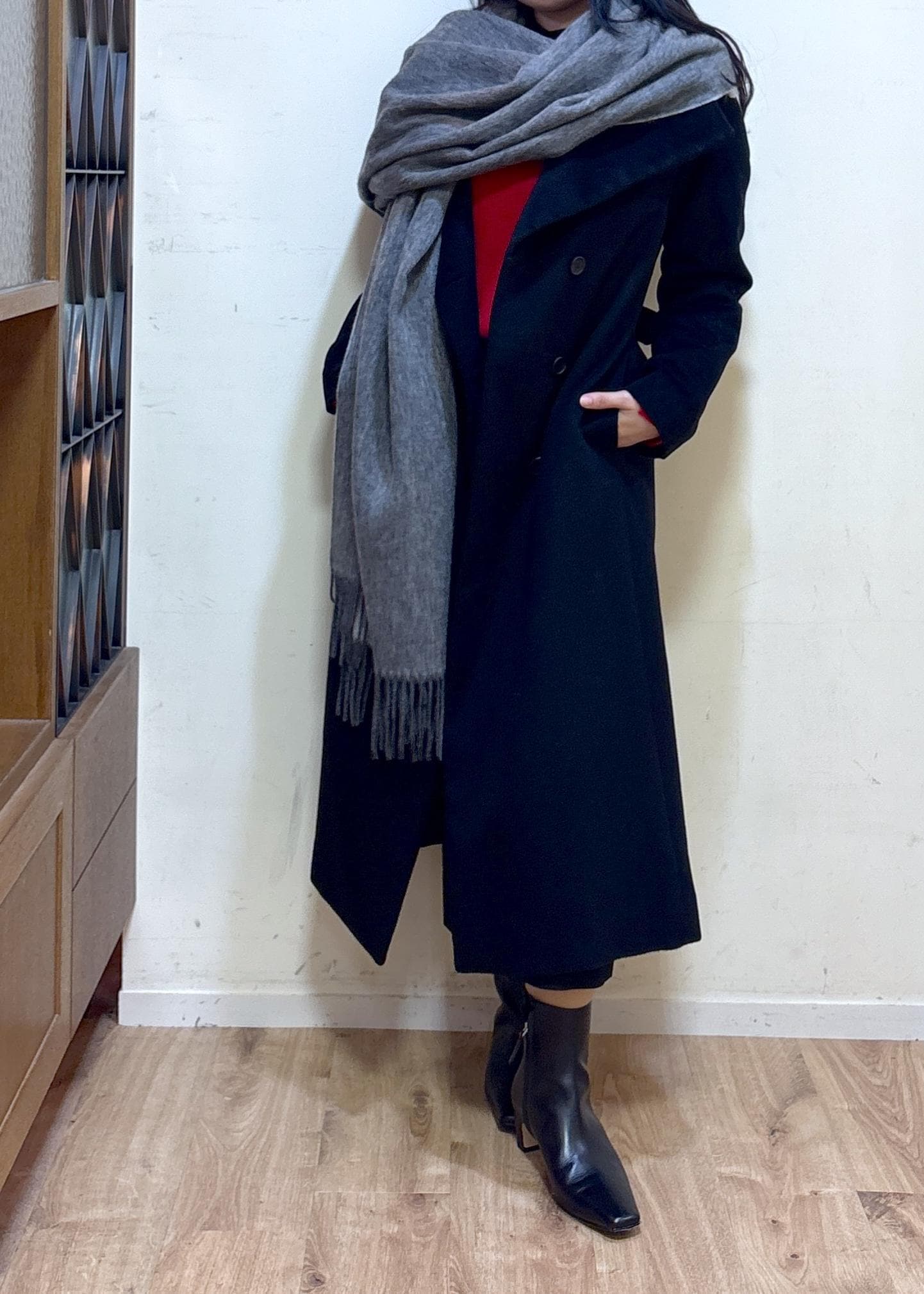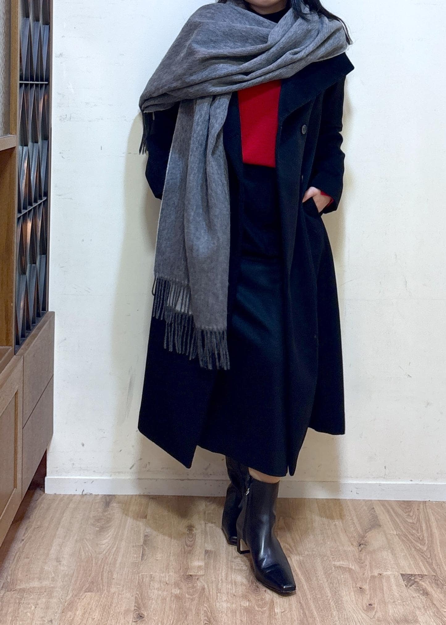 カシミヤ混でとても柔らかく光沢感が上品な印象に。