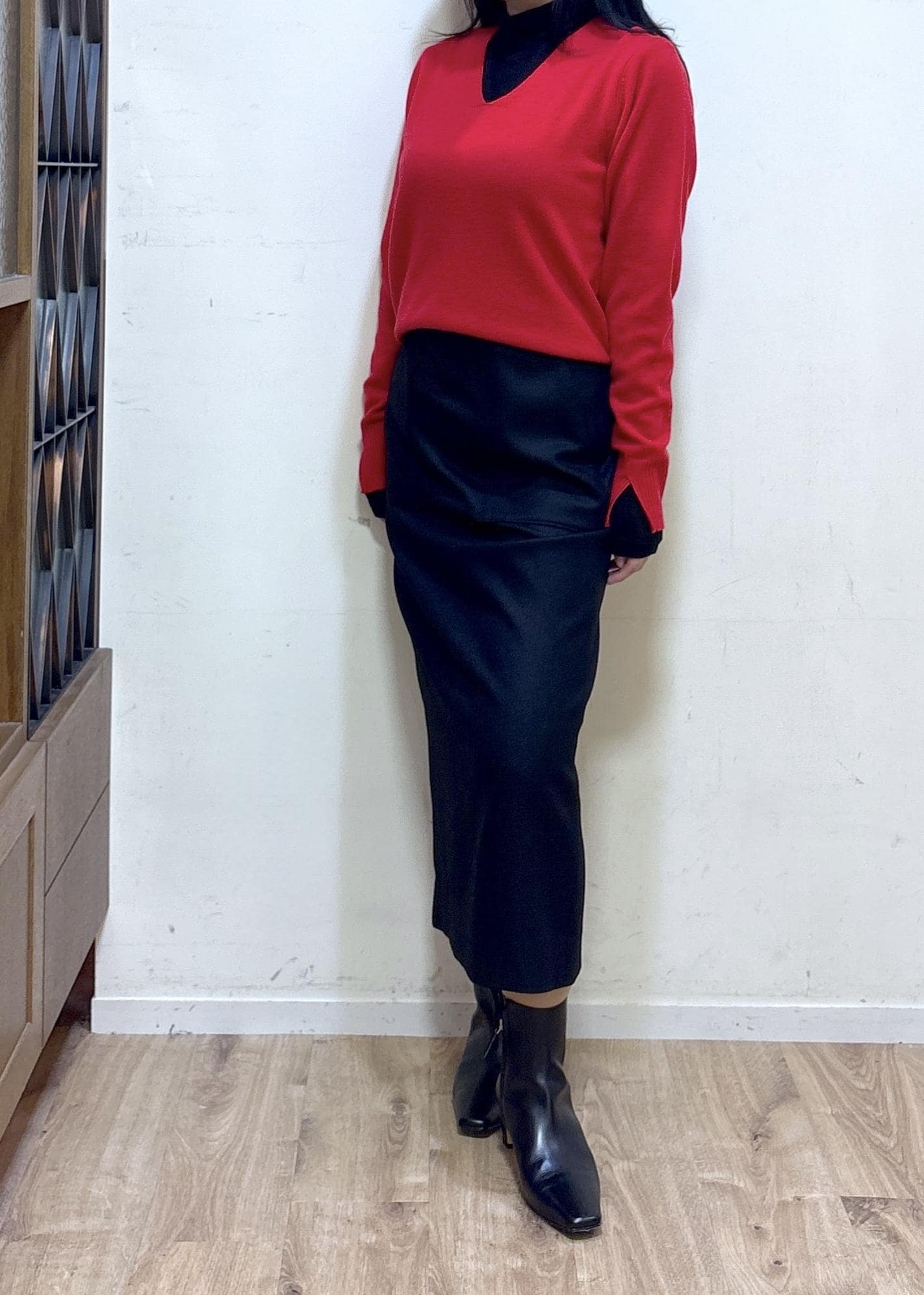 中肉で厚みがなく着膨れることがないので、薄手のタートルネックなどレイヤードスタイルを楽しめます。