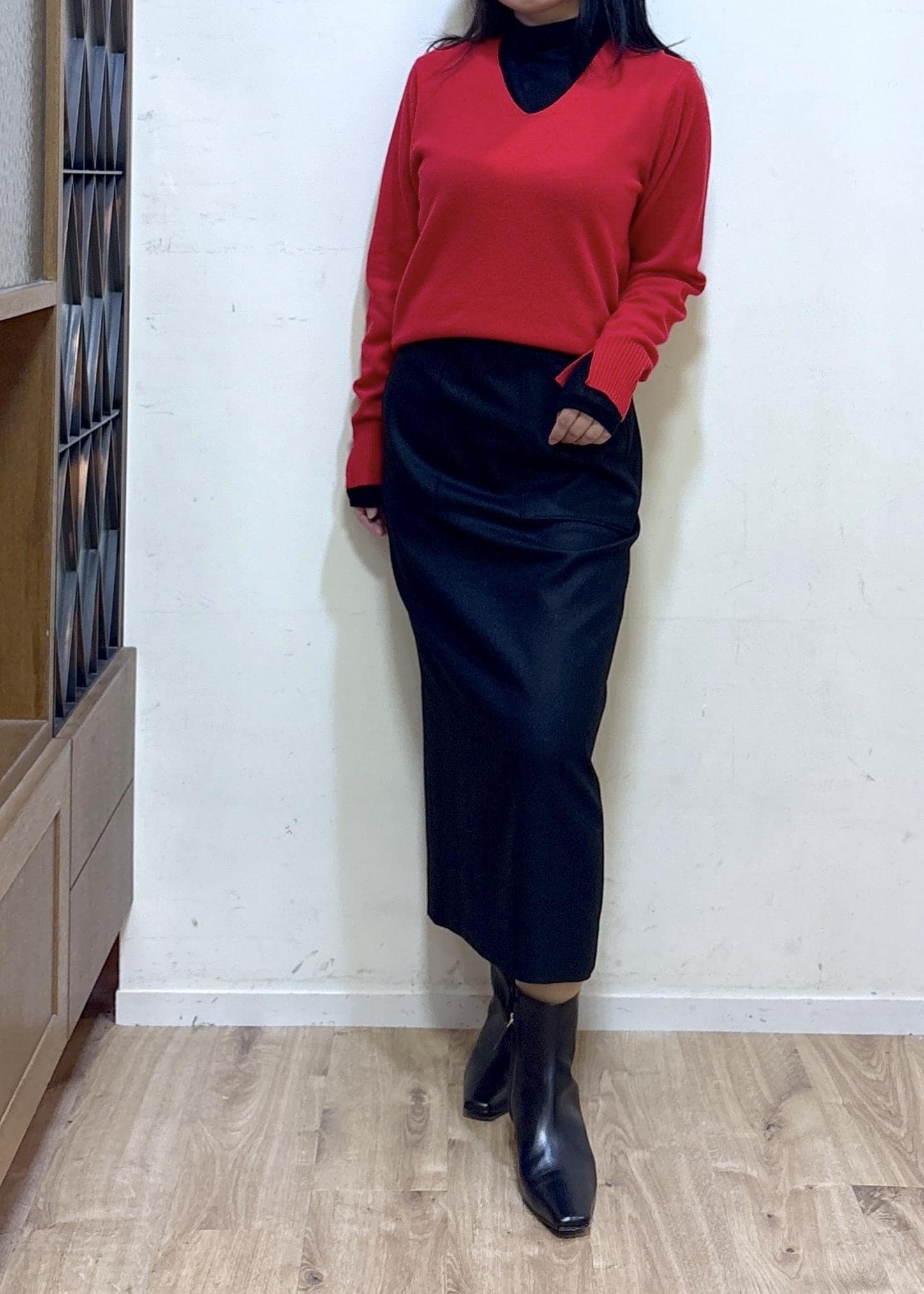 NEW!ROPÉカシミヤVネックニットプルオーバーレッド / F¥25,300レビュー身長152cm Fサイズ着用