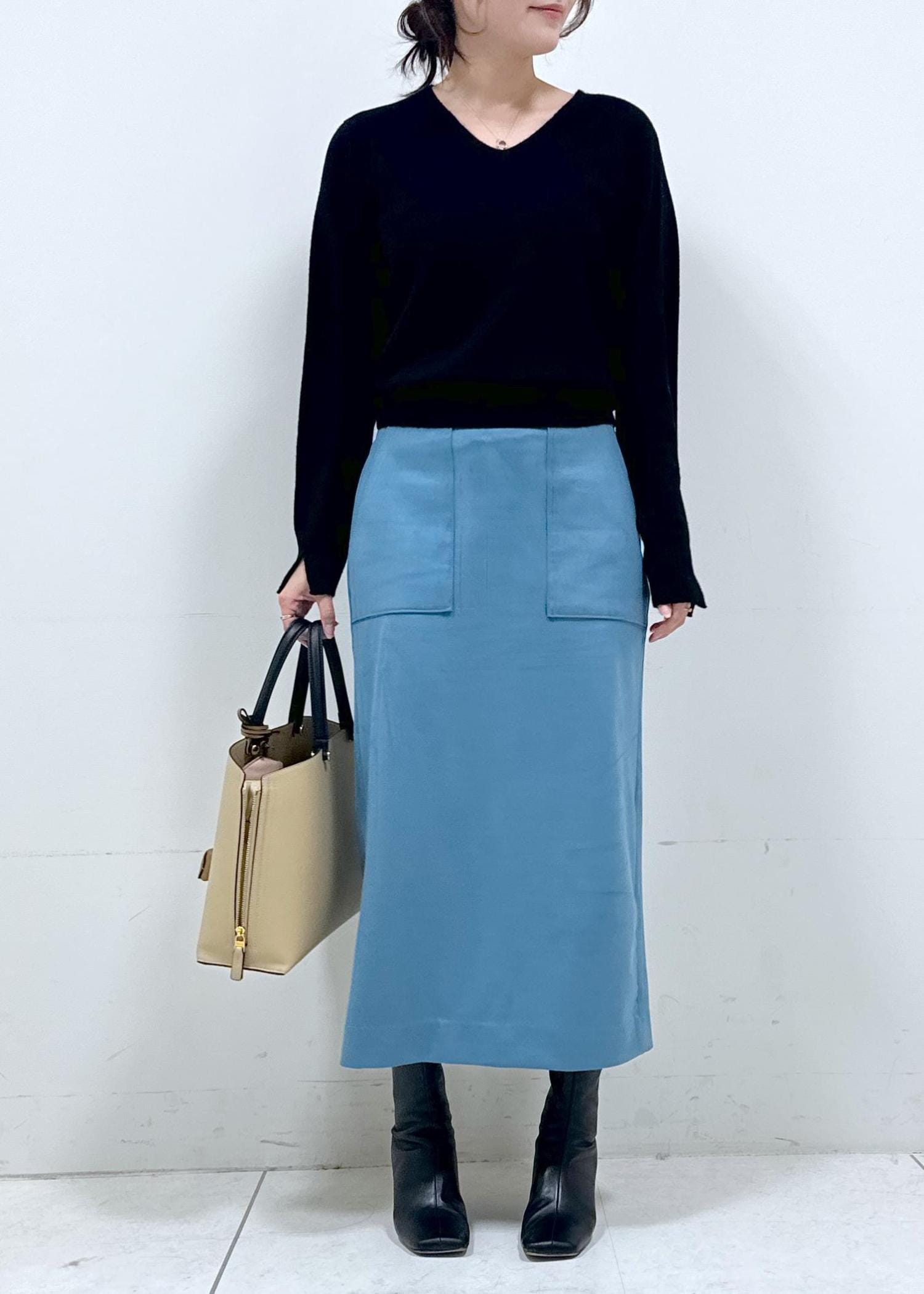 ROPÉ[美人スカート]スエードポケット付きタイトスカート/イージーケアブルー / 38¥25,300レビュー身長162cmで38サイズ着用です。