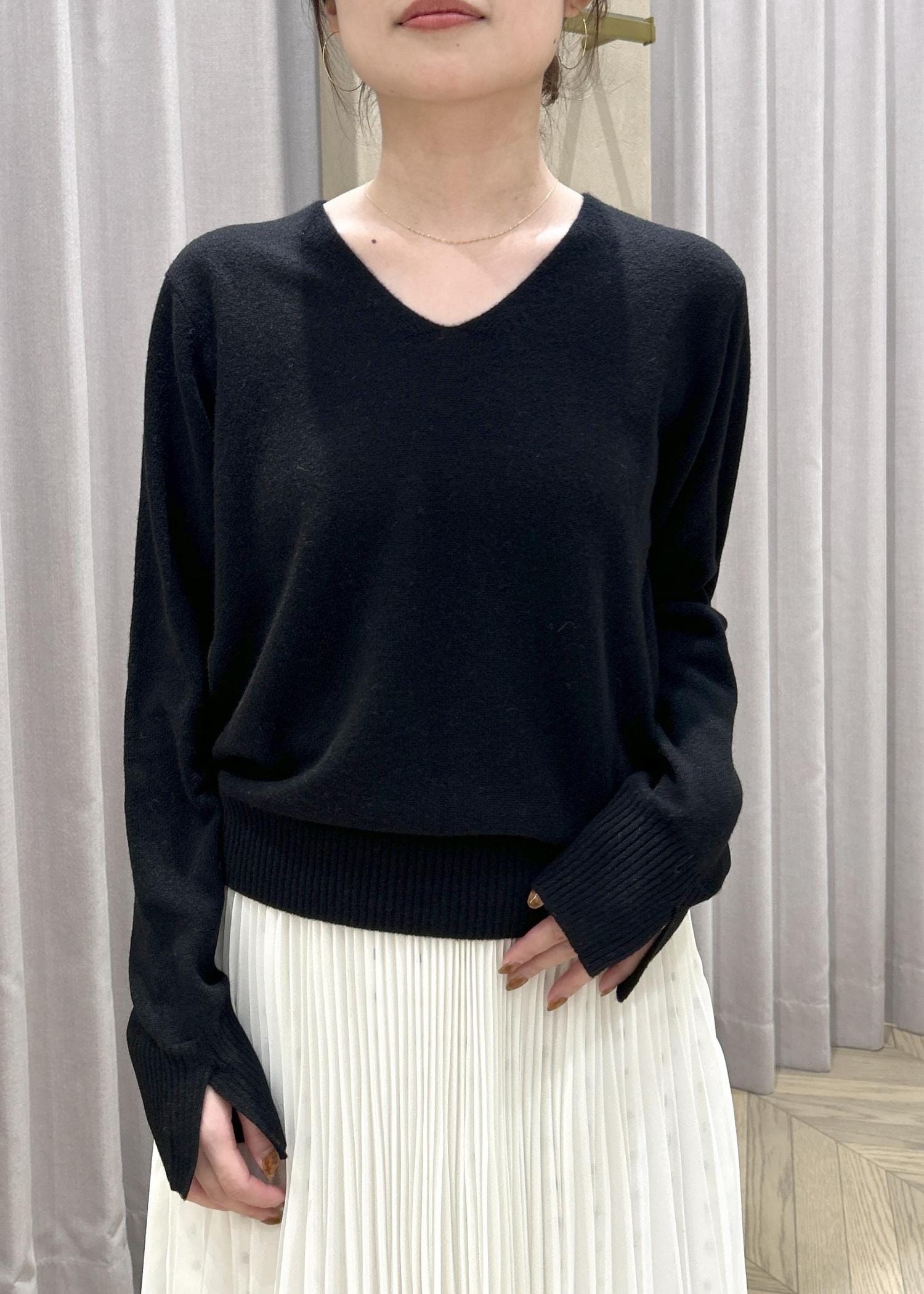NEW!ROPÉカシミヤVネックニットプルオーバーブラック / F¥25,300レビュー身長151㎝の私が着用して腰が隠れる程度の丈感です。
