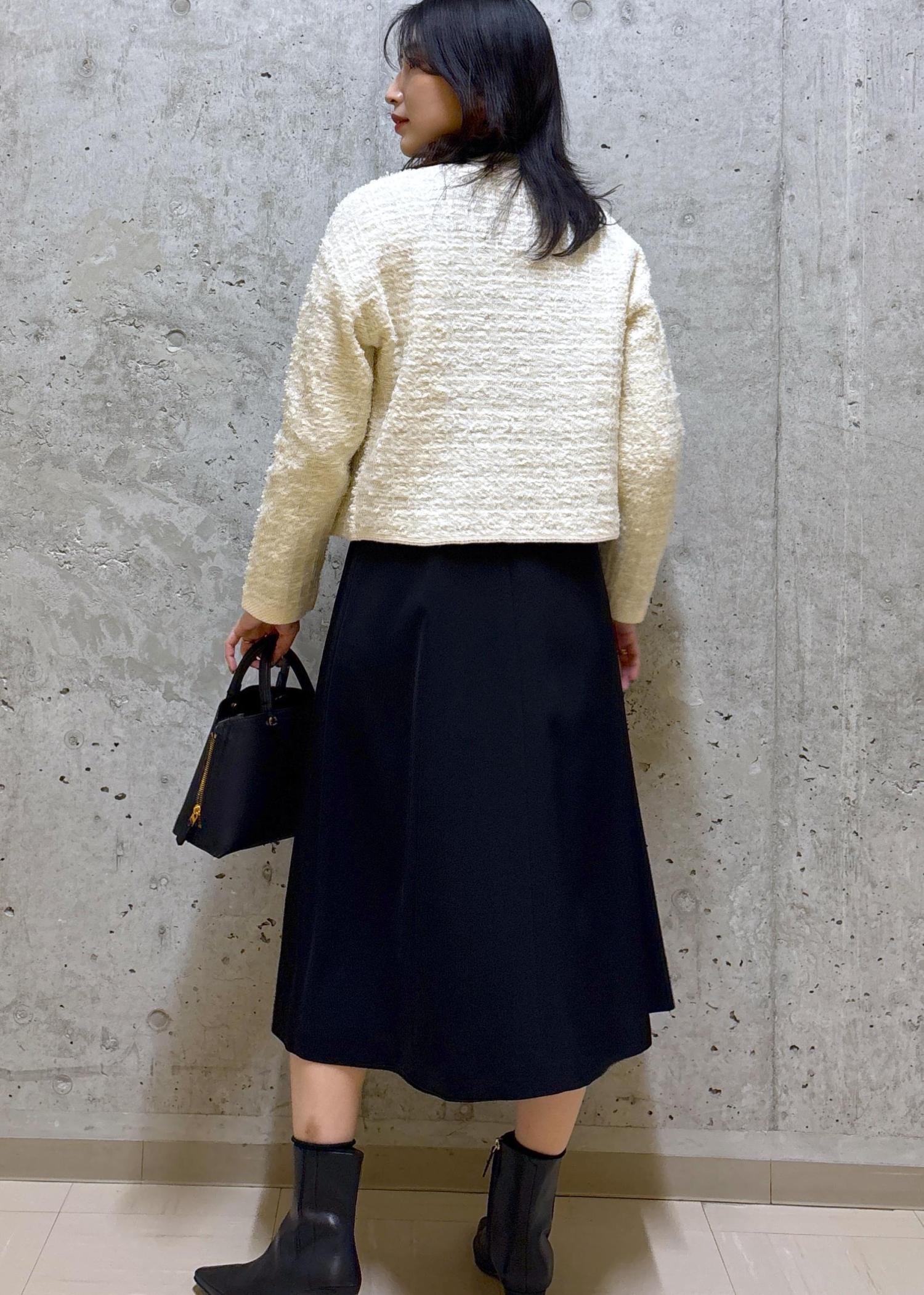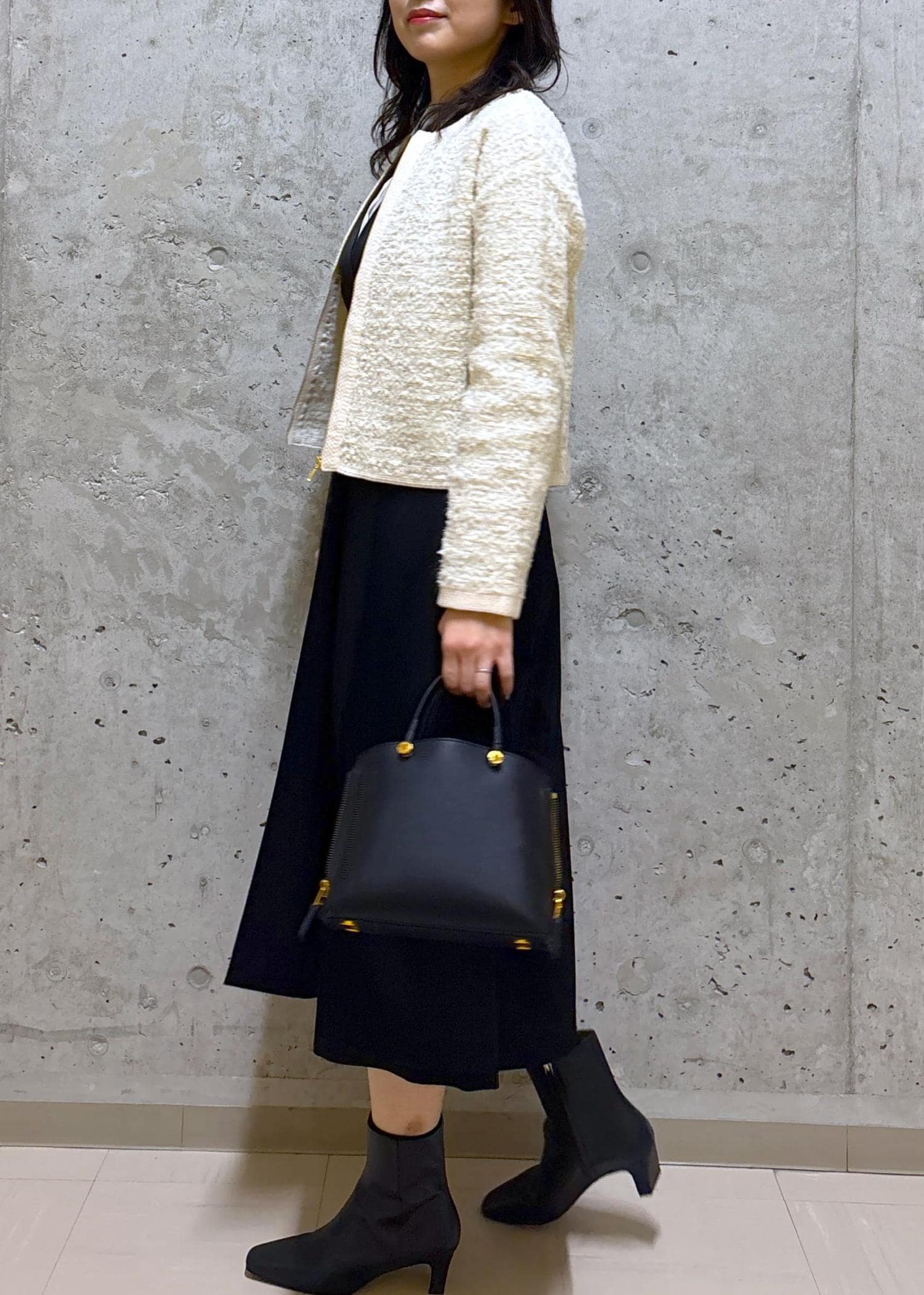 ややコンパクトな形で生地に厚みがあるので、インナーには薄手のものがスッキリ着られておすすめです。