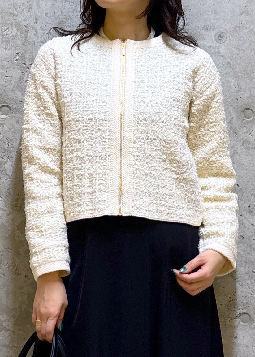 ROPÉツイードZIPノーカラーカーディガン/イージーケアキナリ / F¥25,300レビュー身長164㎝、普段38サイズ着用。