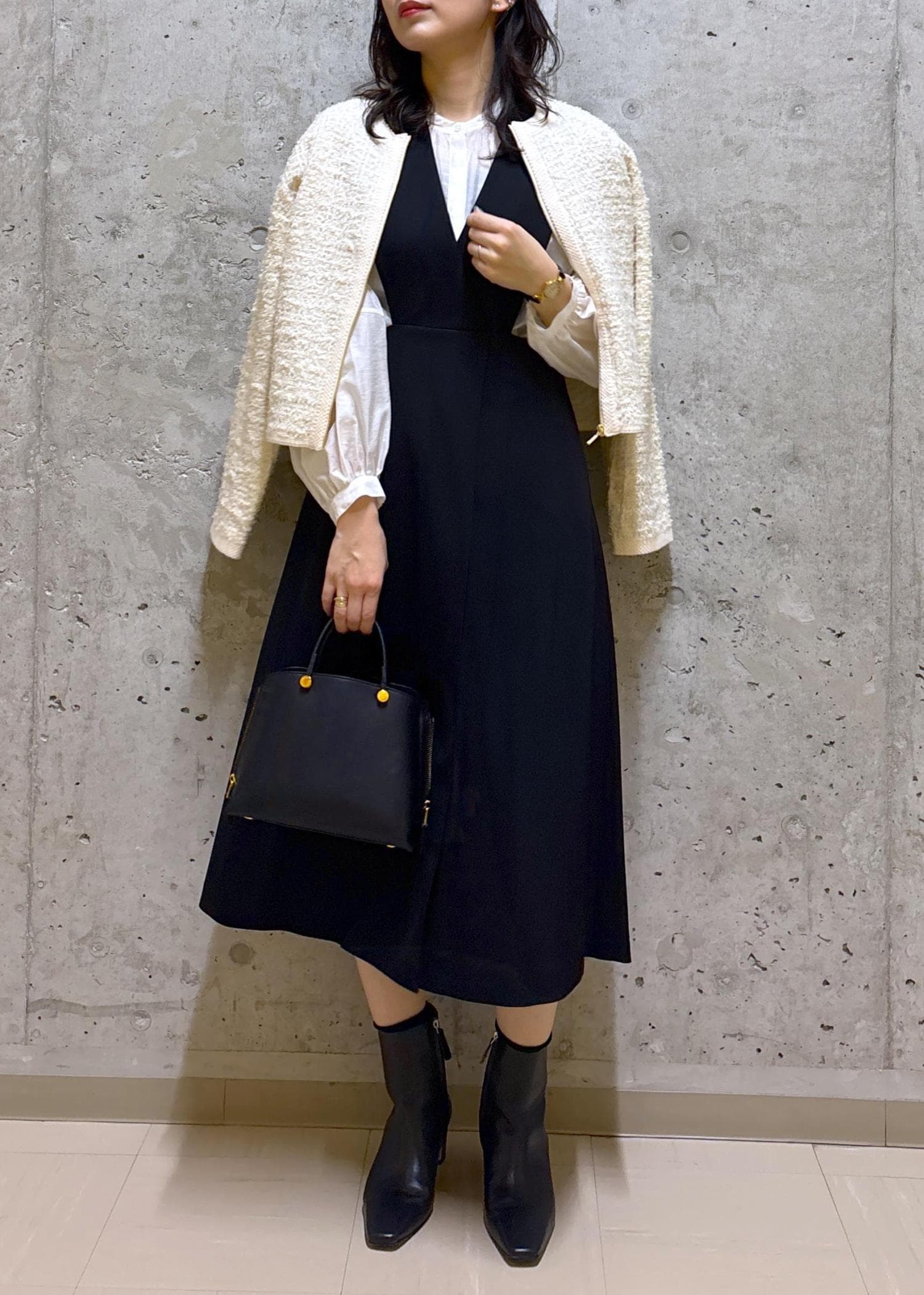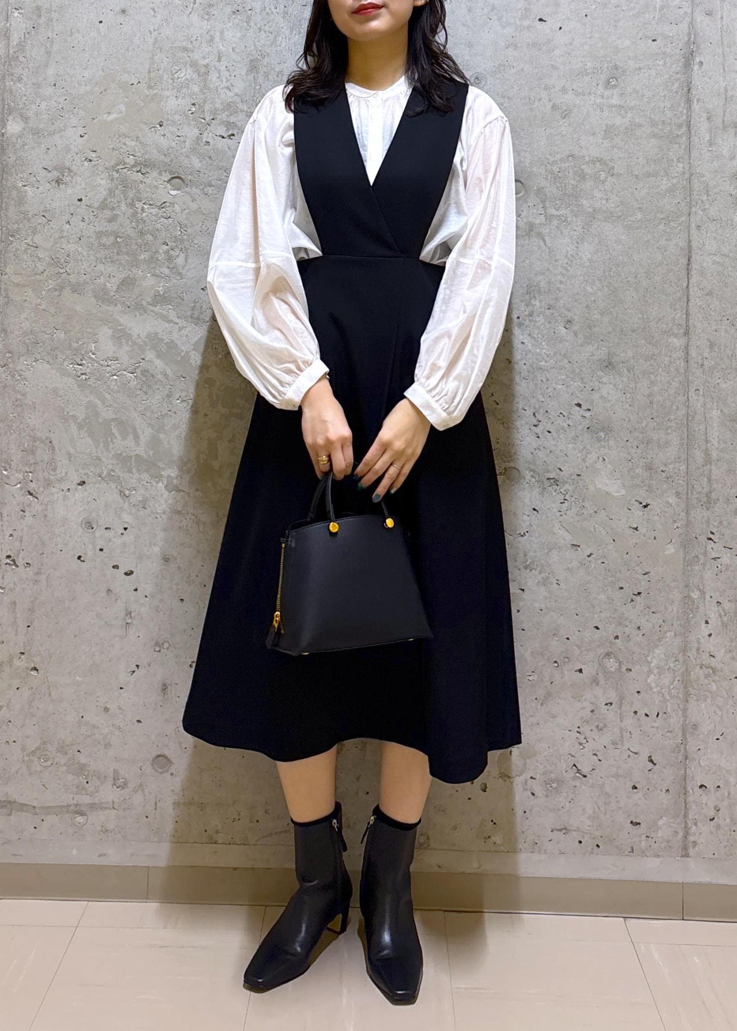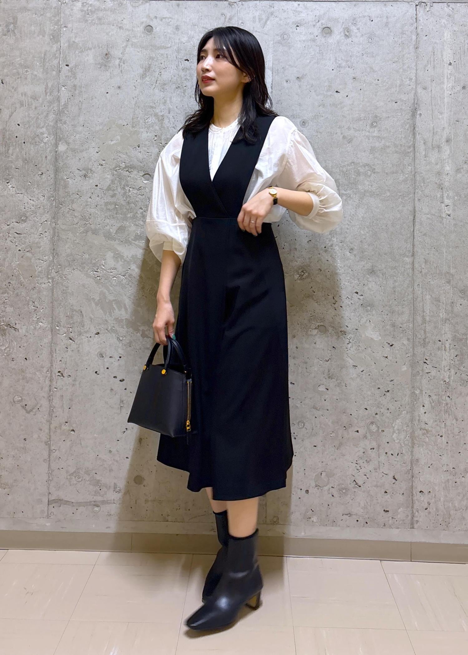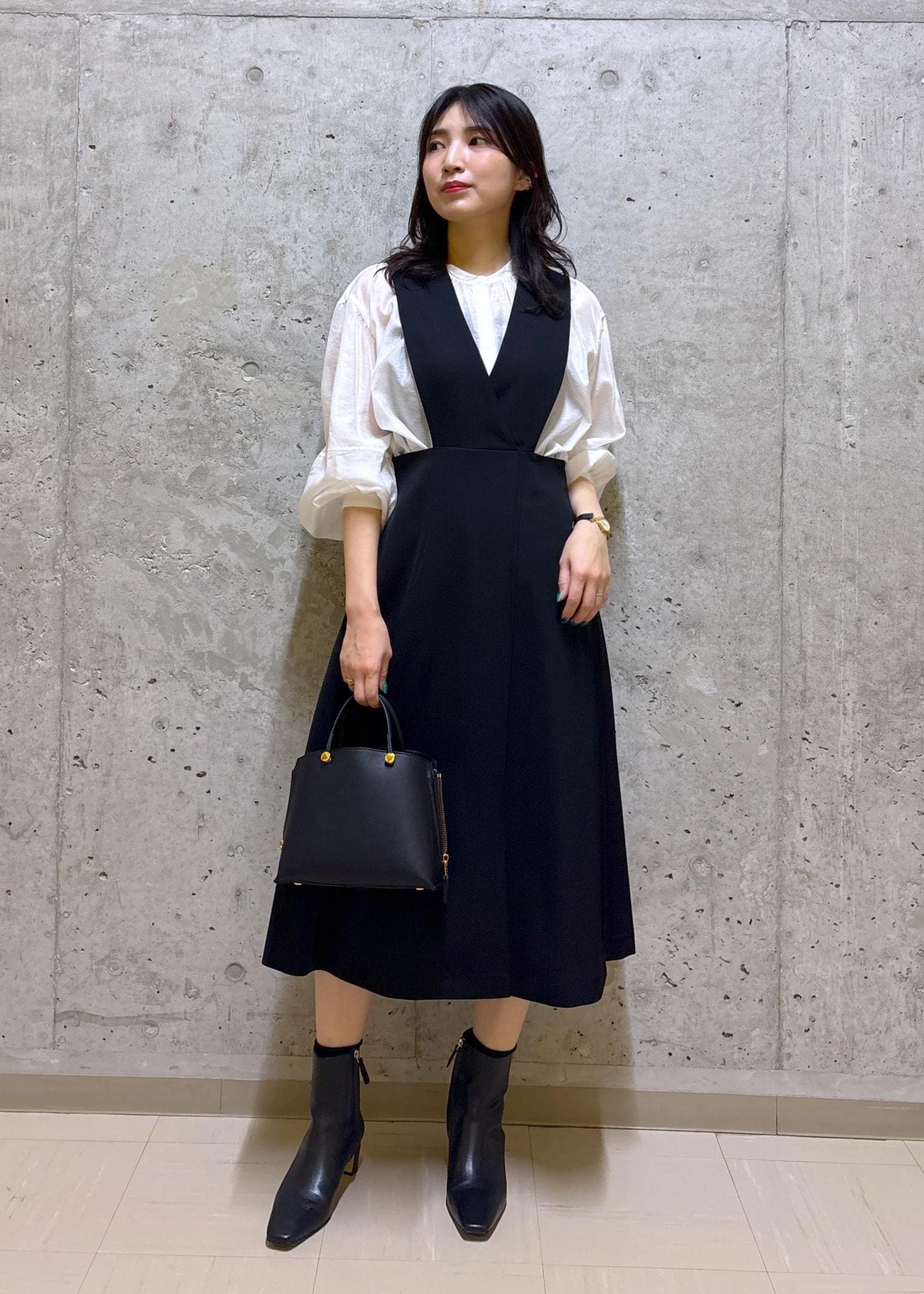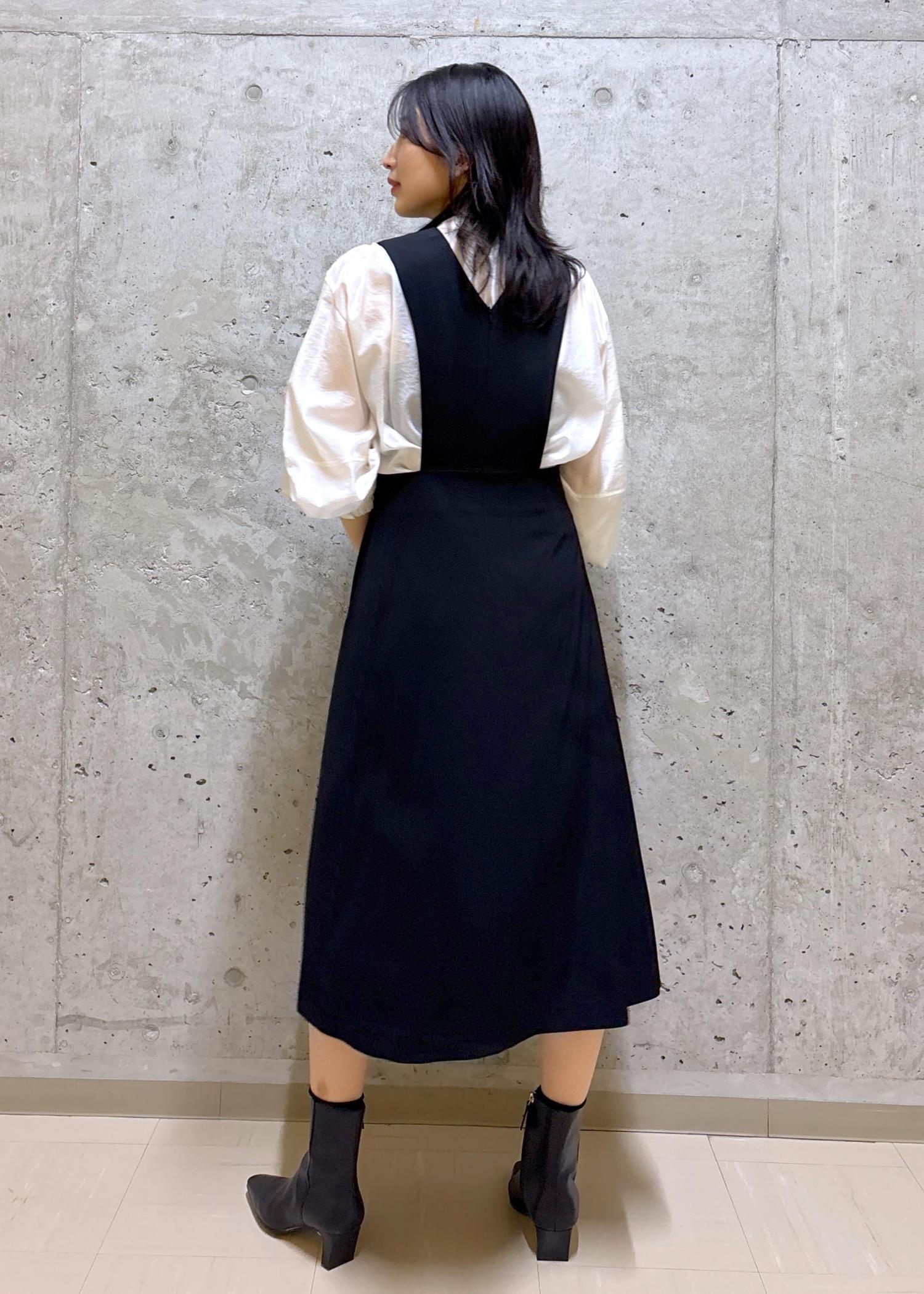 ROPÉトリアセテート ジャンパースカート/イージーケアブラック / 36¥41,800レビュー身長164㎝、普段38サイズ着用。