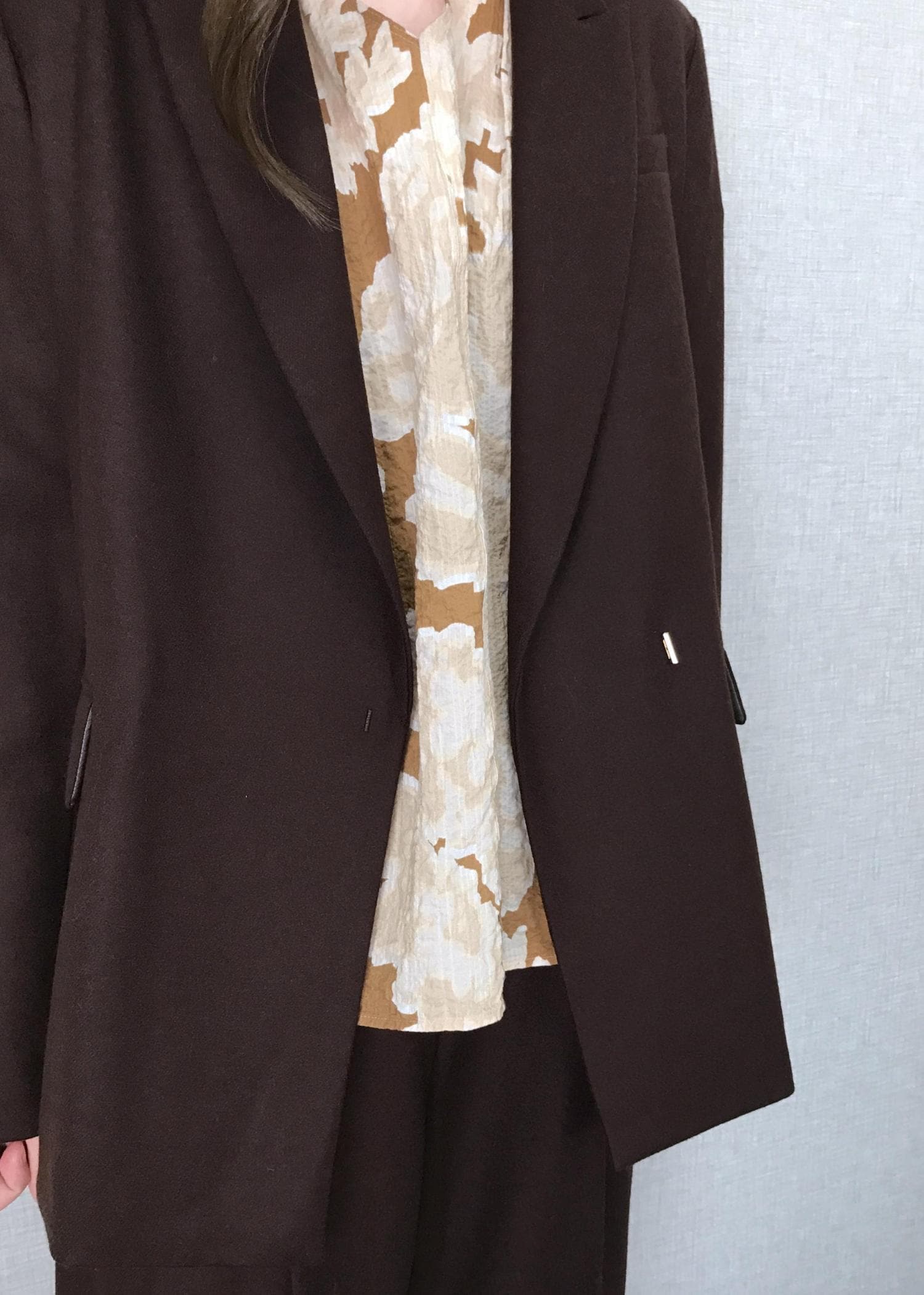 ROPÉウールフランネルセミダブルジャケット/セットアップ対応ダークブラウン / 36¥44,000レビュー軽くて柔らかい生地で着用はストレス感少なくお召しいただけます。ウエストも程よくシェイプしてありスタイリッシュな着こなしになります。