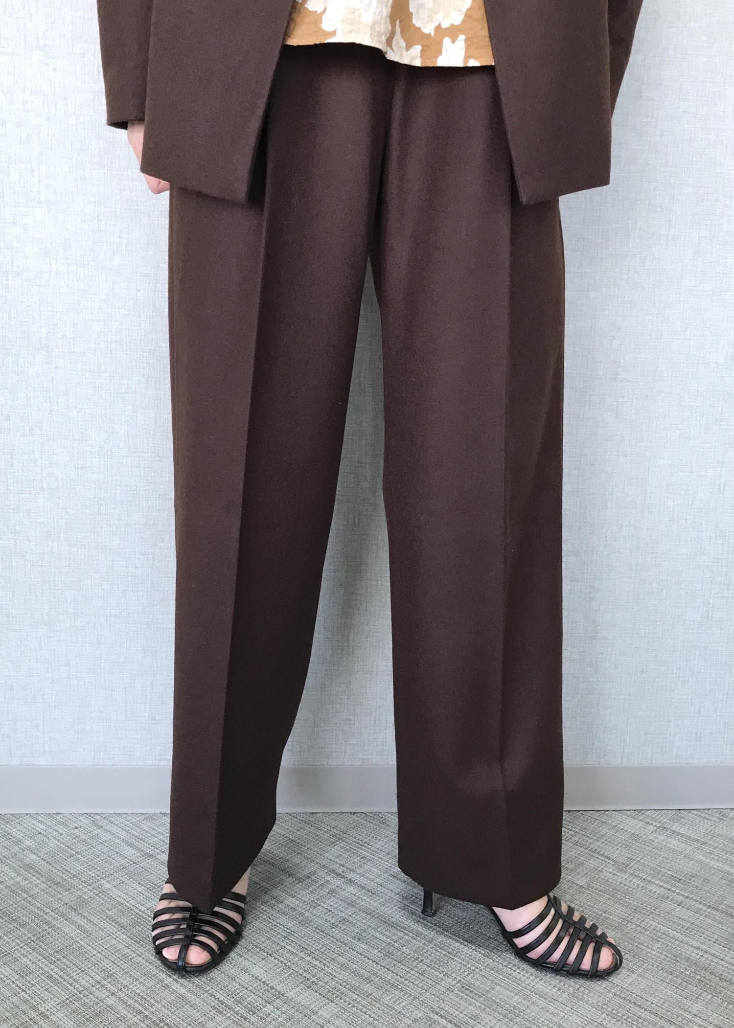 ROPÉウールフランネルタックイージーパンツ/イージーケア・セットアップ対応ダークブラウン / 36¥25,300レビューストレートタイプのエレガントさの出るラインでセットアップ合わせはもちろん単品使いもトップスのバリエーション豊富に合わせがしやすいです。