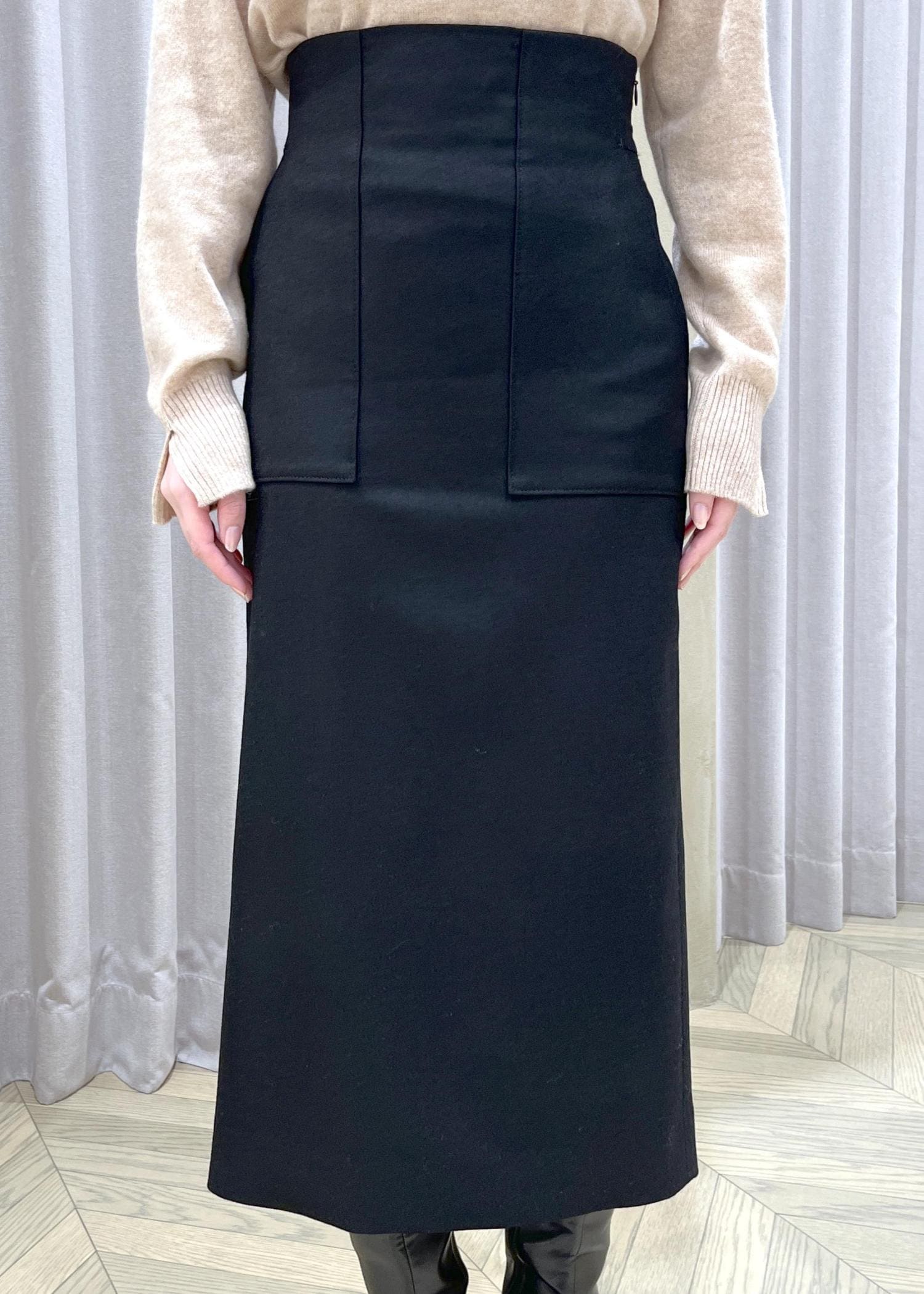 ROPÉ[美人スカート]ウールレーヨンポケット付きタイトスカート(無地)/イージーケア・セットアップ対応ブラック / 36¥25,300レビュー【着丈】