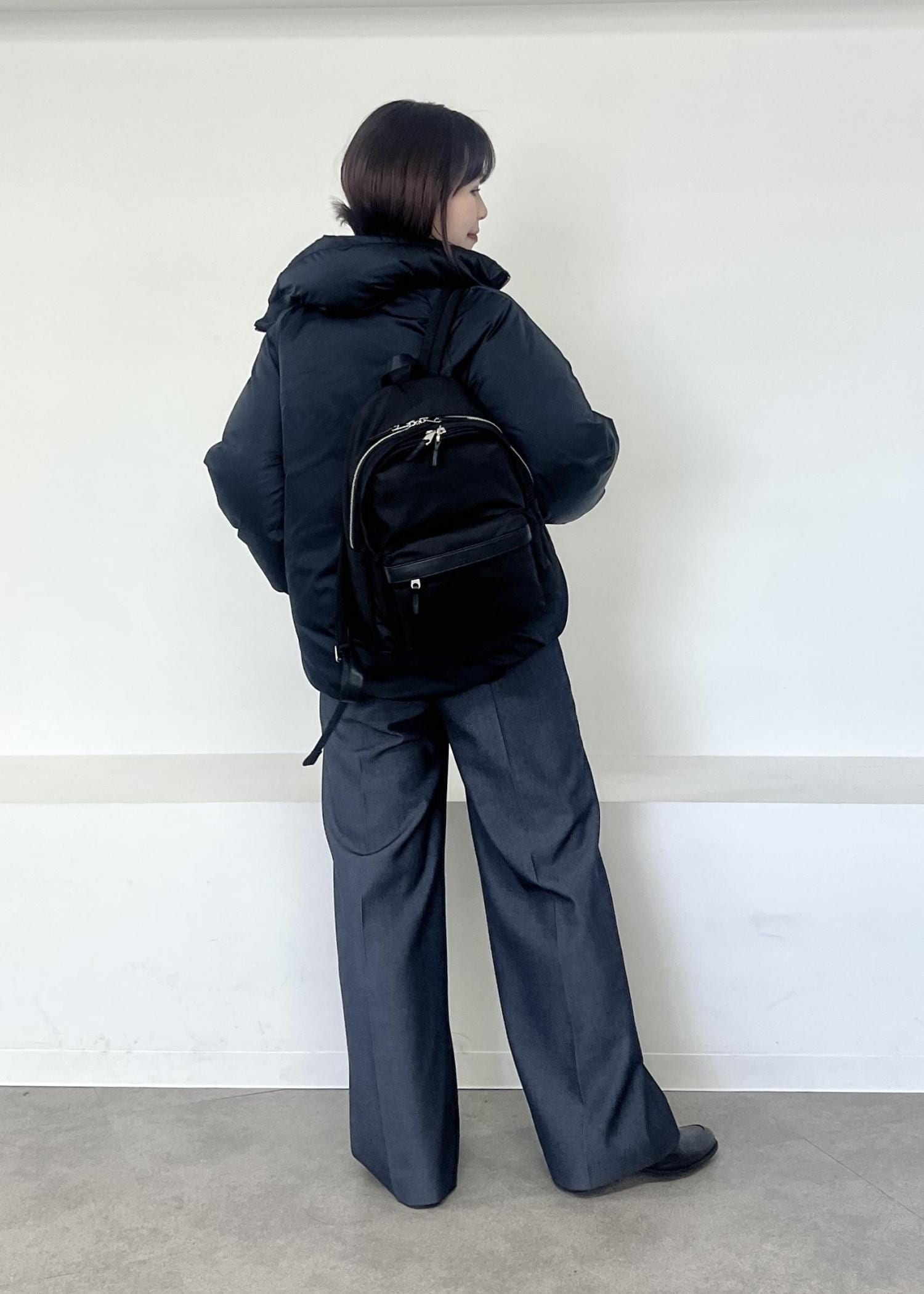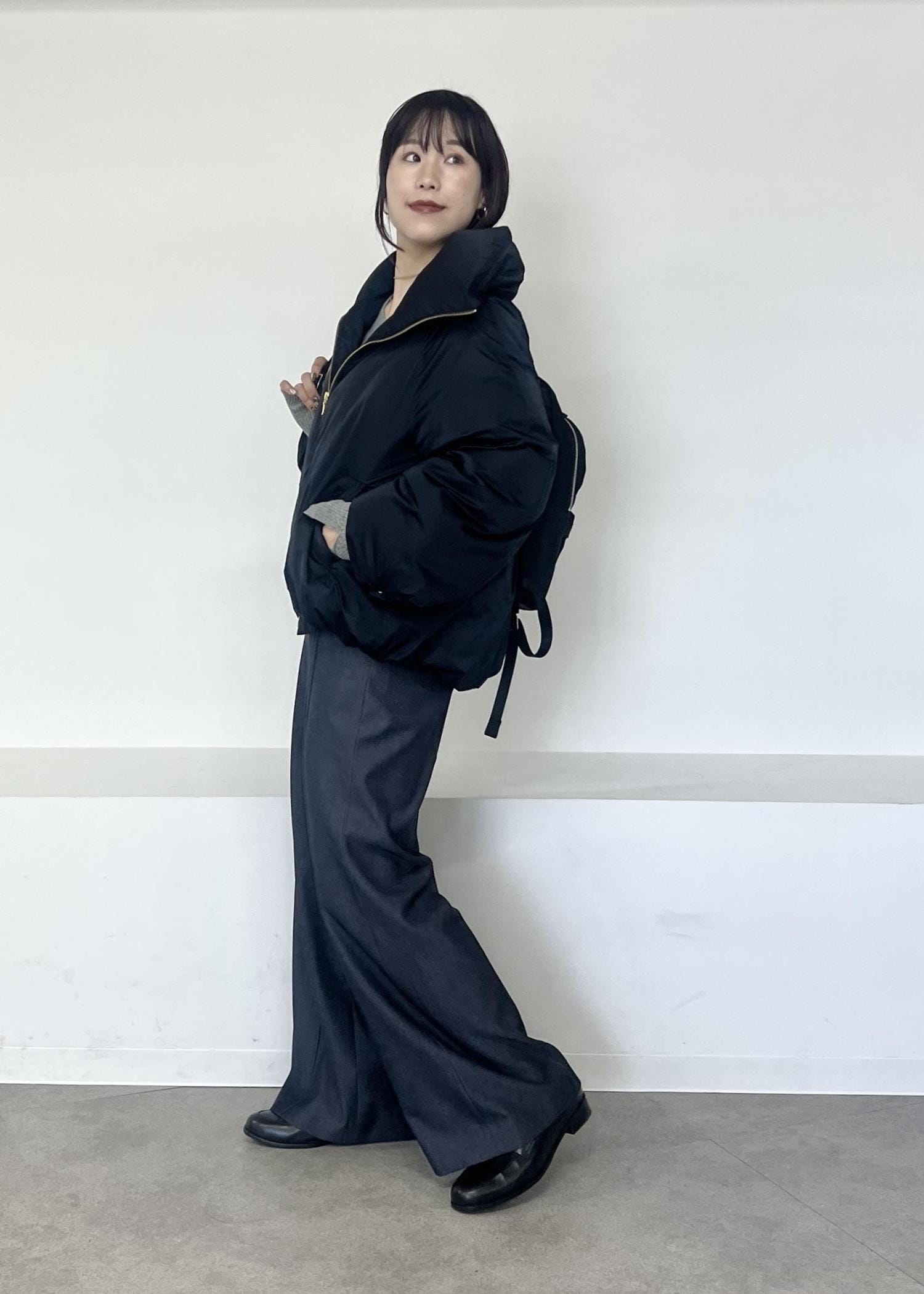 身幅はゆとりはありますが、袖幅はコンパクトなので大きすぎずに着られます♪