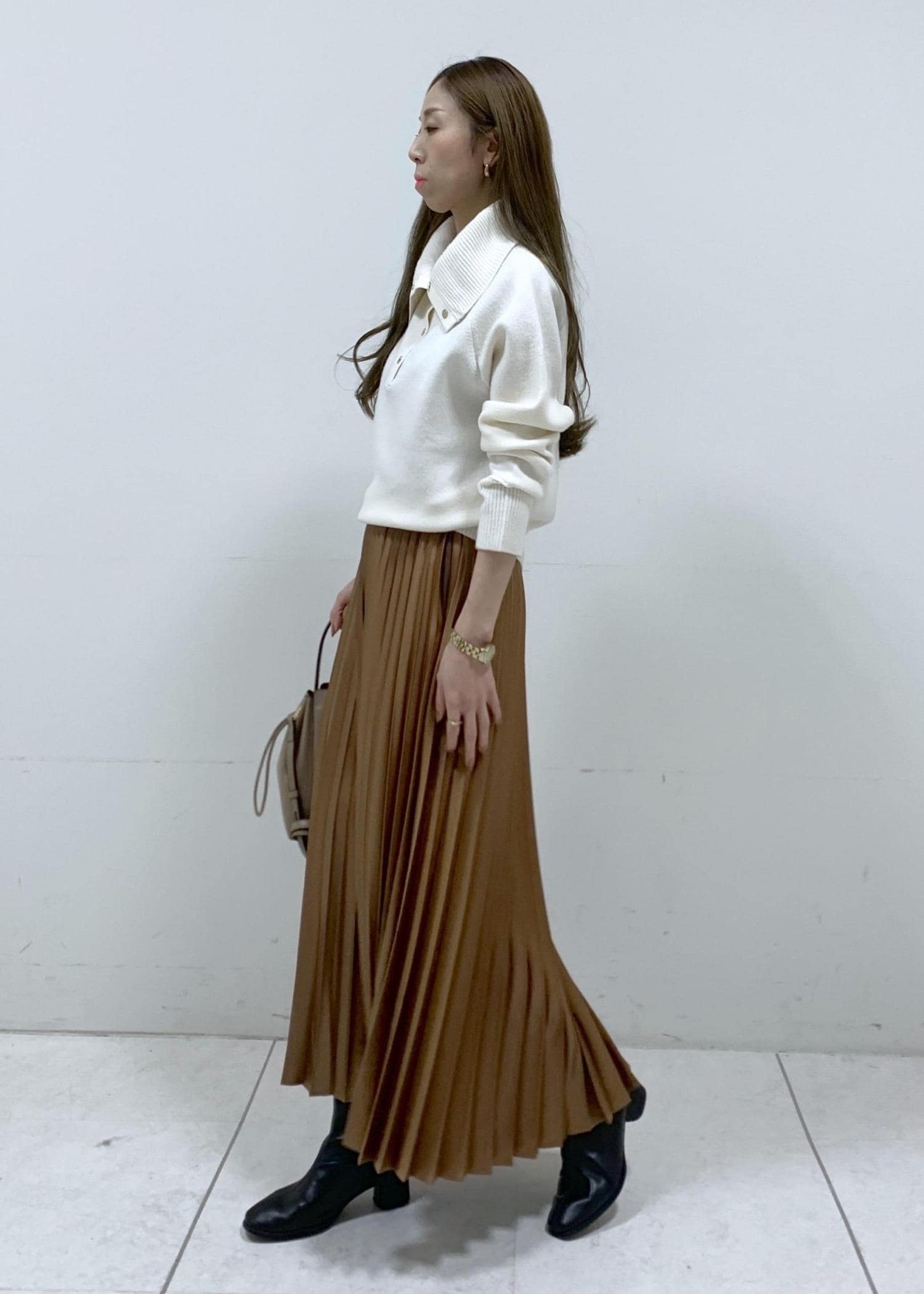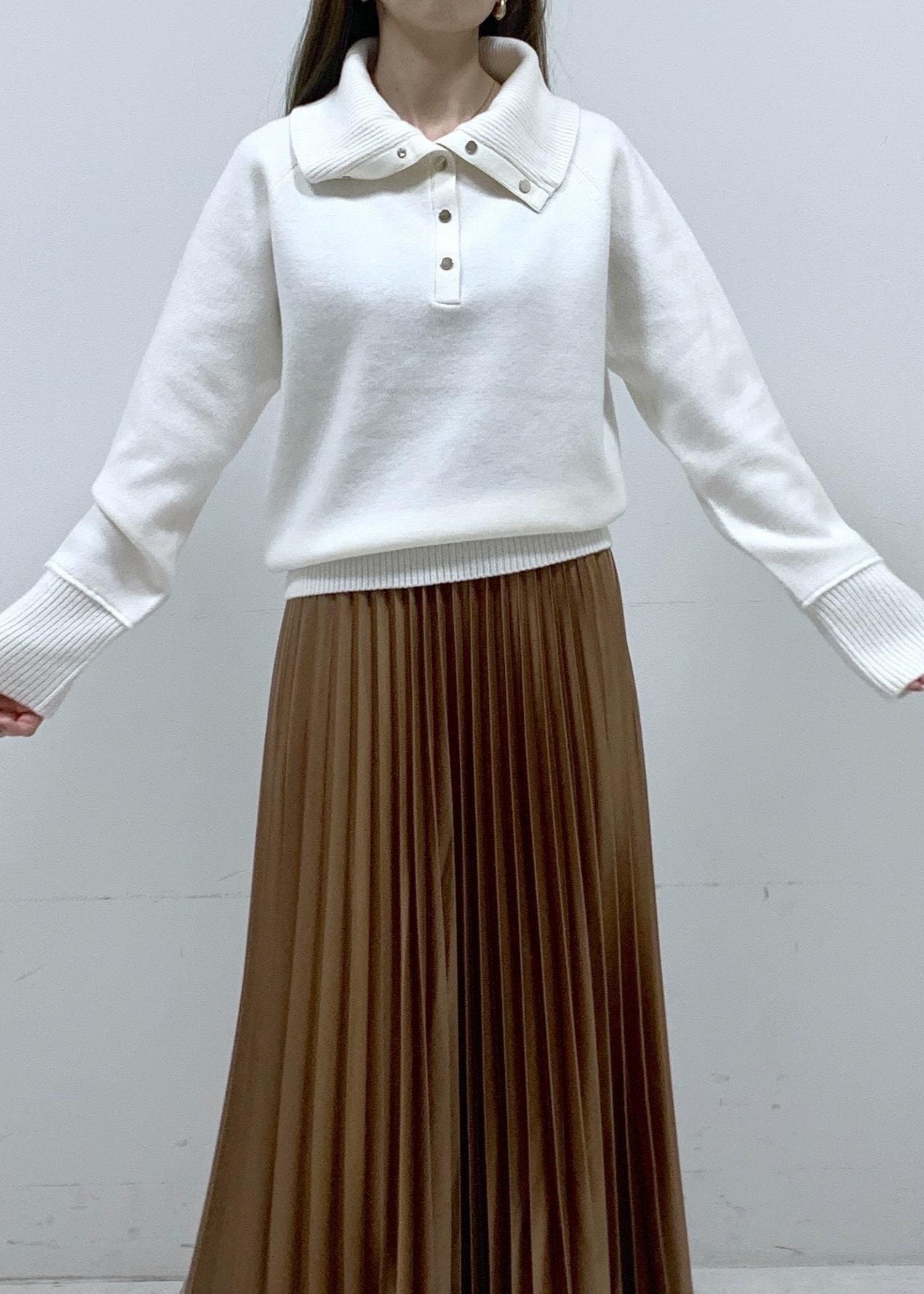 今年らしいデザインの大きめなポロ襟が顔周りを華やかに見せてくれます。