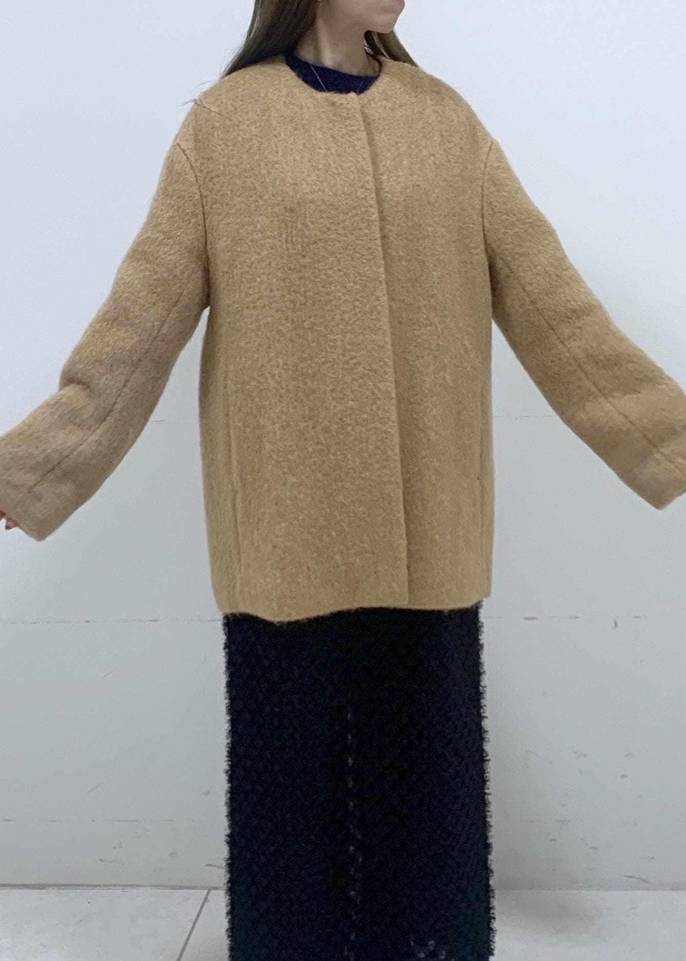 毛足が長く、モヘアのフワフワした素材感が高見えするコート。