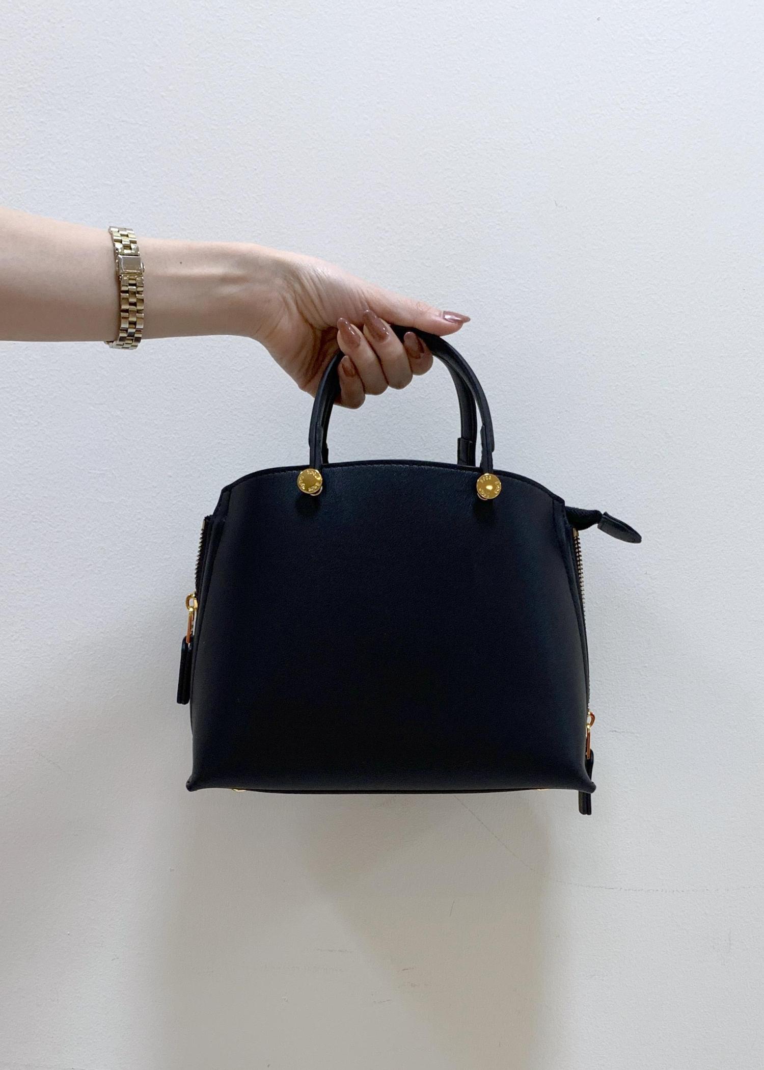 マットな質感のフェイクレザーで高見えしますし、ショルダー付きで斜め掛けも出来ます。