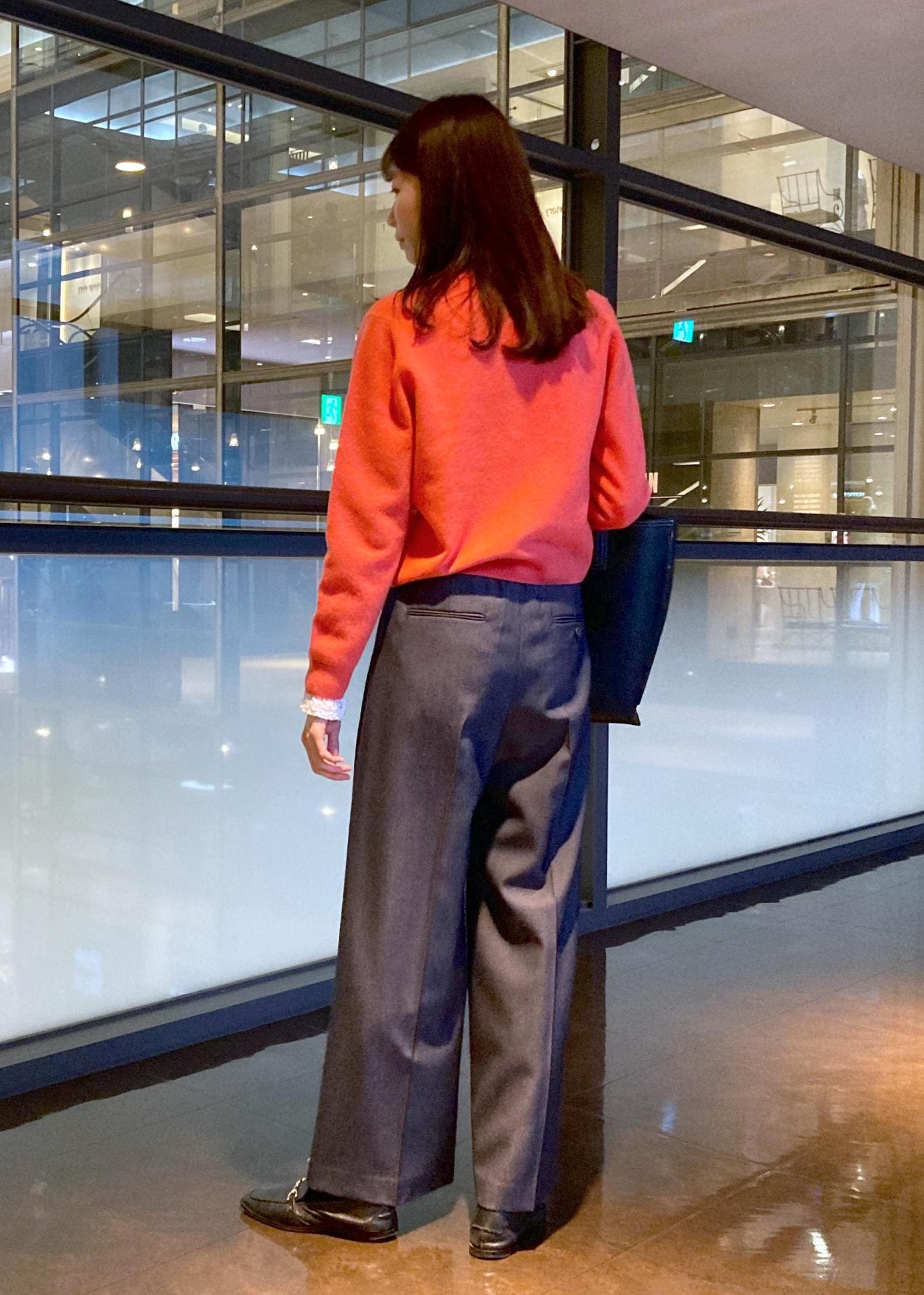 後ろのみゴム仕様なので着用しやすく、上品で控え目な光沢感と適度なハリ感があるしっかりとした履き心地でお召しいただけます。 -