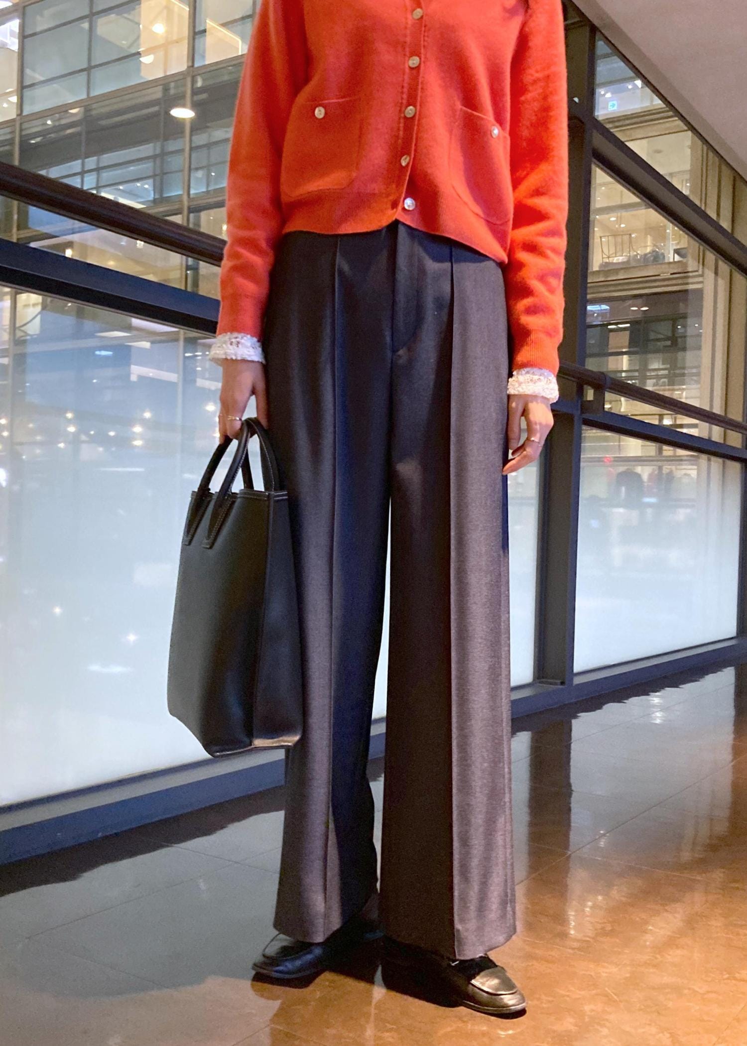 ROPÉ梳毛ギャバ プリーテッド ワイドパンツネイビー / 38¥29,700レビューややハイウエストデザインで腰回りがすっきりとしたシルエットのワイドパンツです。