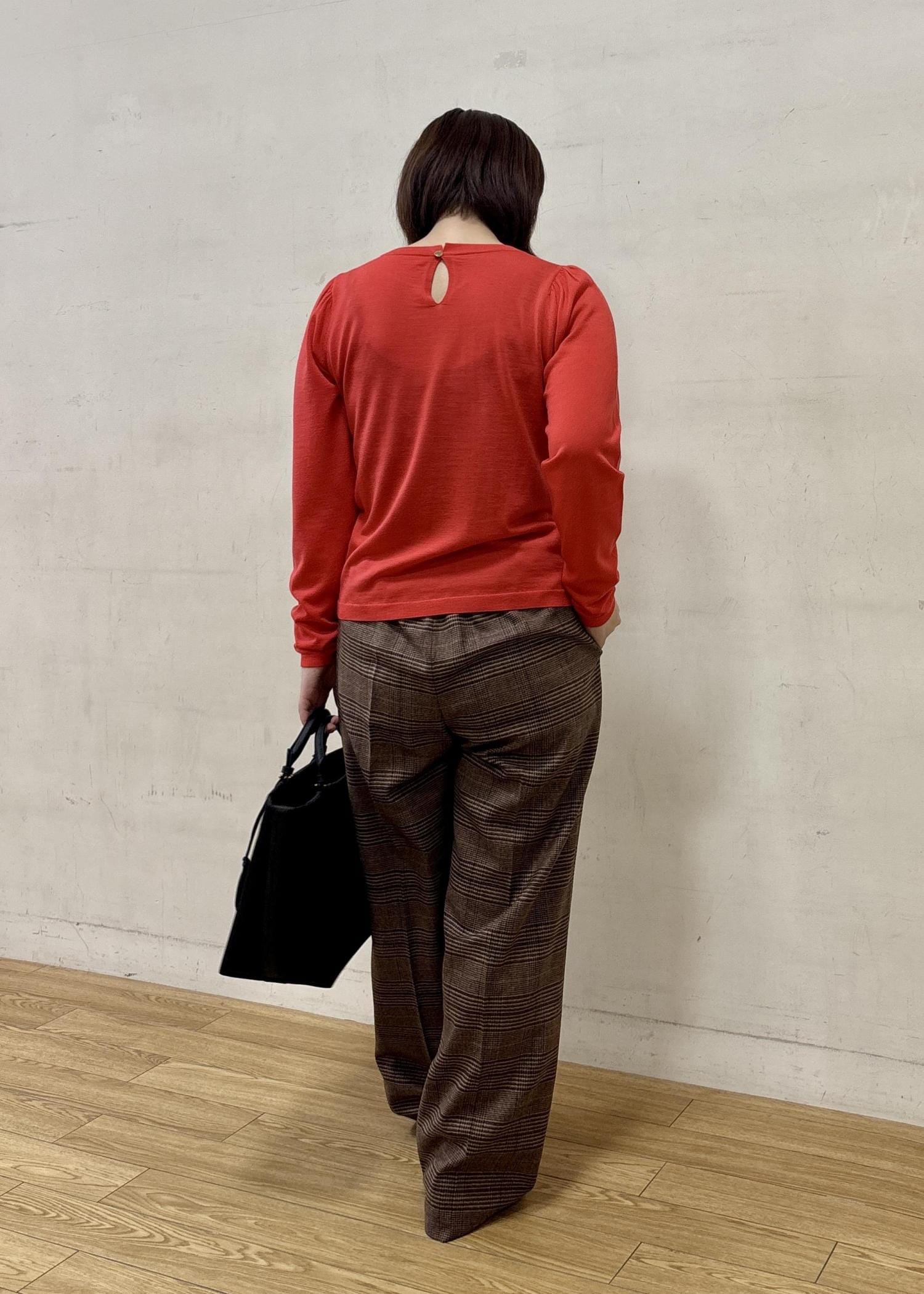 ROPÉ袖ギャザークルーネックニットプルオーバー/イージーケアレッド / F¥19,800レビュー着用して窮屈さは感じませんでした。