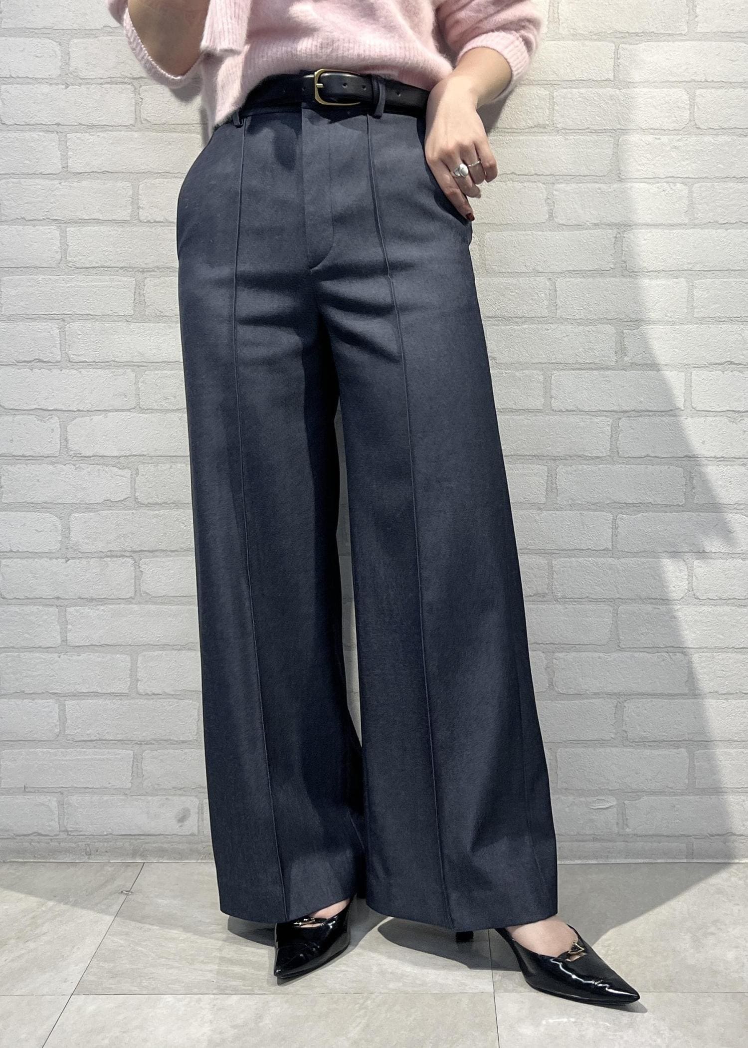 ROPÉ梳毛ギャバ プリーテッド ワイドパンツネイビー / 36¥29,700レビュー着丈はそのままだと地面に付かないくらいで、ヒール無しでも履けました◎