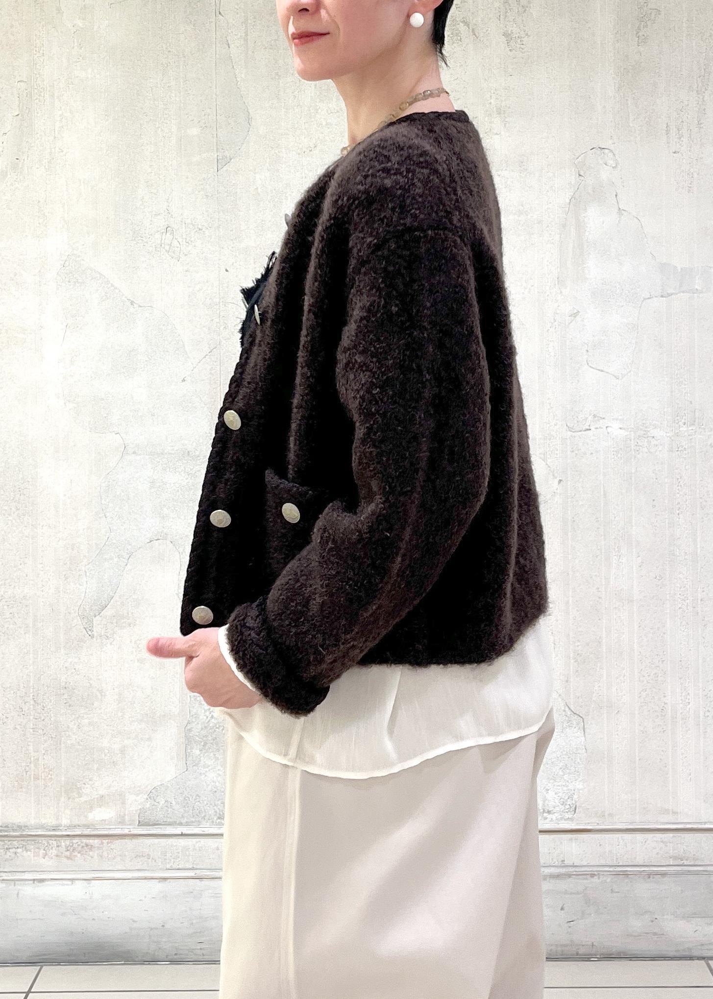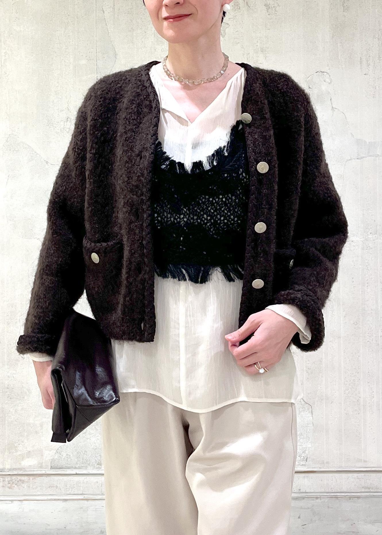 SALON adam et ropéプードルニットクルーネックカーディガンダークブラウン / F¥20,900レビュー弾力のあるプードルカール素材で、ふんわりした風合いが可愛いニット。