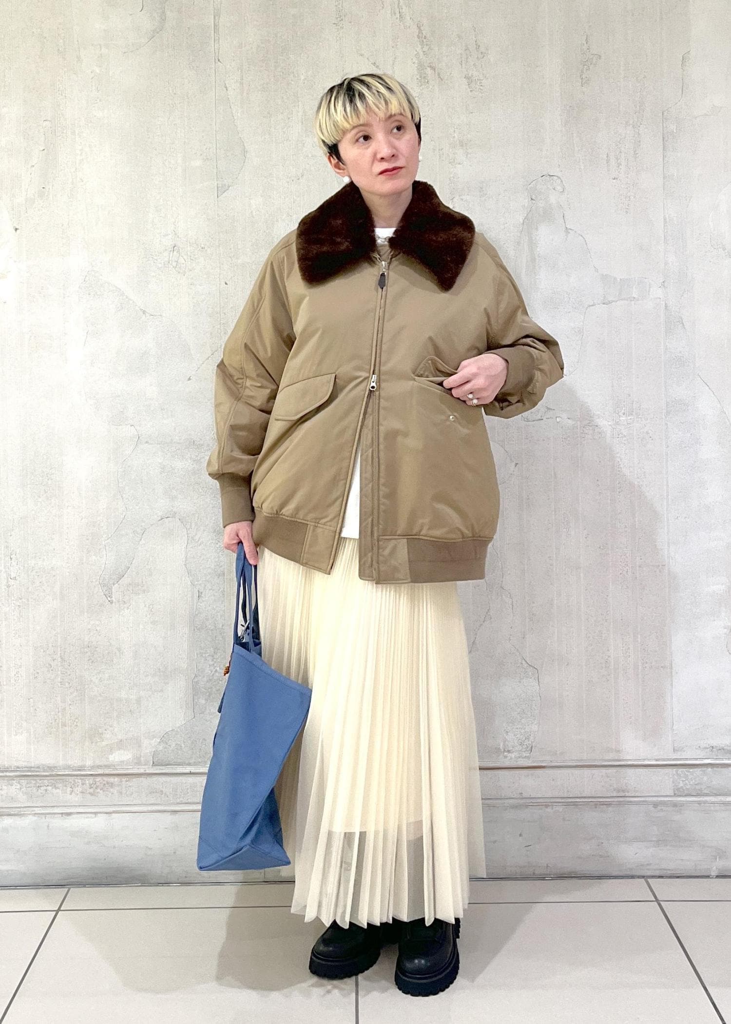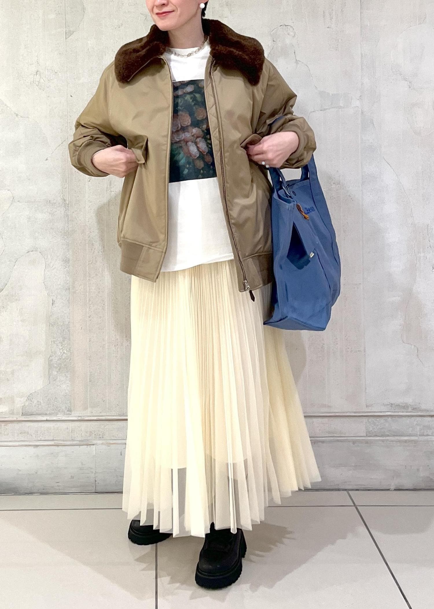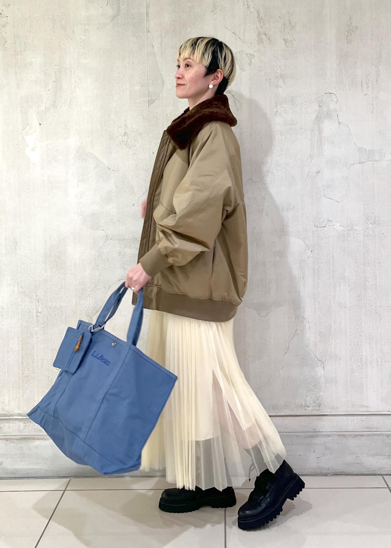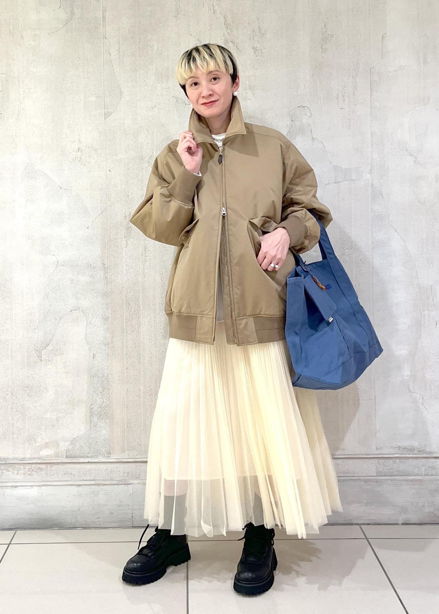 厚すぎない絶妙な布地なので、デニムやロングスカートに合わせてウエストインするのもオススメ。 -
