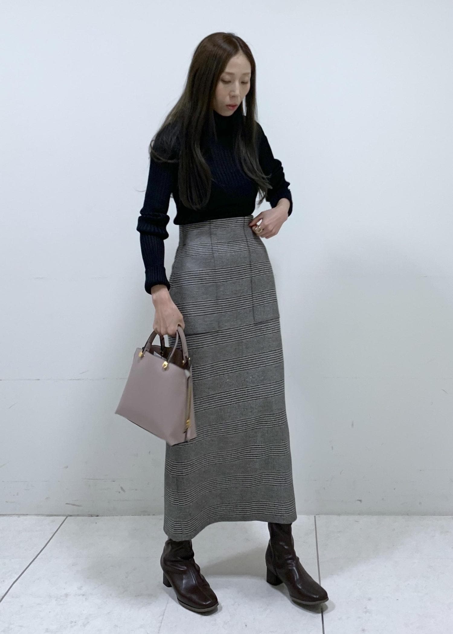 小柄な方でもスッキリしたシルエットで、バランス良く着て頂ける万能スカートです。 -
