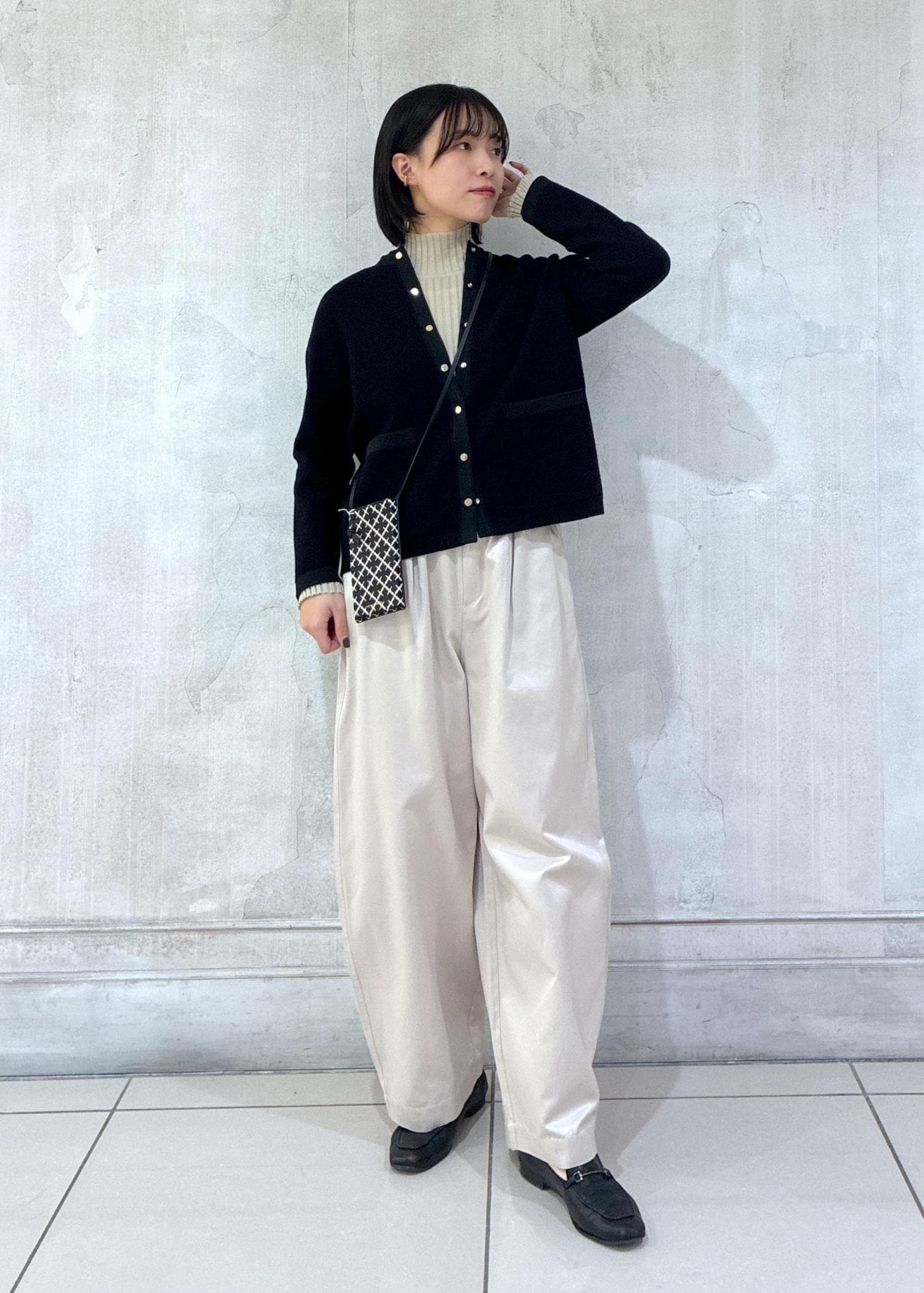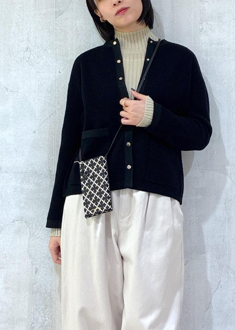 ROPÉ接結ウールバイカラーニットカーディガン/イージーケアブラック / F¥30,800レビュースムース調のもちっとした触り心地のカーディガンブルゾンです。