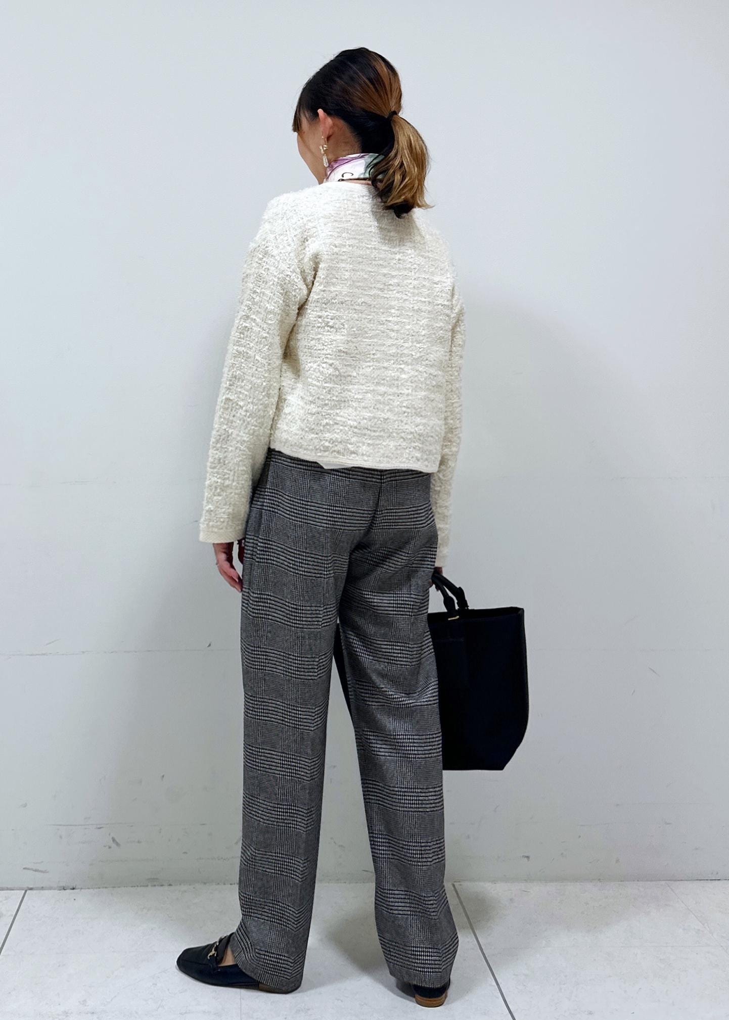 ROPÉツイードZIPノーカラーカーディガン/イージーケアキナリ / F¥25,300レビュー裏地等は無く、ニットの伸縮性が動きやすさを叶えてくれたカーディガンです。