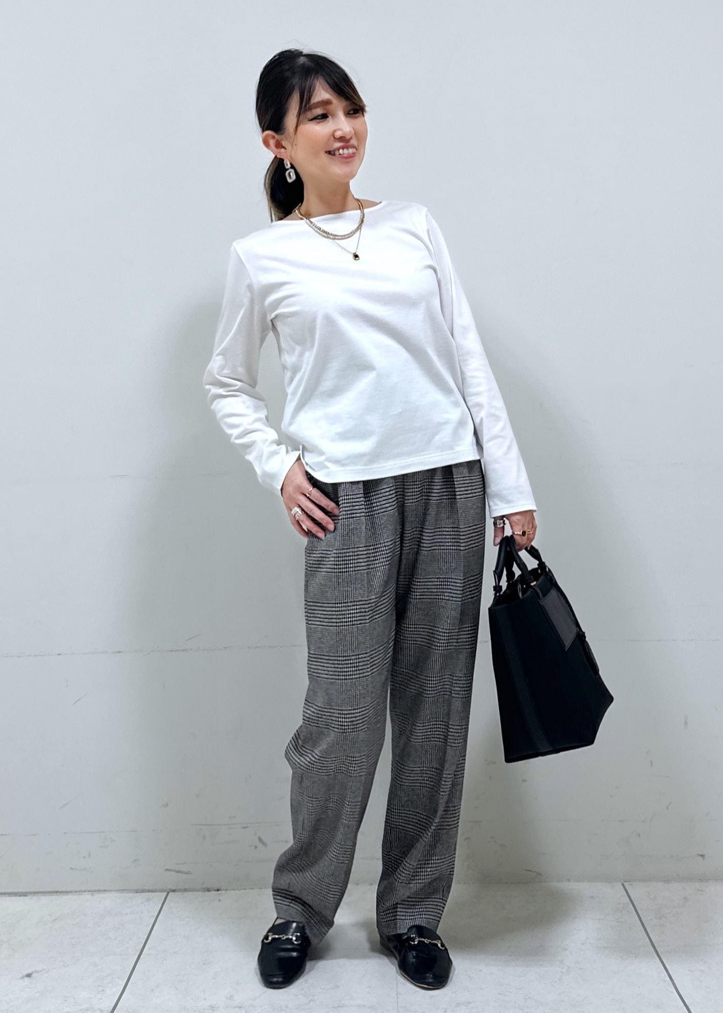 ボトムでモノトーンを合わせ、全体的にスッキリした印象になる様、まとめました!