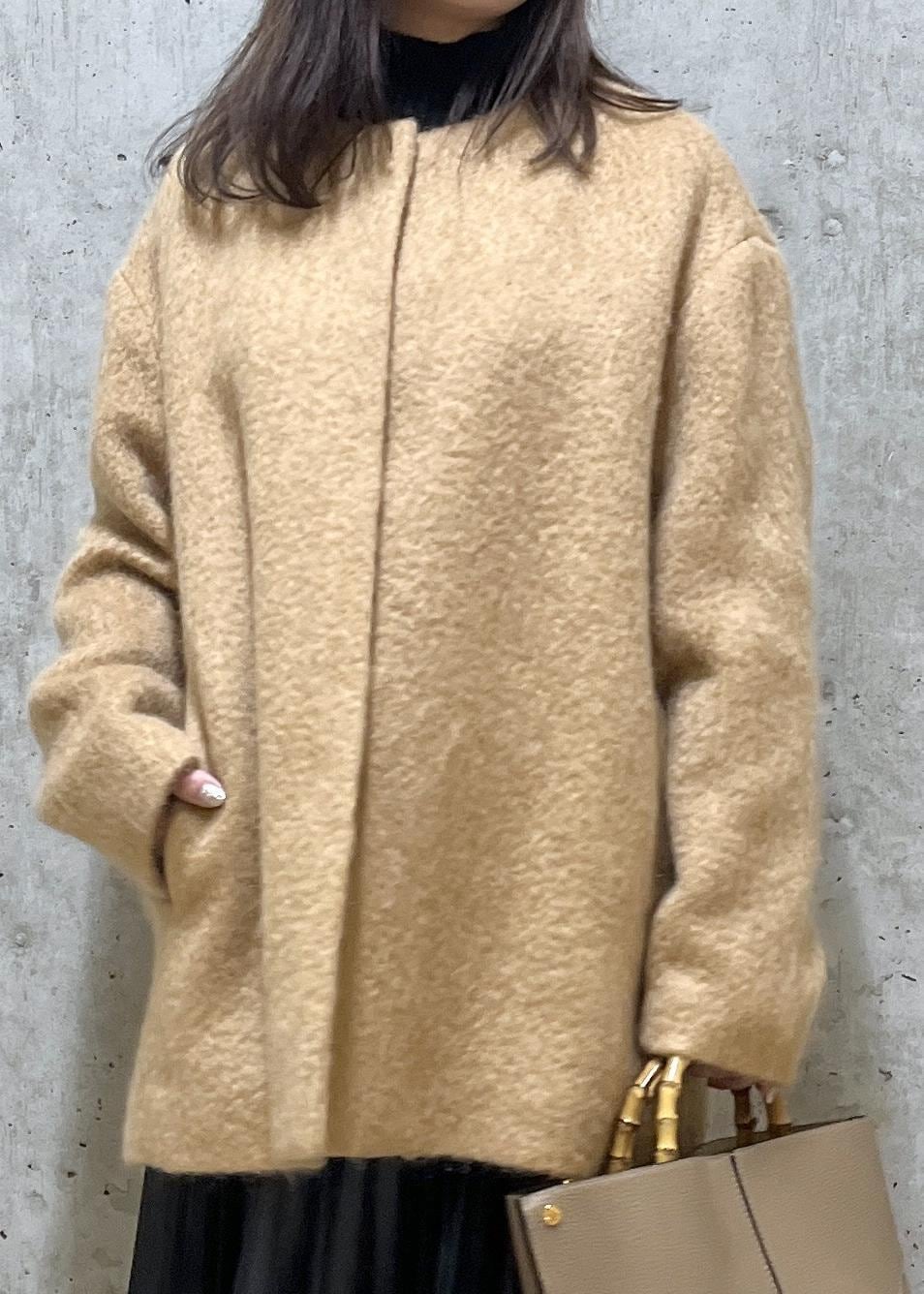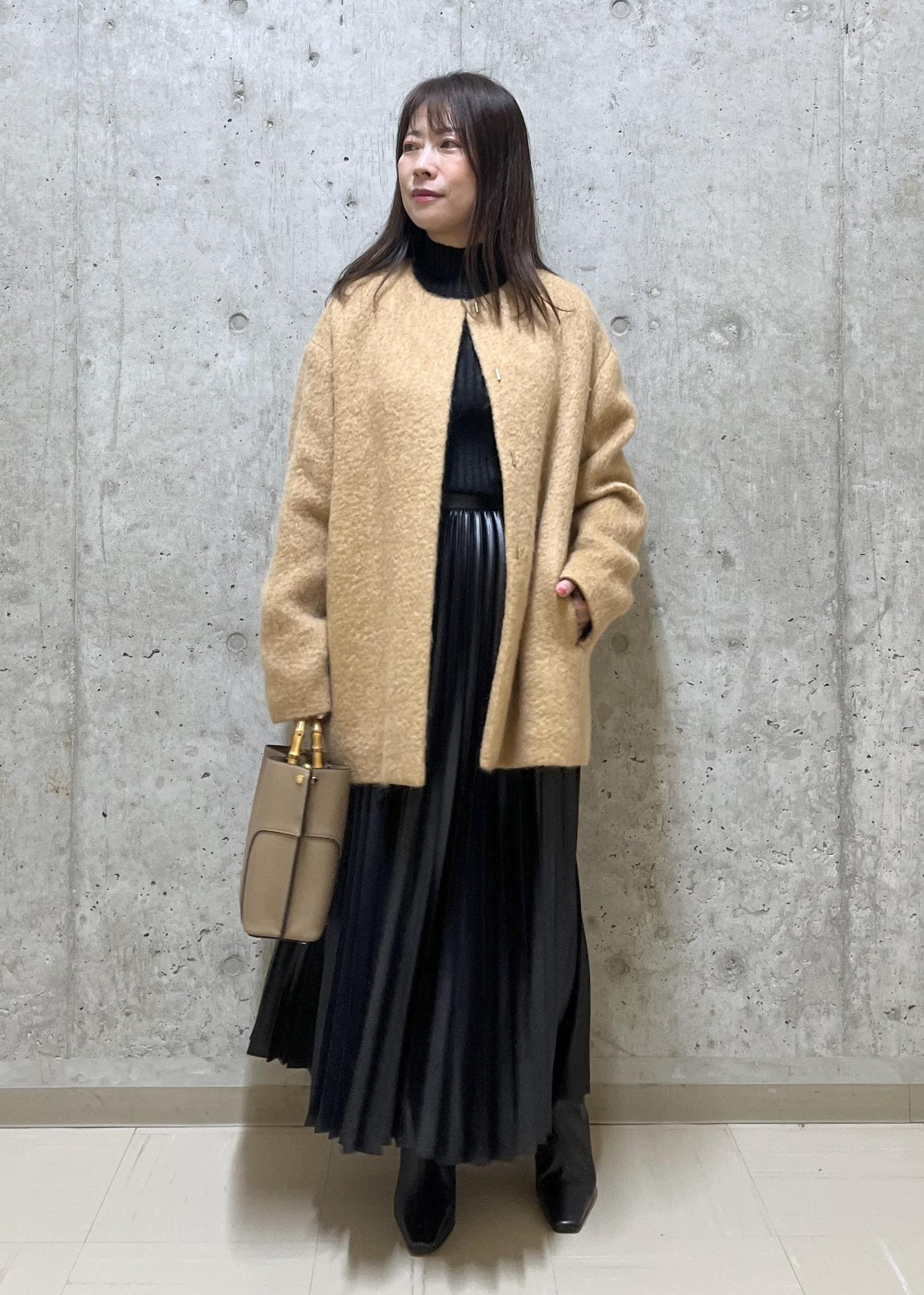 ROPÉウールモヘヤノーカラーミドル丈コートベージュ / F¥68,200レビュー長すぎないミドル丈で、低身長の方にも使いやすいよう丈感です。