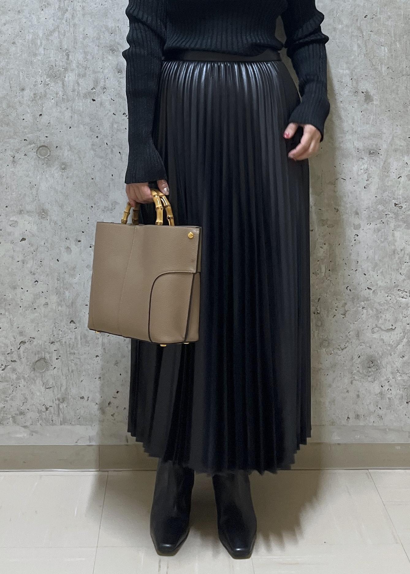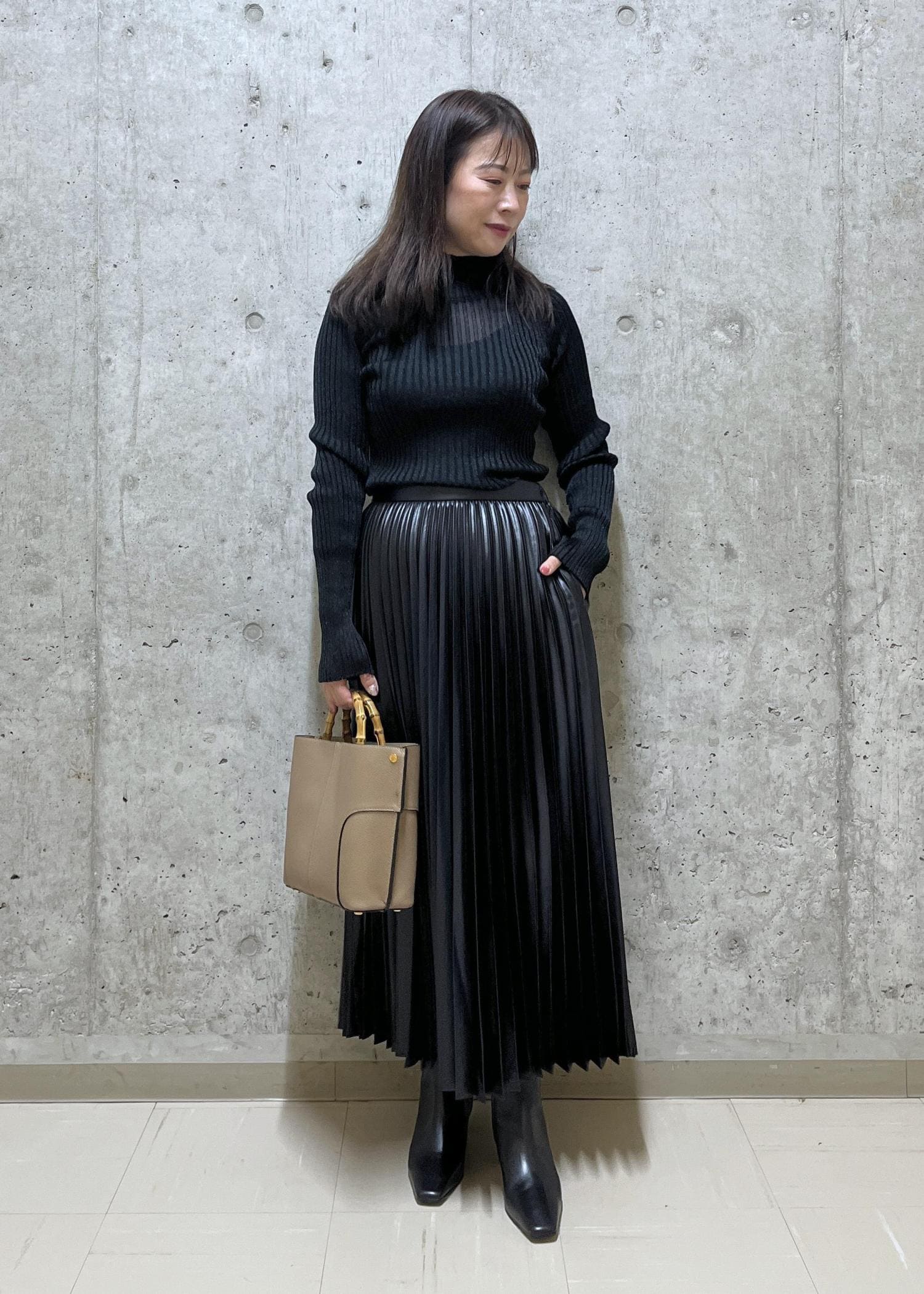 ROPÉシャイニープリーツスカート/イージーケアブラック / F¥26,400レビューふくらはぎが隠れる位の丈でした。